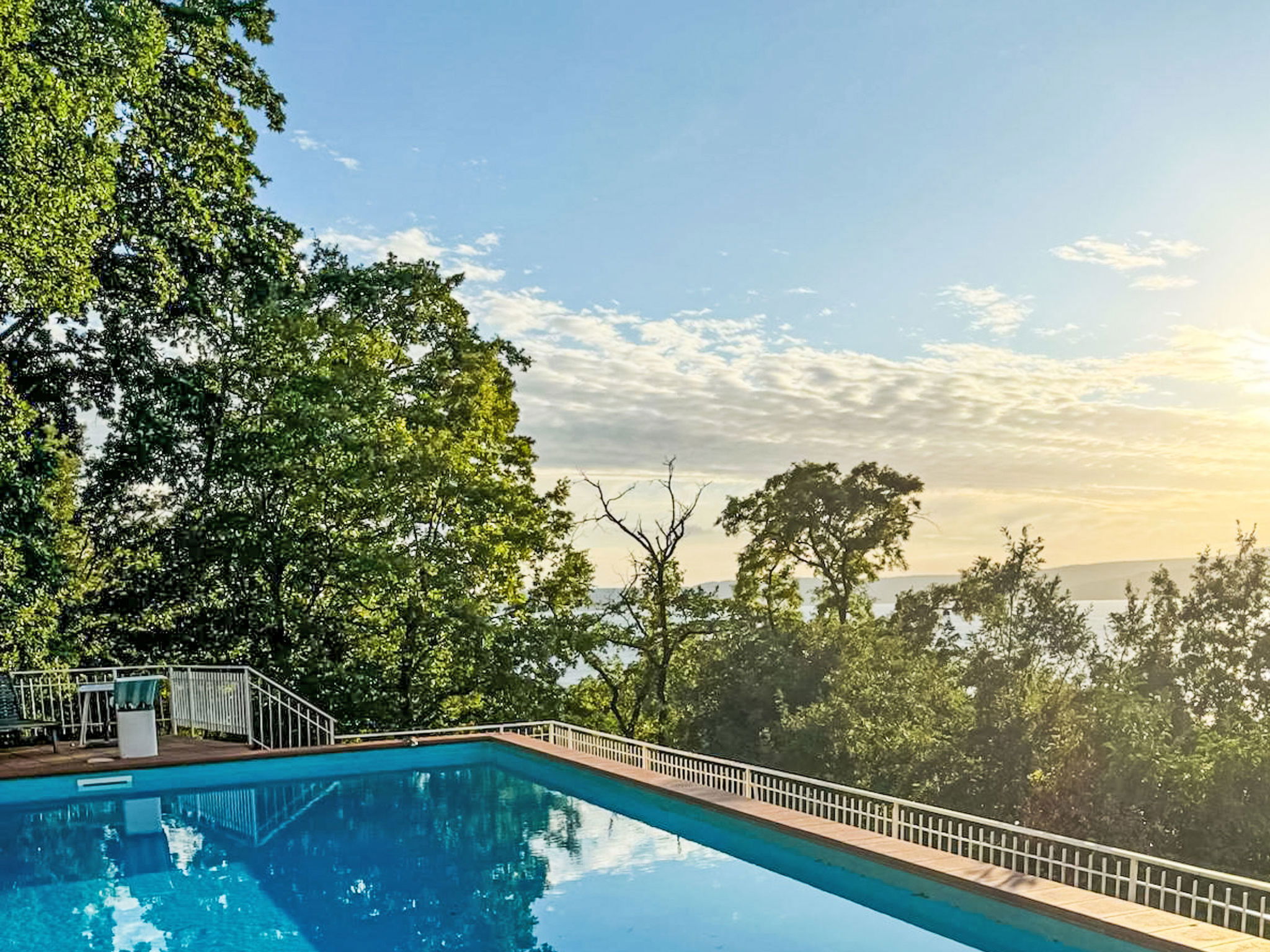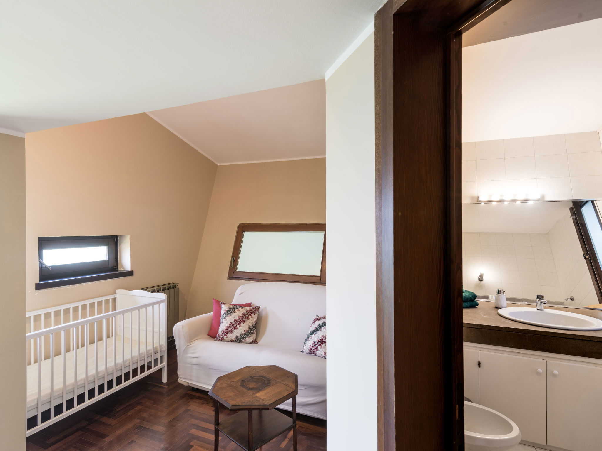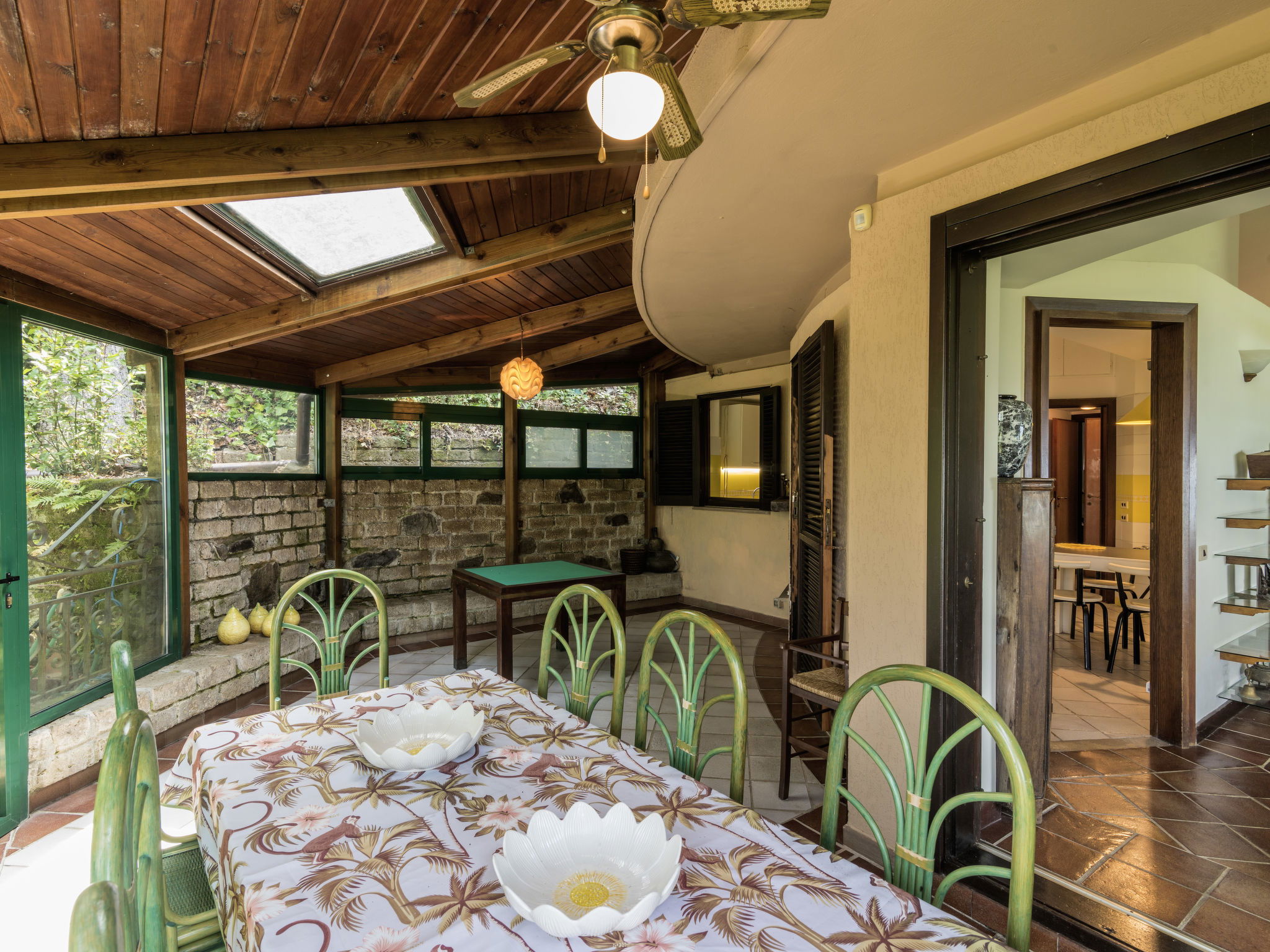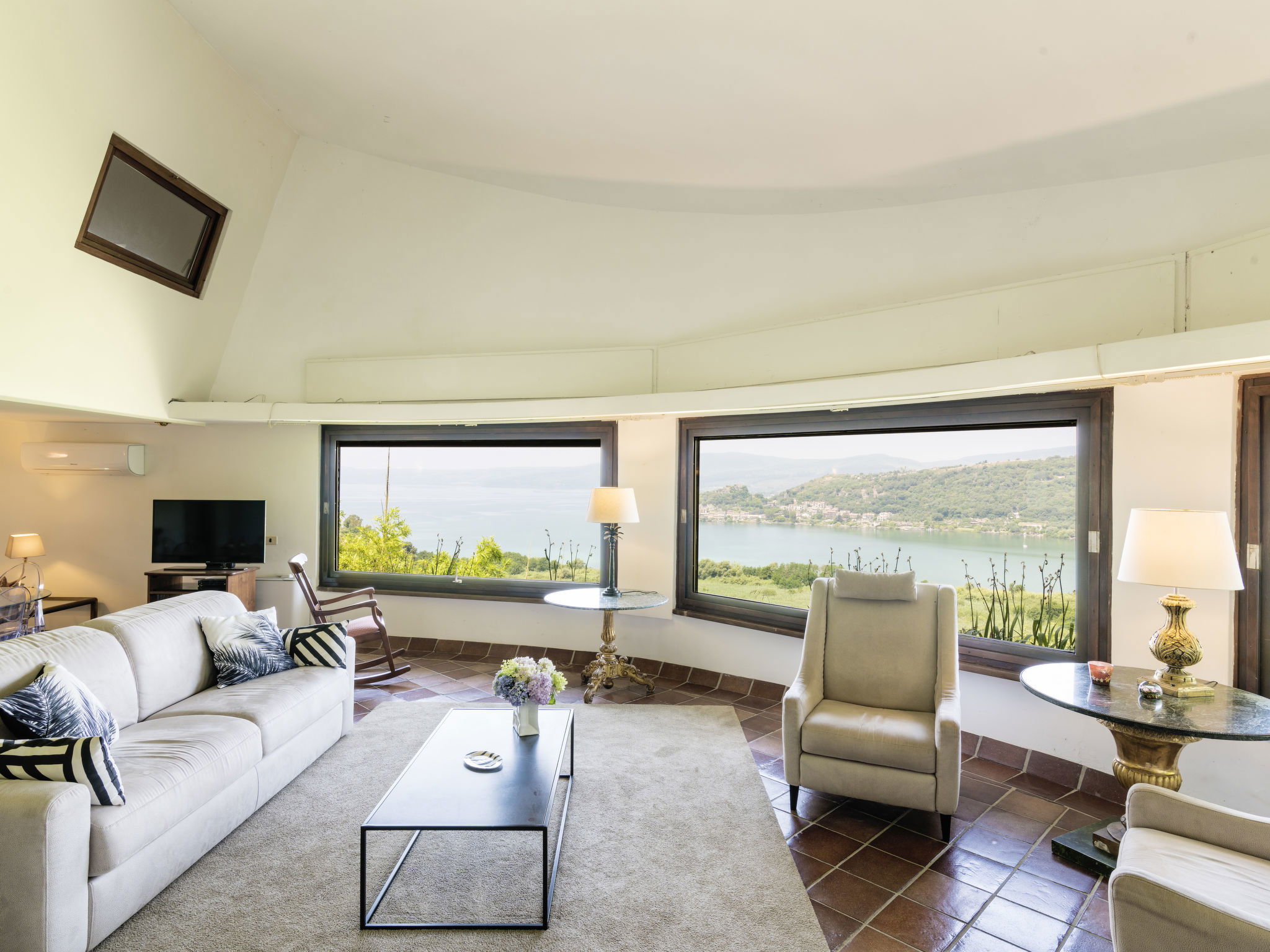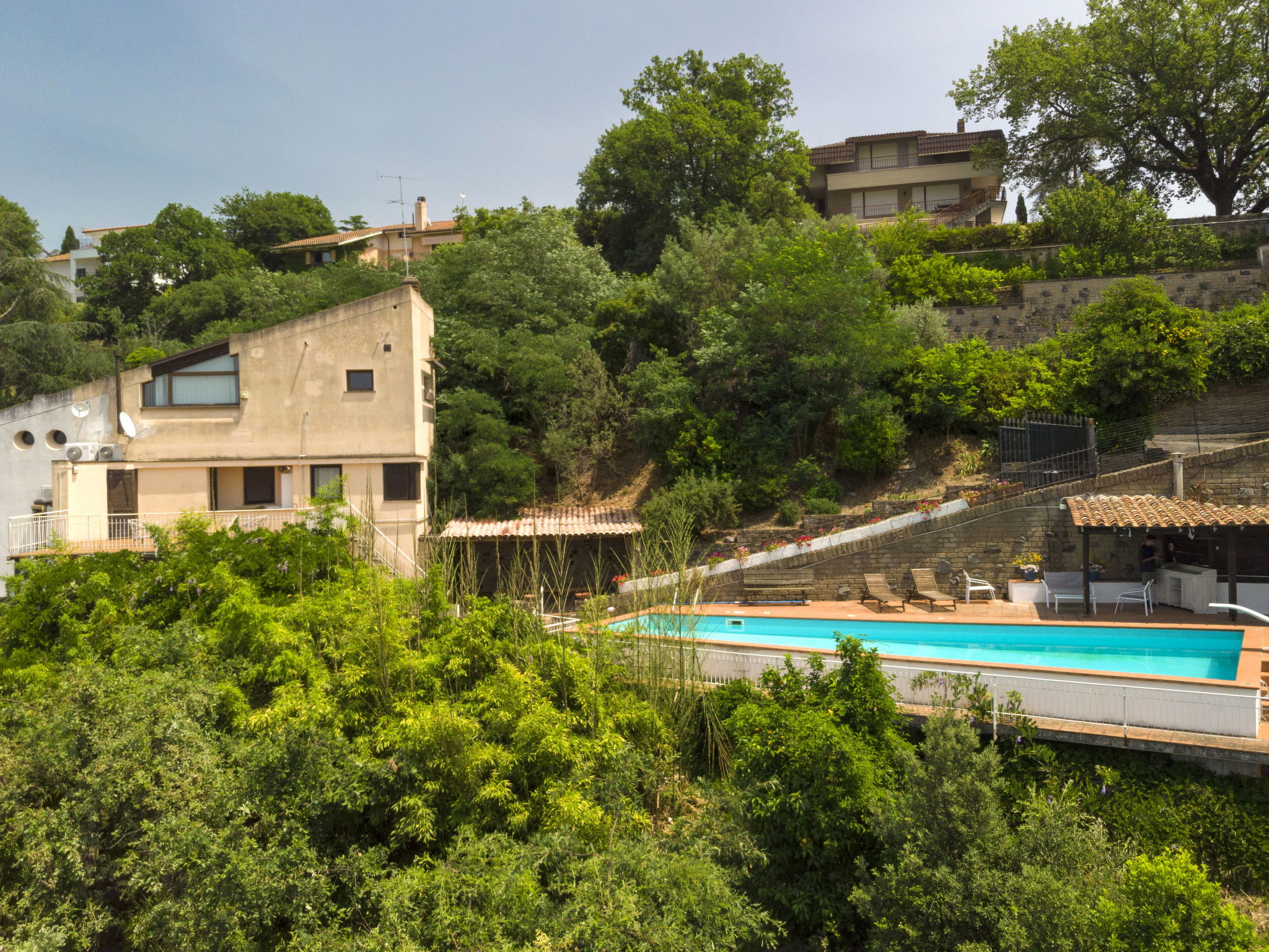 Villa "Miralago", 3 storeys, detached. 4 km from the centre of Trevignano, 40 km from the sea, 1 km from the lake. Private: terraced garden, 1'000 m2 (fenced), swimming pool (12 x 6 m, depth 280 - 150 cm, seasonal availability: 15.May. - 15.Oct.). Pool house with fridge and shower, table tennis, barbecue. 10 m long steep motor access. Roofed, parking space n 2. Grocery 3 km, supermarket 3 km, restaurant 3 km, bar 3 km, bus stop 1 km, railway station "Roma-Napoli" 37 km, grass beach 1 km. Nearby attractions: Anguillara Sabazia 8 km, Sutri 15 km, Sutri 15 km, Roma 45 km. The owner does not accept any groups. Residence with electric gates.