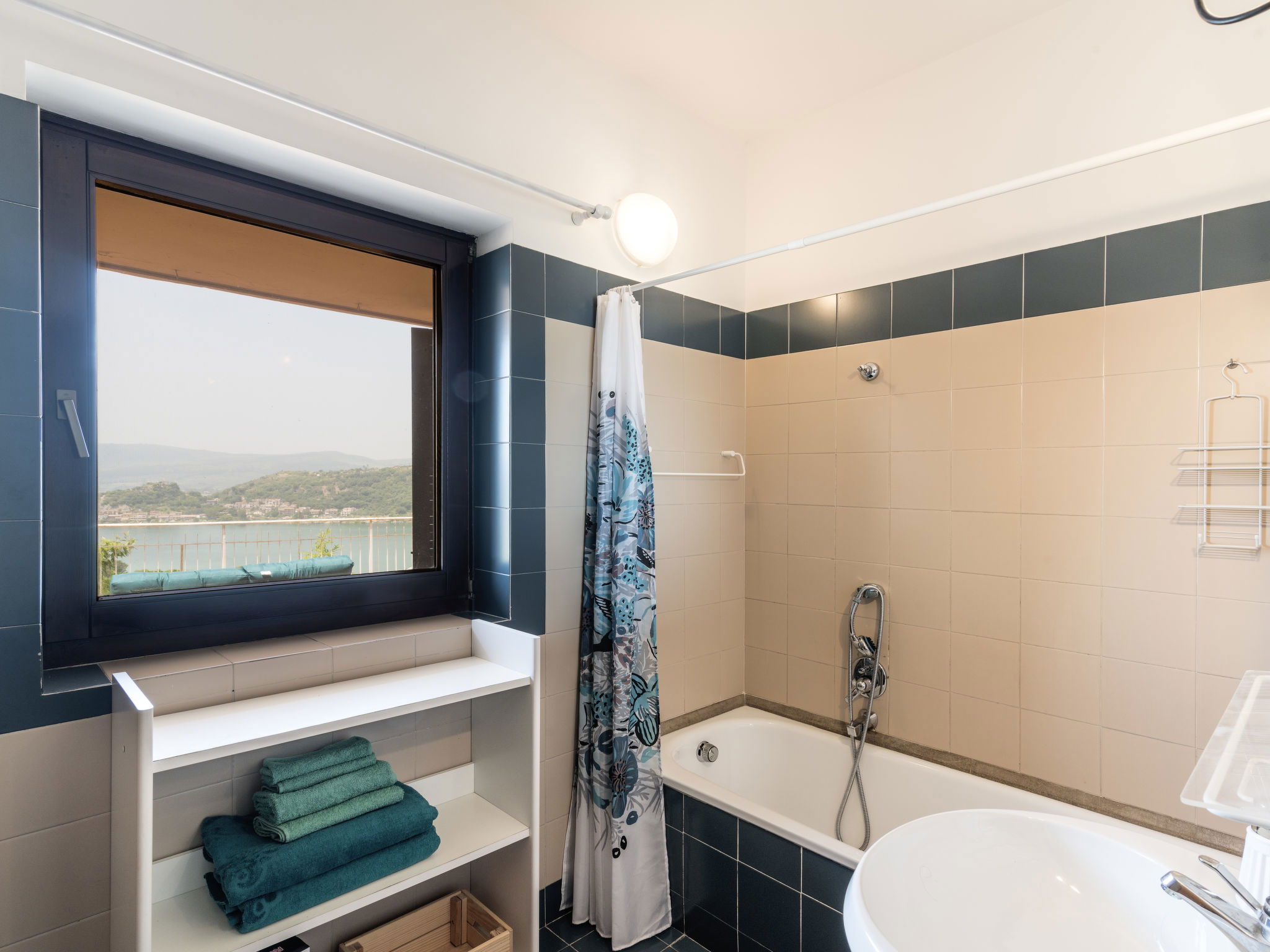 7-room villa 300 m2 on 3 levels. Comfortable and stylish furnishings: large living room with TV (flat screen). Exit to the garden. Dining room. Kitchen (oven, dishwasher, microwave). Shower/bidet/WC. On the lower ground floor: 1 room with 2 beds and kitchen corner. Exit to the garden. Bath/bidet/WC. Upper floor: 1 double bedroom with shower/bidet/WC. 2 rooms, each room with 2 beds. Exit to the terrace. Bath/bidet/WC. 2nd upper floor: (open staircase) living room with TV (flat screen), Home cinema. 1 double bedroom. Kitchen (oven, dishwasher, microwave). Shower/bidet/WC. Gas heating (extra), air-conditioning. Barbecue. Marvellous panoramic view of the lake. Facilities: washing machine, mosquito net, hair dryer. Internet (WiFi). Parking (roofed). 1 small pet/ dog allowed. IT058107C2POGT3P4K