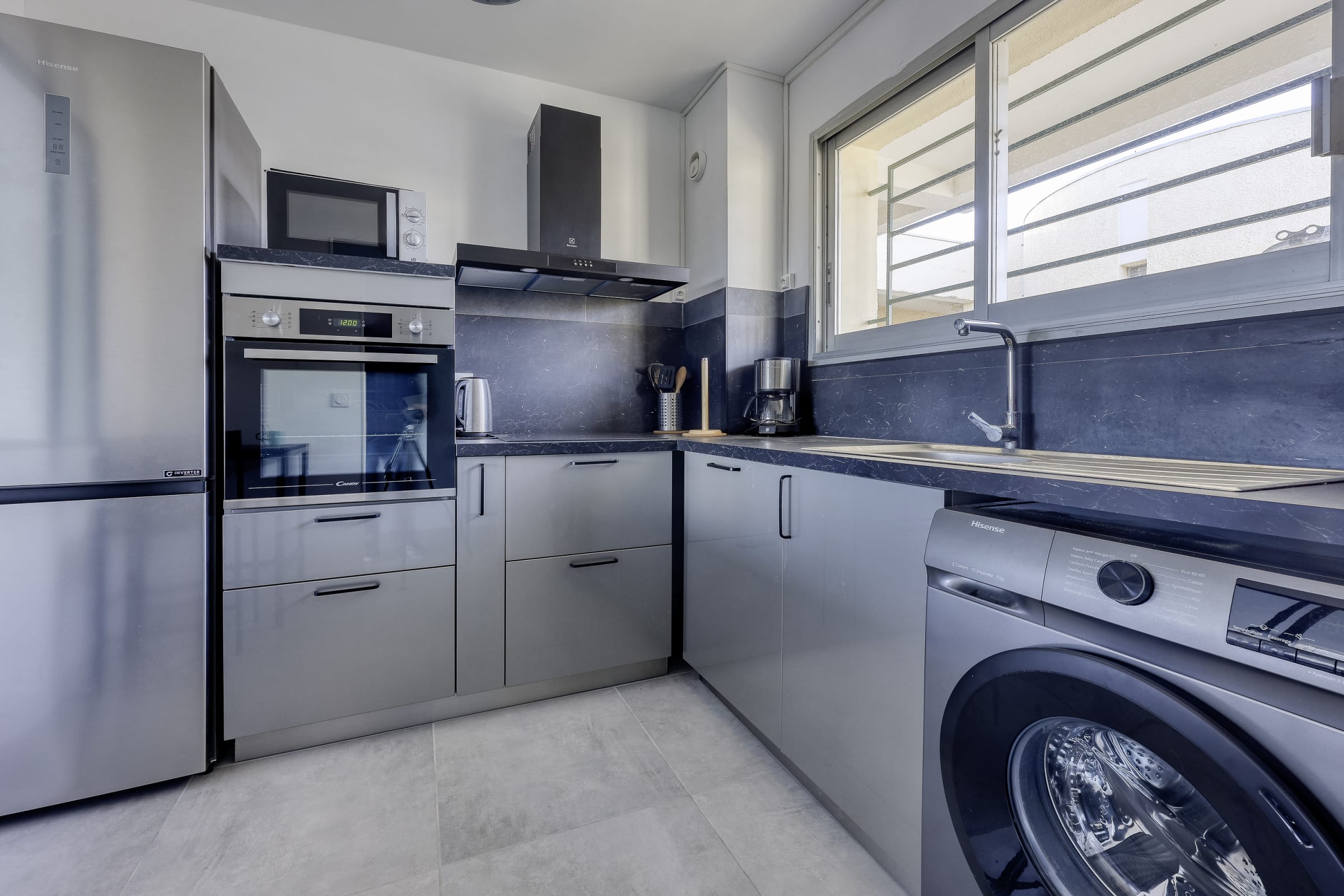 - a fully-equipped kitchen: coffee machine, toaster, blender, kettle, oven, microwave, hob, dishwasher, fridge, freezer,