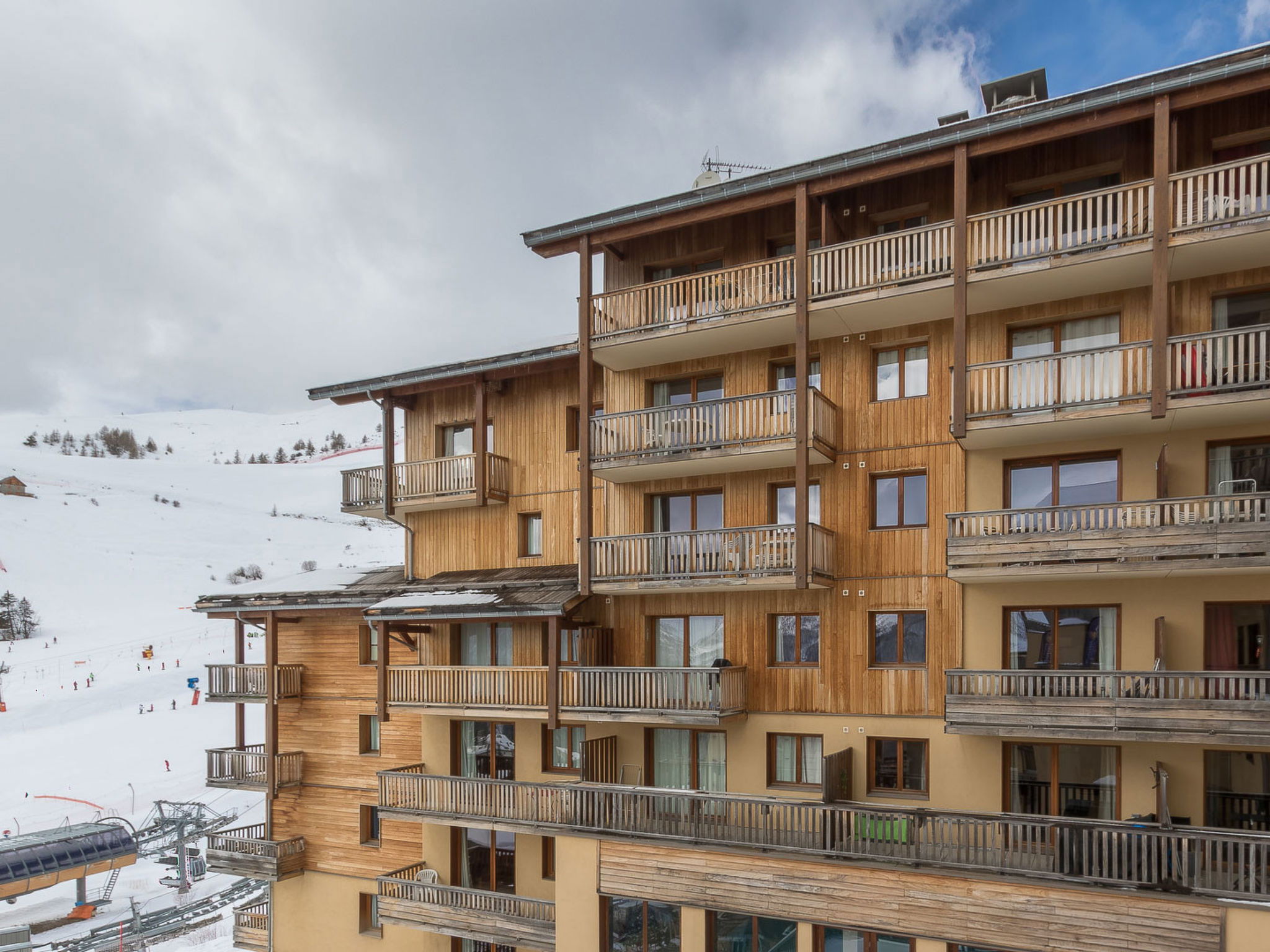 Orcières: Apartment block. 50 m from the skiing area. For shared use: swimming pool heated. In the house: lift. Supermarket 500 m.