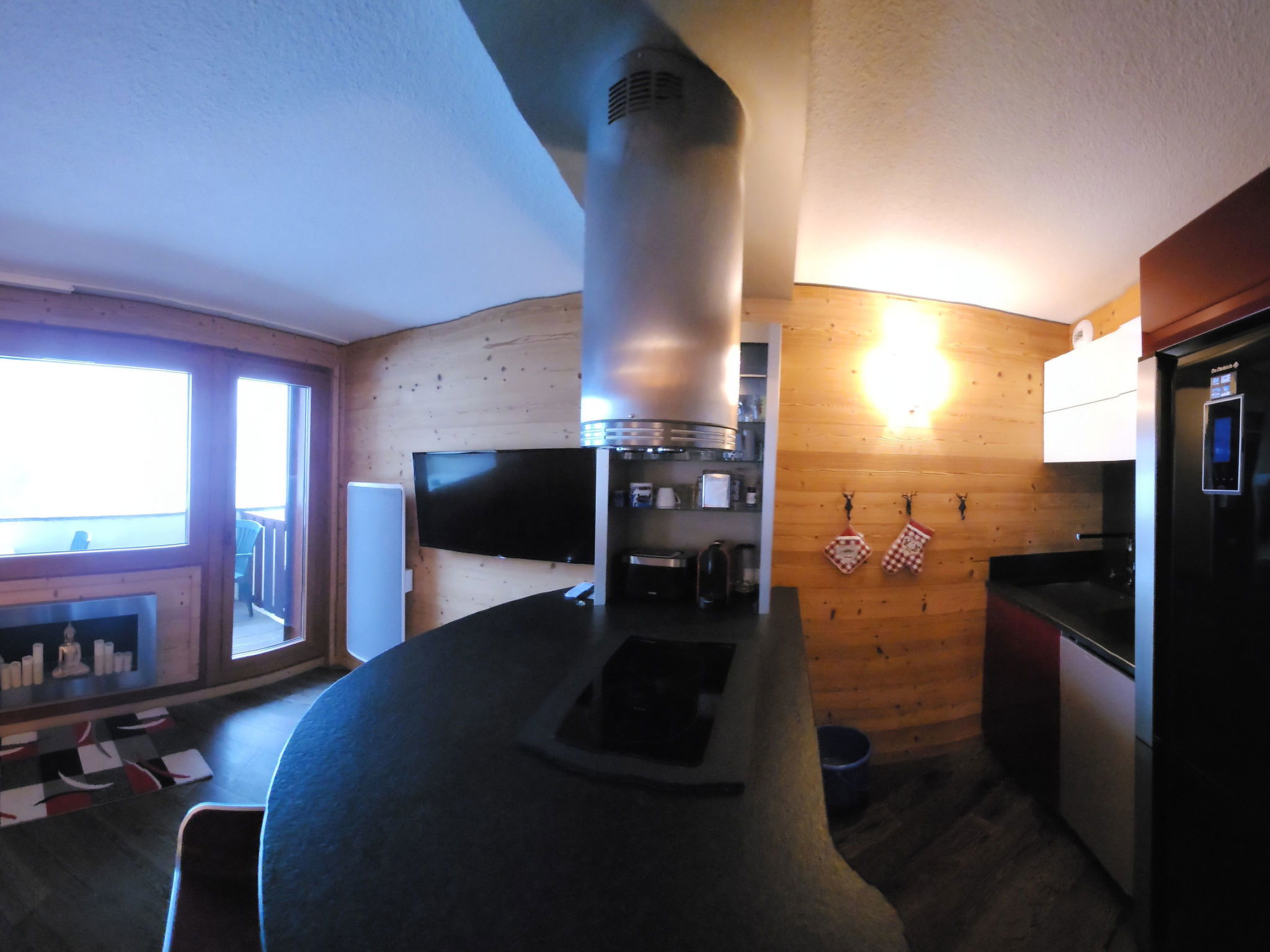 "T du Morel A", 3-room apartment 33 m2 on 1st floor. Object suitable for 5 adults. 1 room with 1 double bed. 1 room with 1 x 2 bunk beds. Living room with 1 sofabed and 1 pull-out bed. Open kitchen (oven, dishwasher, 4 induction hot plates, toaster, microwave, freezer, electric coffee machine). Shower/WC. Balcony. View of the mountains. Please note: non-smokers only. Offer by a commercial proprietor according to Art. 155, IV, CGI