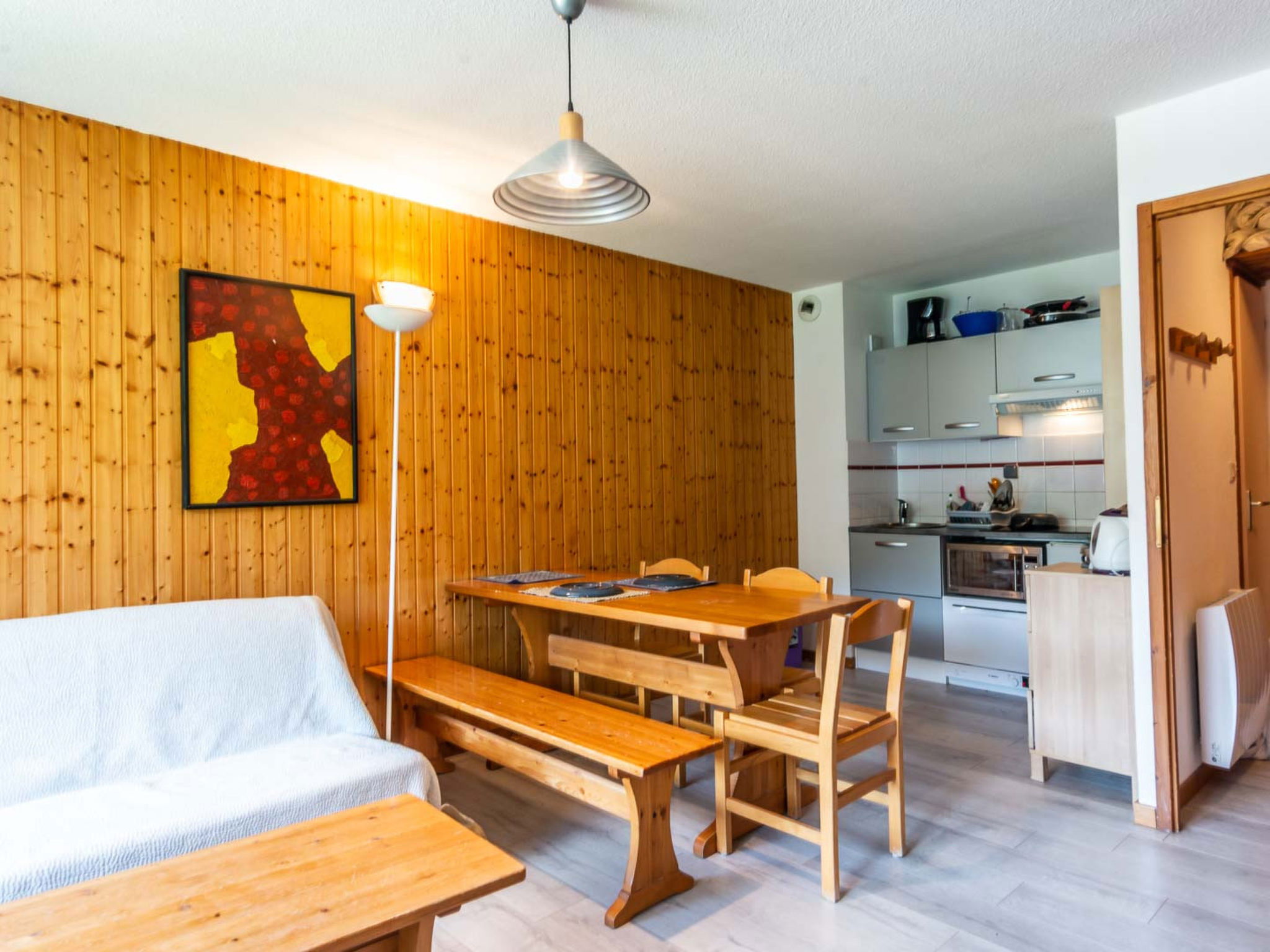 "Les Sitelles", 2-room apartment 25 m2 on 4th floor. Object suitable for 6 adults. 1 room with 1 double bed and TV. Living room with 1 sofabed and 1 x 2 bunk beds, 1 pull-out bed. Kitchen (dishwasher, 4 ceramic glass hob hotplates, toaster, kettle, microwave, electric coffee machine). Bath/WC. Terrace. View of the ski run. Please note: non-smokers only. Smoke alarm. Offer by a commercial proprietor according to Art. 155, IV, CGI 7419000034274