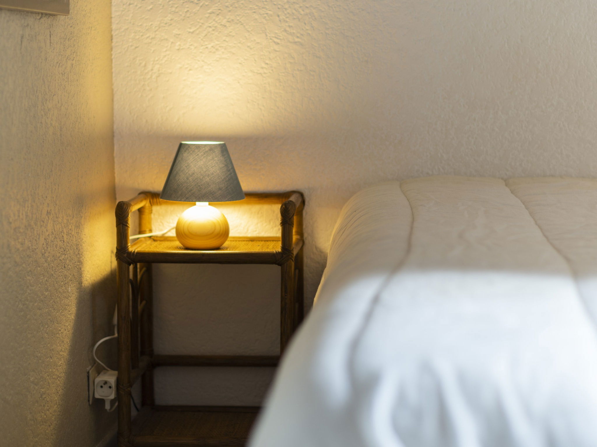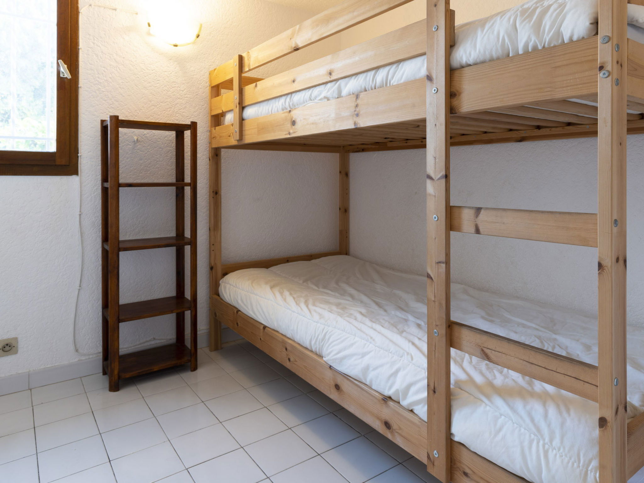 "Les Ondines 2", 3-room house 45 m2, on the ground floor. Object suitable for 6 adults. 1 room with 1 double bed and TV. 1 room with 1 x 2 bunk beds. Living room with 1 double bed. Kitchen (oven, 4 induction hot plates, toaster, microwave, freezer, electric coffee machine). Shower/WC. Terrace. Please note: non-smokers only. 1 pet/ dog allowed. Smoke alarm. Offer by a commercial proprietor according to Art. 155, IV, CGI