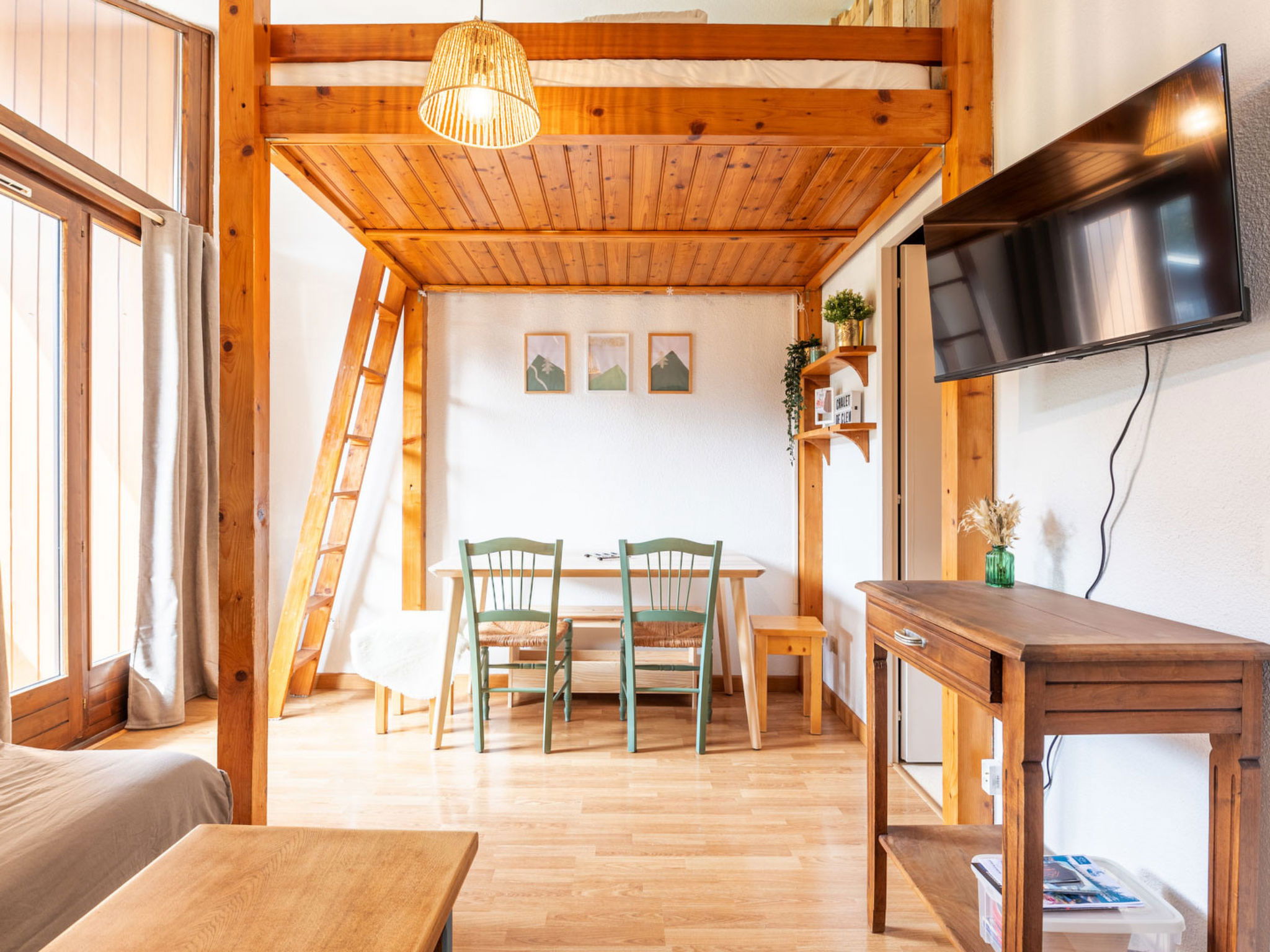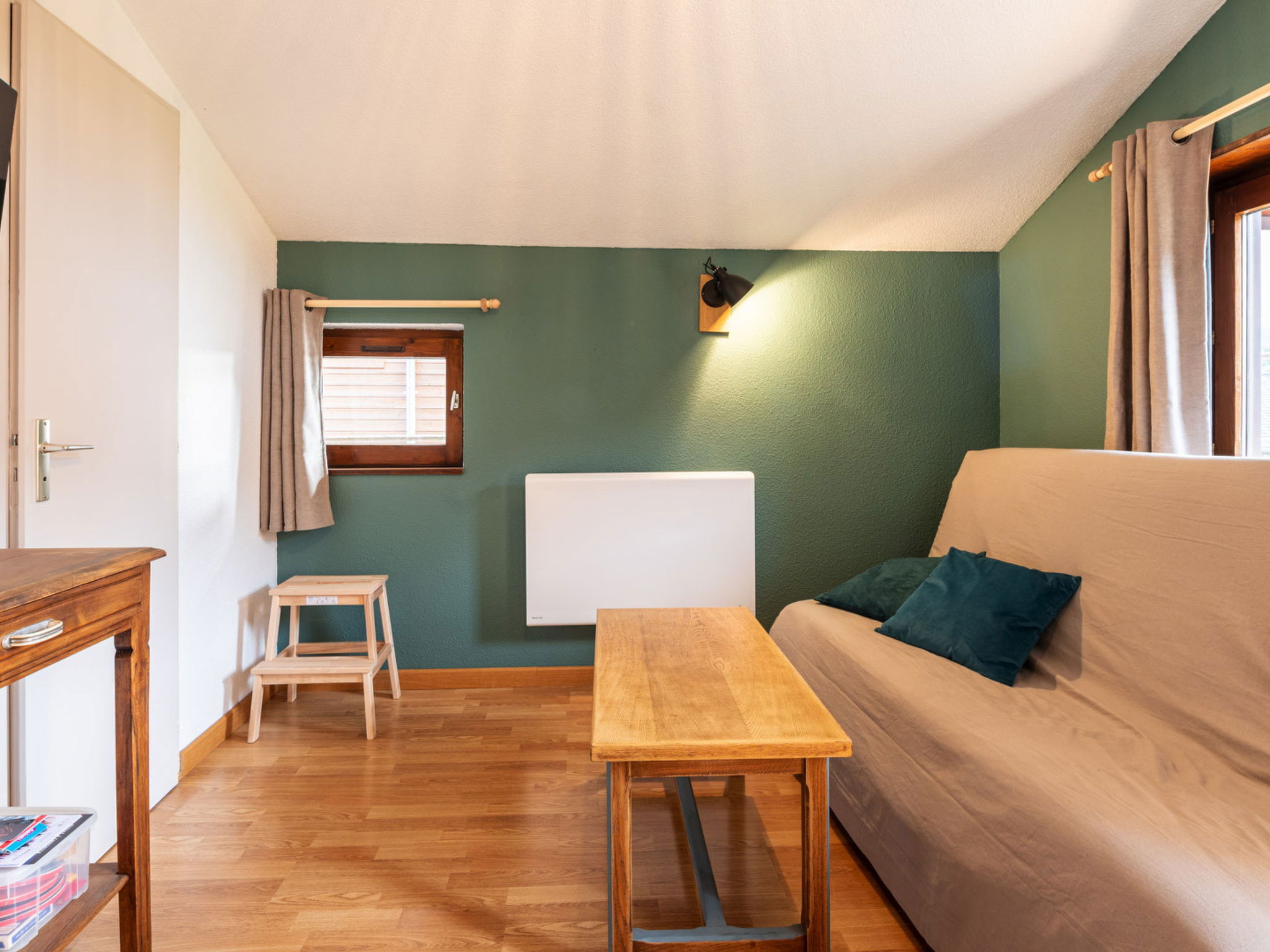 "Les Arcades", 2-room apartment 27 m2 on 3rd floor. Object suitable for 6 adults. 1 room with 2 sofabeds and TV. Living room with 1 sofabed, 1 double bed and 1 pull-out bed. Kitchen (oven, kettle, microwave, freezer, electric coffee machine). Shower/WC. Balcony. View of the mountains and the ski run. Facilities: Internet (WiFi, free). Please note: non-smokers only. Offer by a commercial proprietor according to Art. 155, IV, CGI 74190000650B3