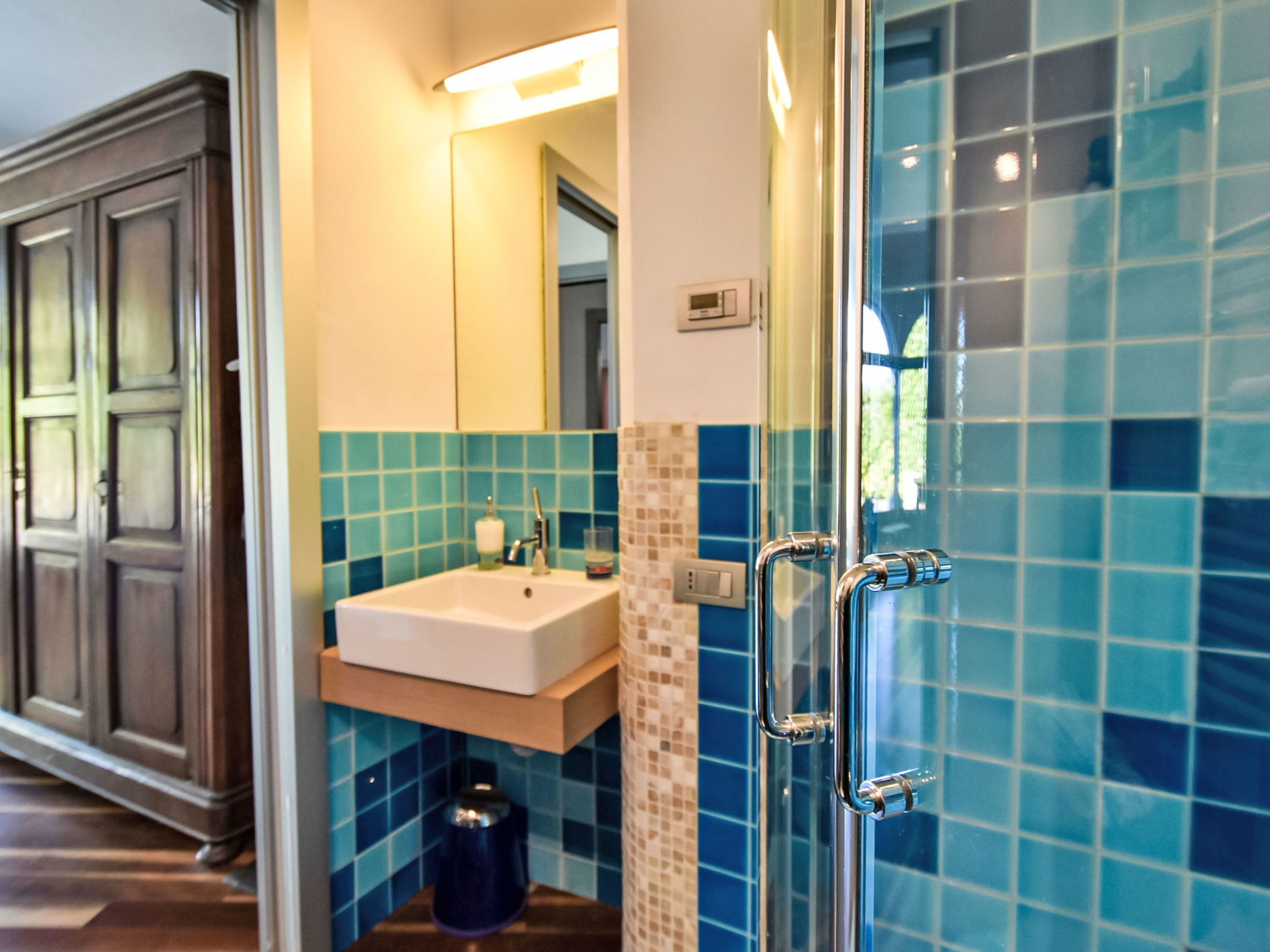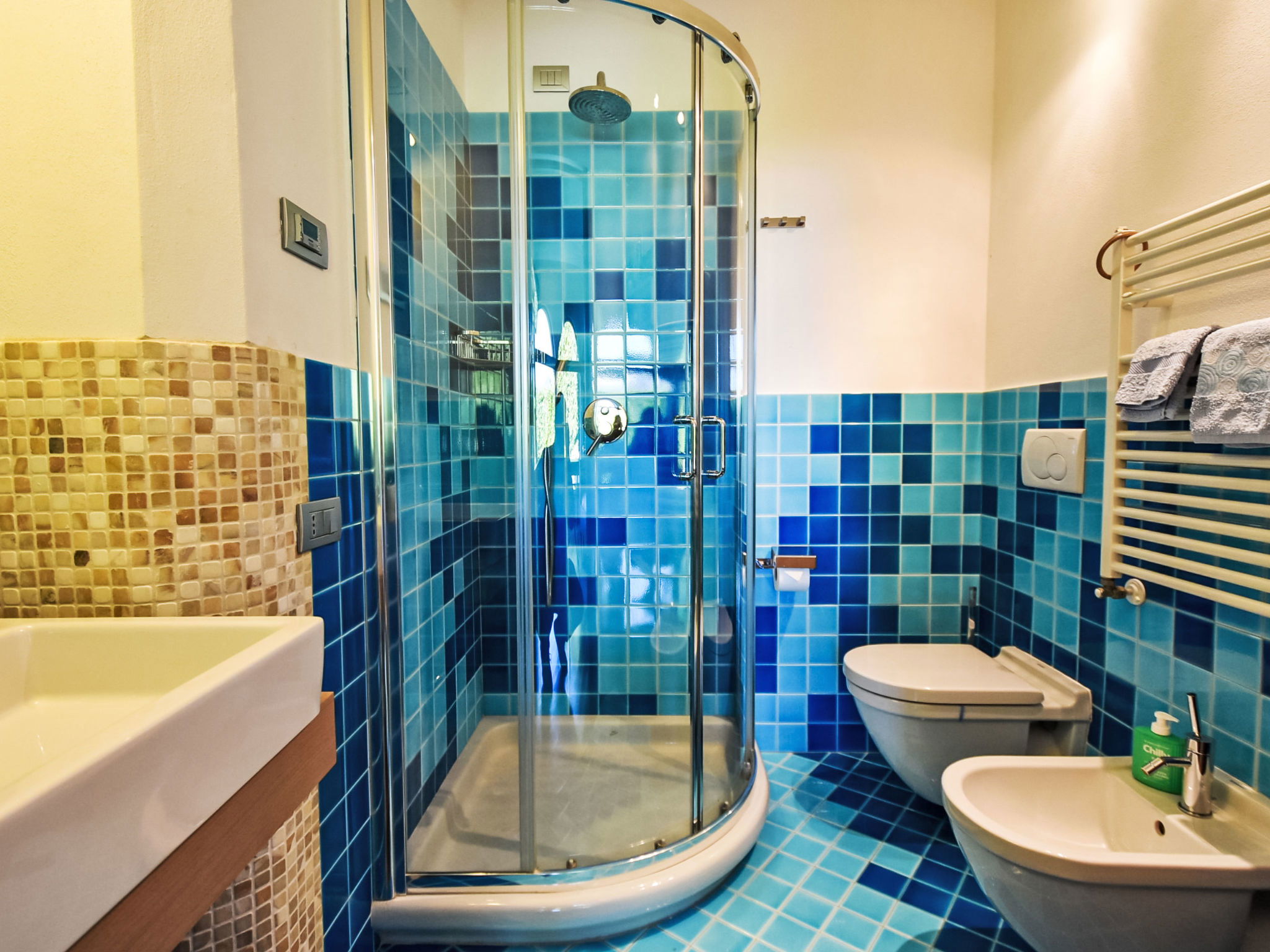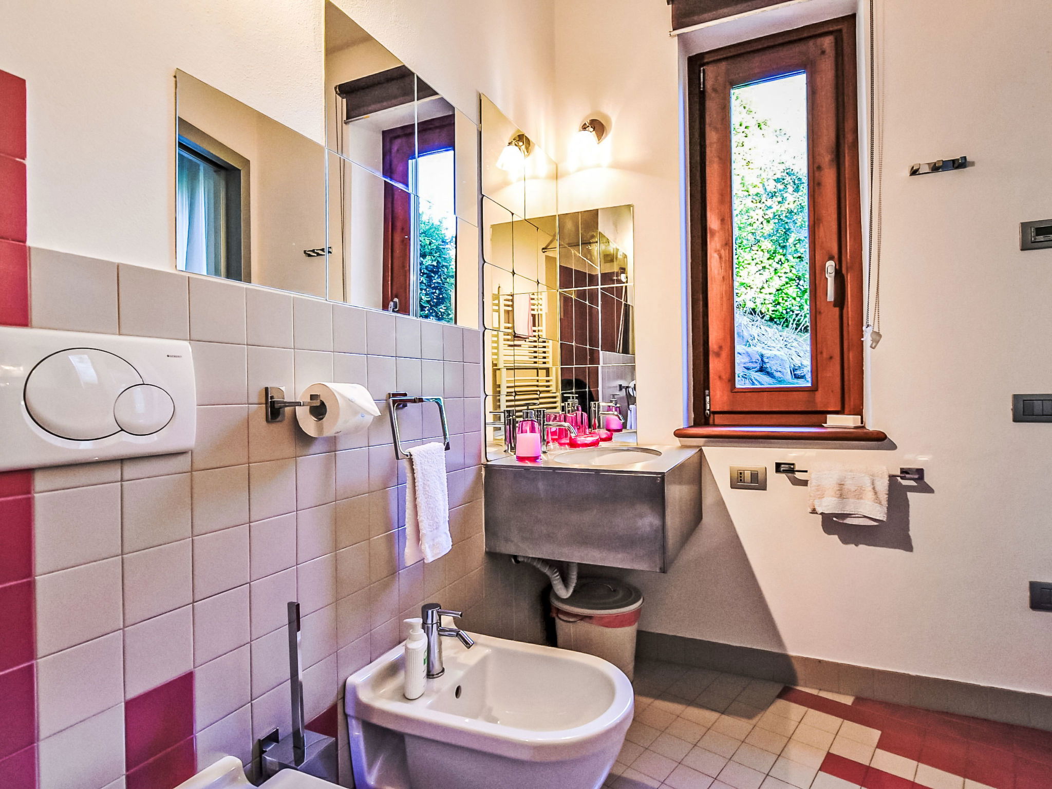Beautiful, comfortable 2-family house "Xino Terrace View", 600 m a.s.l., 2 storeys, detached, surrounded by trees. In the hamlet Xino 2 km from the centre of Fonteno, 6 km from the centre of Riva di Solto, in a quiet, sunny position on a slope, residential area (villas), 6 km from the lake, east facing position. Private: terraced garden (fenced) with trees, lawn for sunbathing. In the house: storage room for bicycles. Parking (for 2 cars) at the house, public parking on the road. Supermarket 2 km, restaurant, bar 500 m, bus stop 1 km, ferry "Riva di Solto" 6 km, thermal baths "Boario Terme" 28 km. Nearby attractions: Lovere 11 km, Sarnico 25 km, Franciacorta (DOCG wine region) 30 km, Iseo 35 km, Bergamo 41 km, Milano 90 km. Please note: car recommended.
