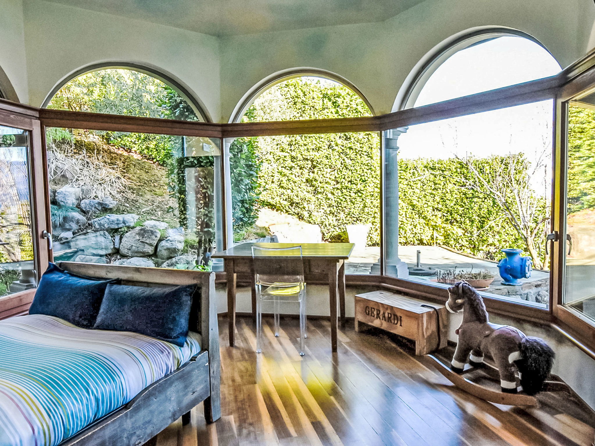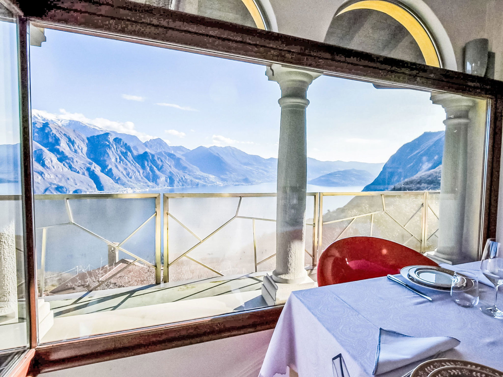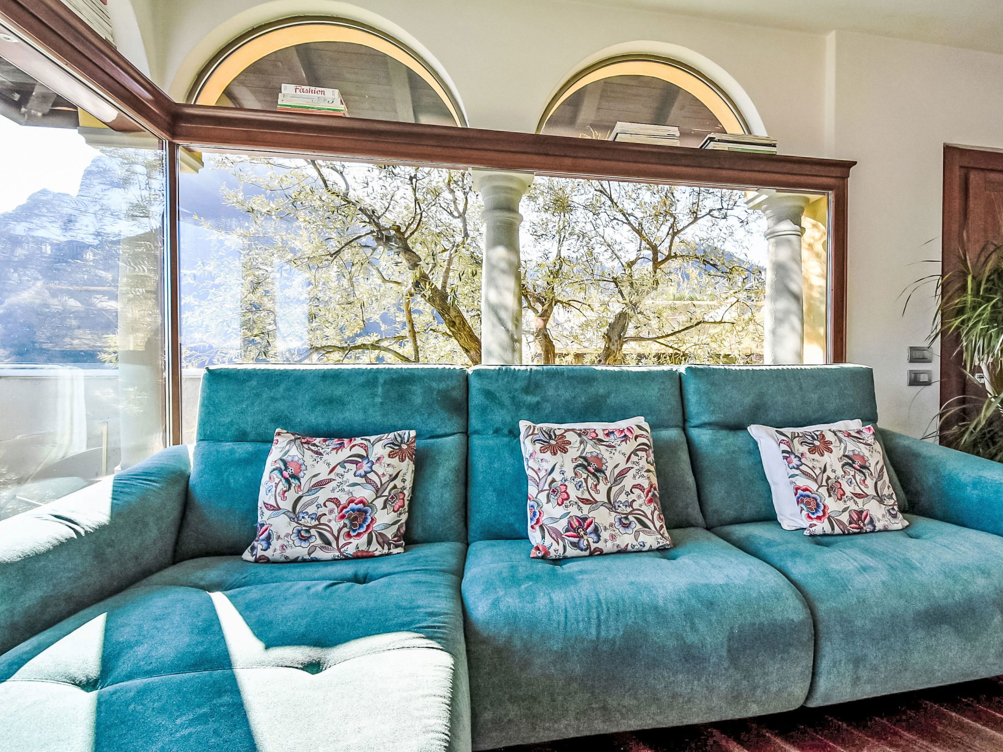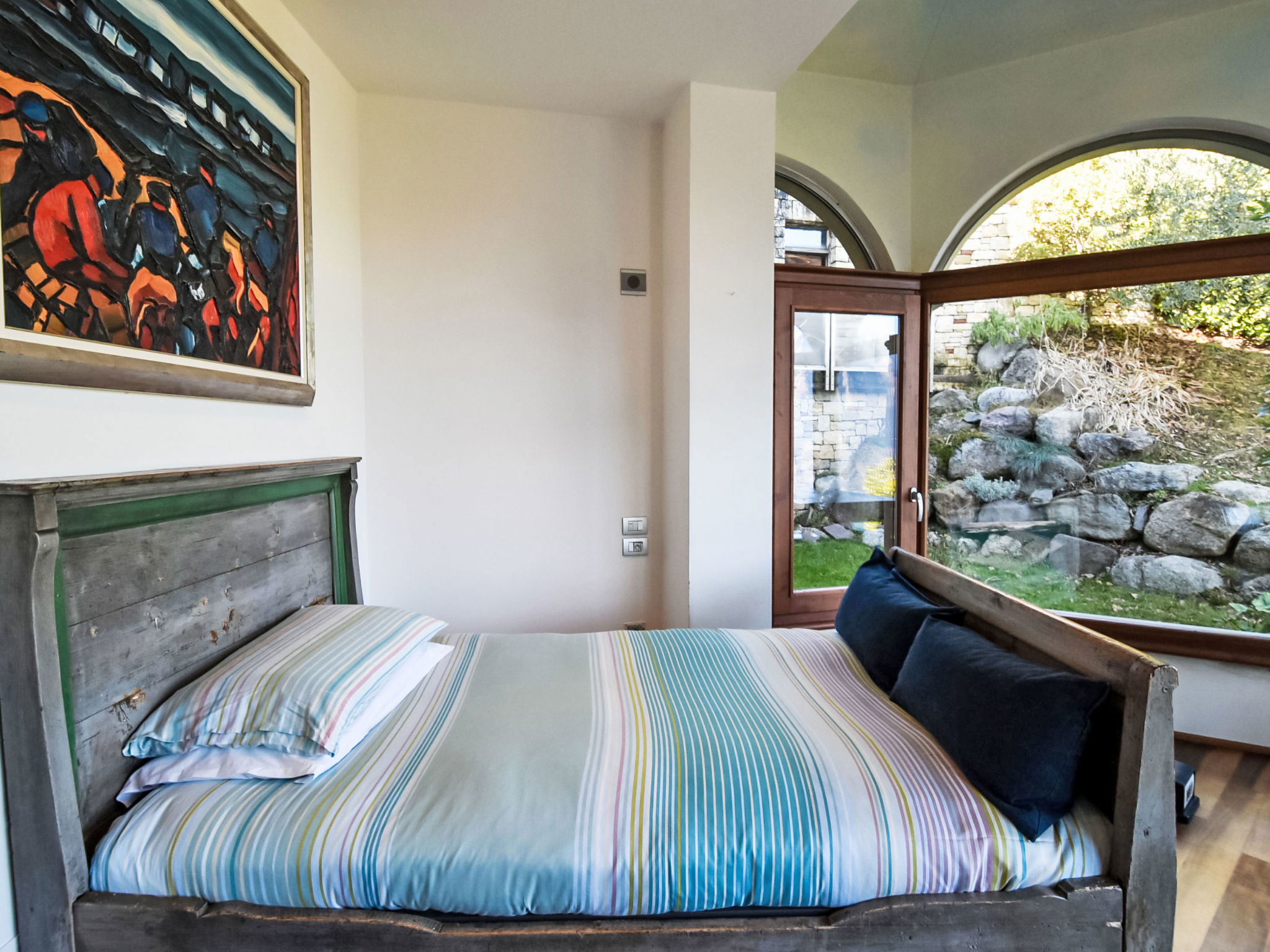 5-room apartment 280 m2 on 1st floor, south-east facing position. Spacious and bright, modern and stylish furnishings: large living/dining room with sliding door, panoramic window with Scandinavian wood stove (only for decoration), dining table and TV. Exit to the terrace. Living/sleeping room with panoramic window with 1 double sofabed (130 cm, length 180 cm). 1 room with 1 bed (80 cm, length 180 cm), 1 double bed (160 cm, length 180 cm), bath/bidet/WC. 1 room with 1 french bed (130 cm, length 190 cm), shower/bidet/WC. 1 large room with panoramic window with 1 french bed (120 cm, length 190 cm), shower/bidet/WC. Large kitchenette (oven, dishwasher, 6 gas rings, toaster, kettle, freezer, electric coffee machine, Capsules for coffee machine (Nespresso) free, cooking island, combination microwave) with double hand-basin. Bathroom. Parquet floors. Large terrace roofed, garden. Terrace furniture. Very beautiful panoramic view of the lake and the mountains. Facilities: washing machine, children's high chair, baby cot, hair dryer. Internet (WiFi, free). Please note: suitable for families. Non-smokers only. Maximum 1 pet/ dog allowed. Private entrance. IT016102C24LDAHOO9