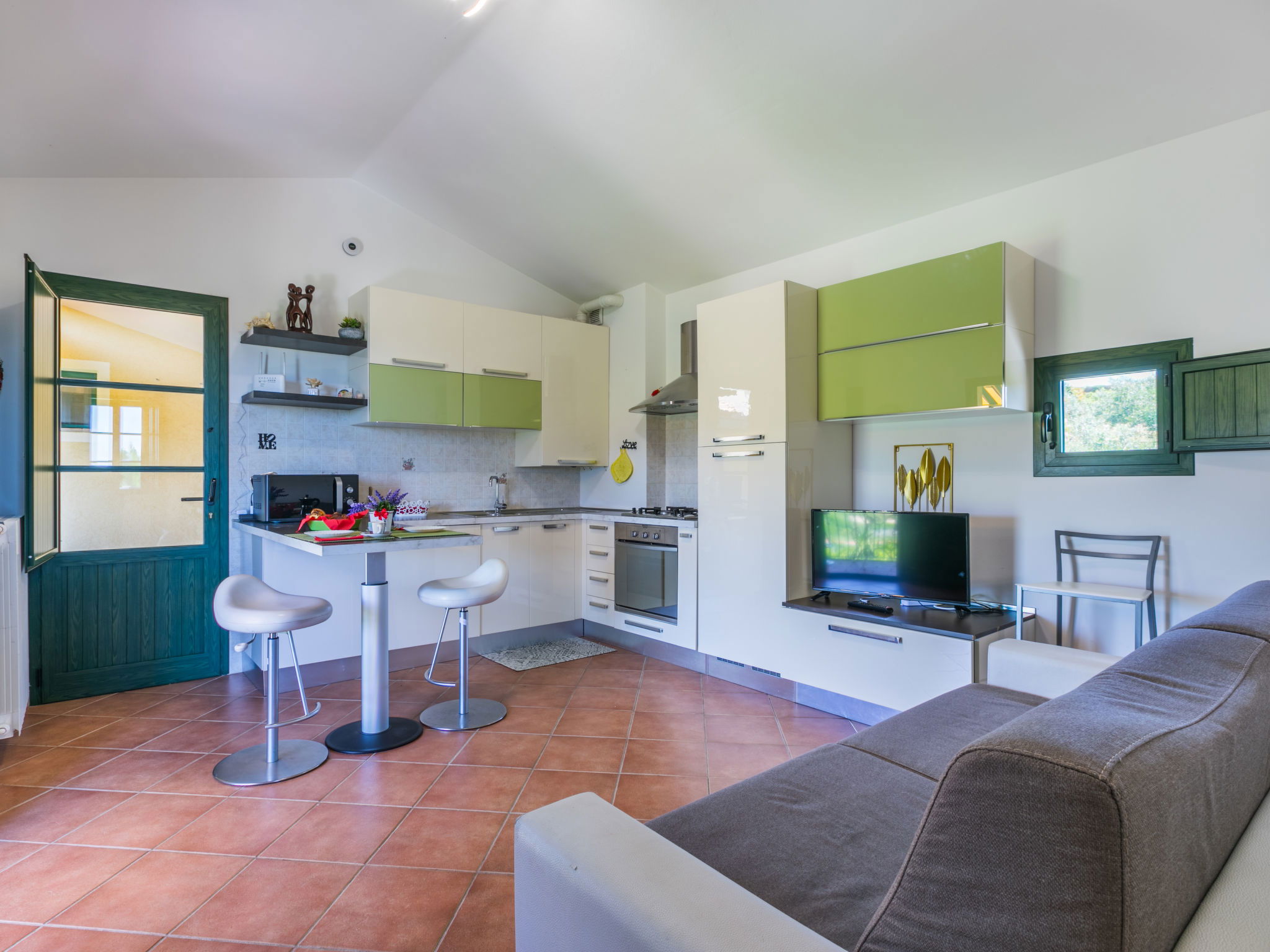 2-room apartment 50 m2 on 1st floor. Beautiful and modern furnishings: living/dining room with TV. Exit to the balcony. 1 double bedroom. Open kitchen (oven, Gas stove, 4 gas rings, toaster, kettle, electric coffee machine) with bar. Exit to the balcony. Shower/bidet/WC. Electric heating, gas heating, air-conditioning. Small balcony. Balcony furniture. Beautiful distant view. Facilities: washing machine, hair dryer. Internet (WiFi, free). Parking. Please note: maximum 1 pet/ dog allowed. Fire extinguisher. IT050010C2DJBY29AR
