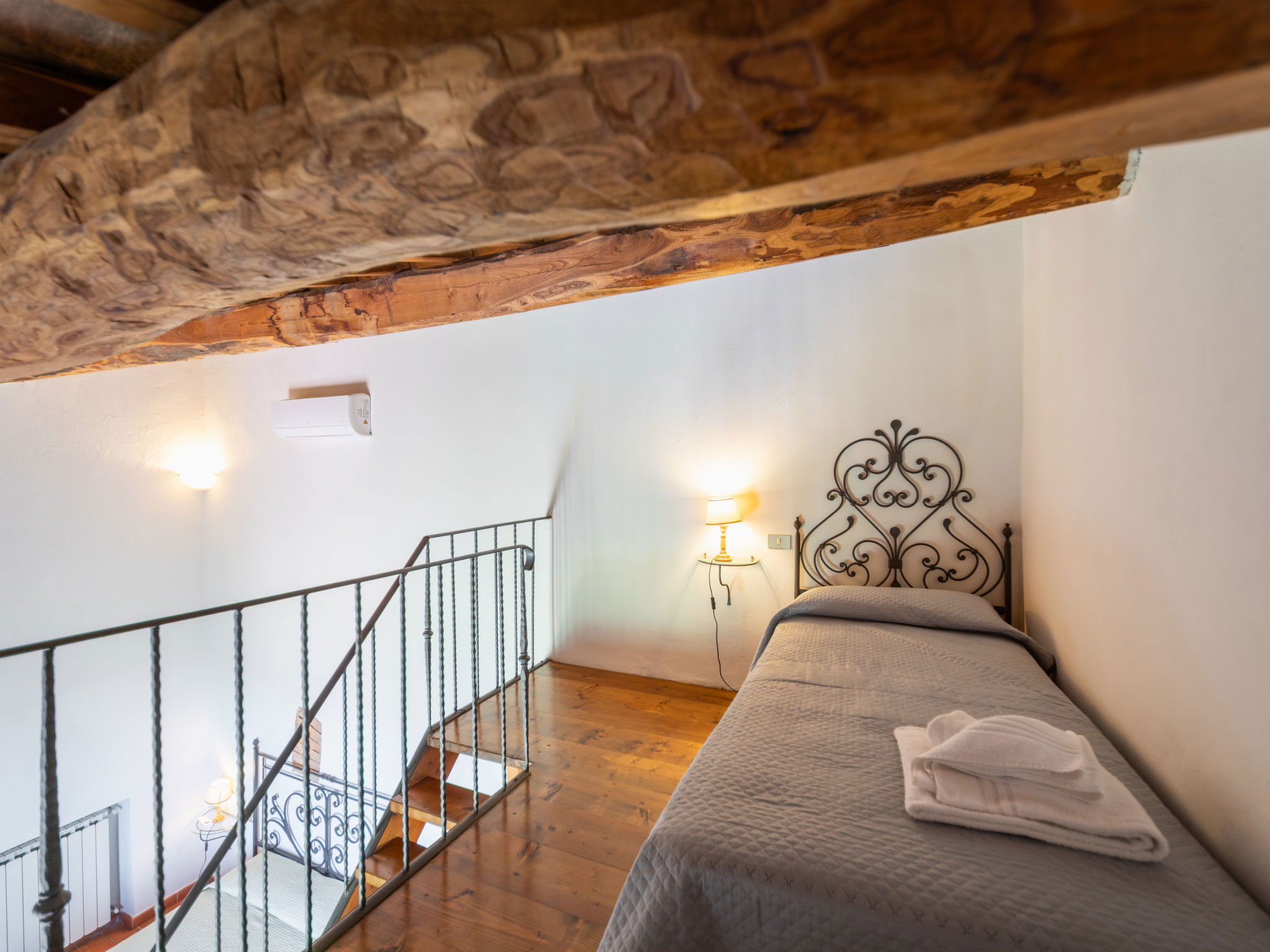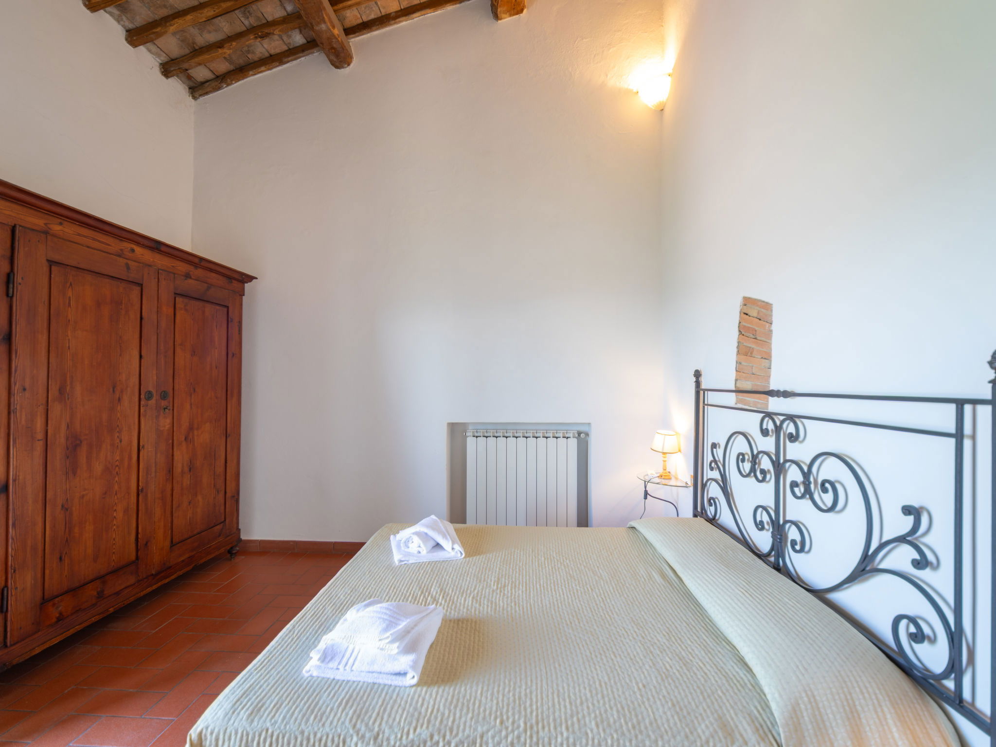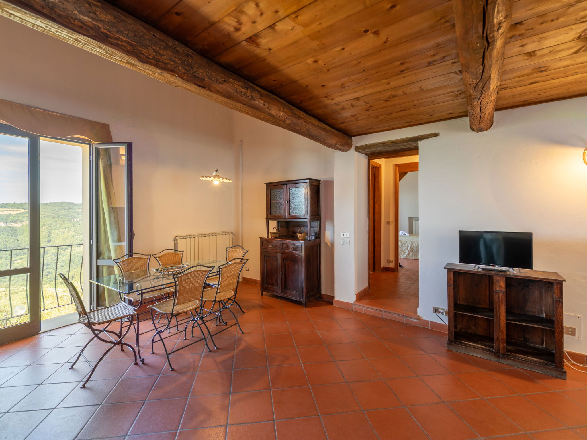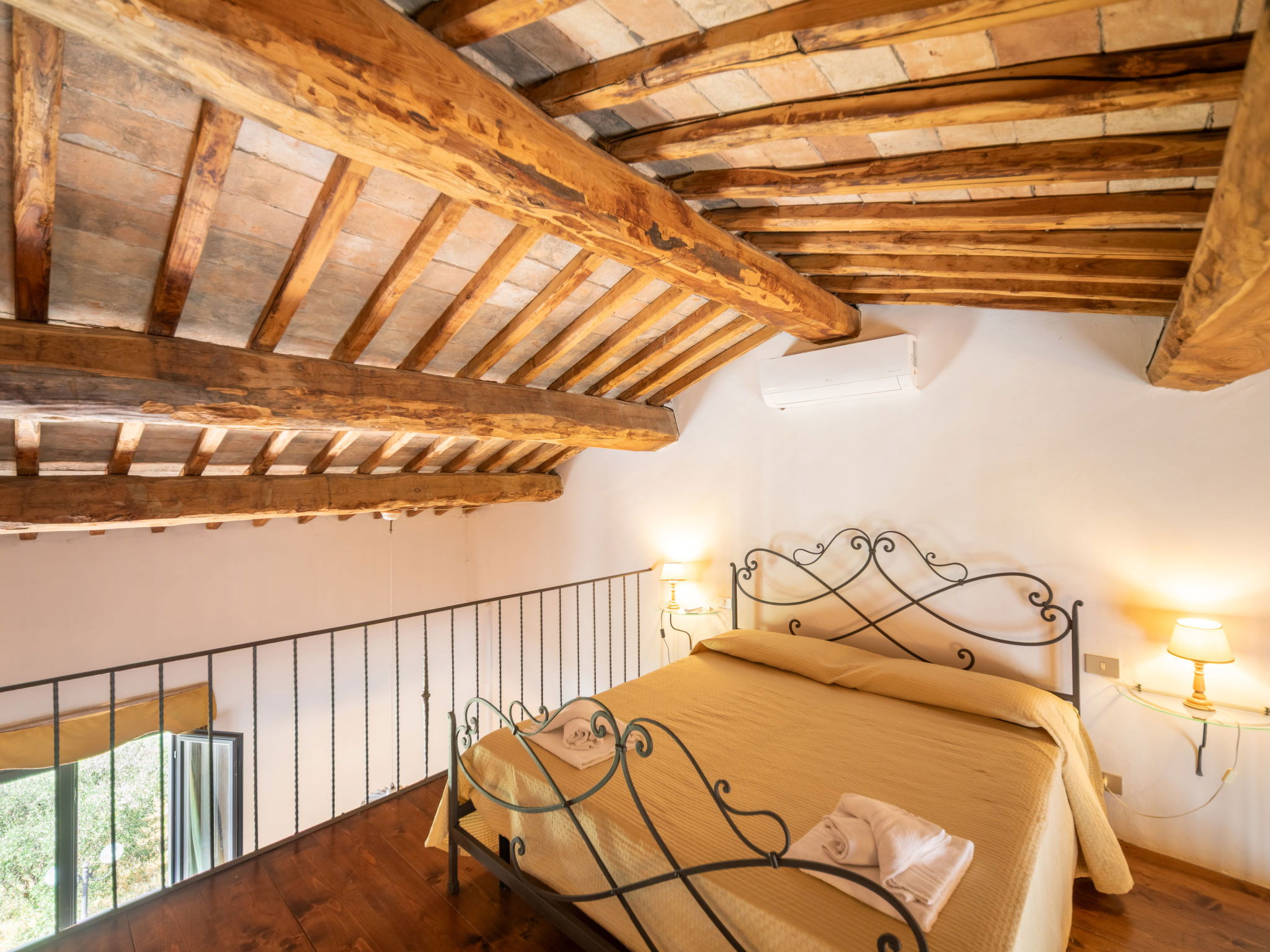 "Fienile", 3-room apartment 95 m2 on 2 levels, on the ground floor. Comfortable and rustic furnishings: living/dining room with 1 double sofabed and TV. 1 double bedroom with air conditioning. Open gallery with 1 double bed. Kitchenette (4 hot plates, dishwasher, toaster, kettle, microwave, freezer). Shower/bidet/WC. Terrace furniture. Very beautiful, of the countryside. Facilities: baby cot for up to 2 year olds (extra), hair dryer. Internet (WiFi, free). Suitable for families. Maximum 1 pet/ dog allowed. IT048033B5S2NHKPIG