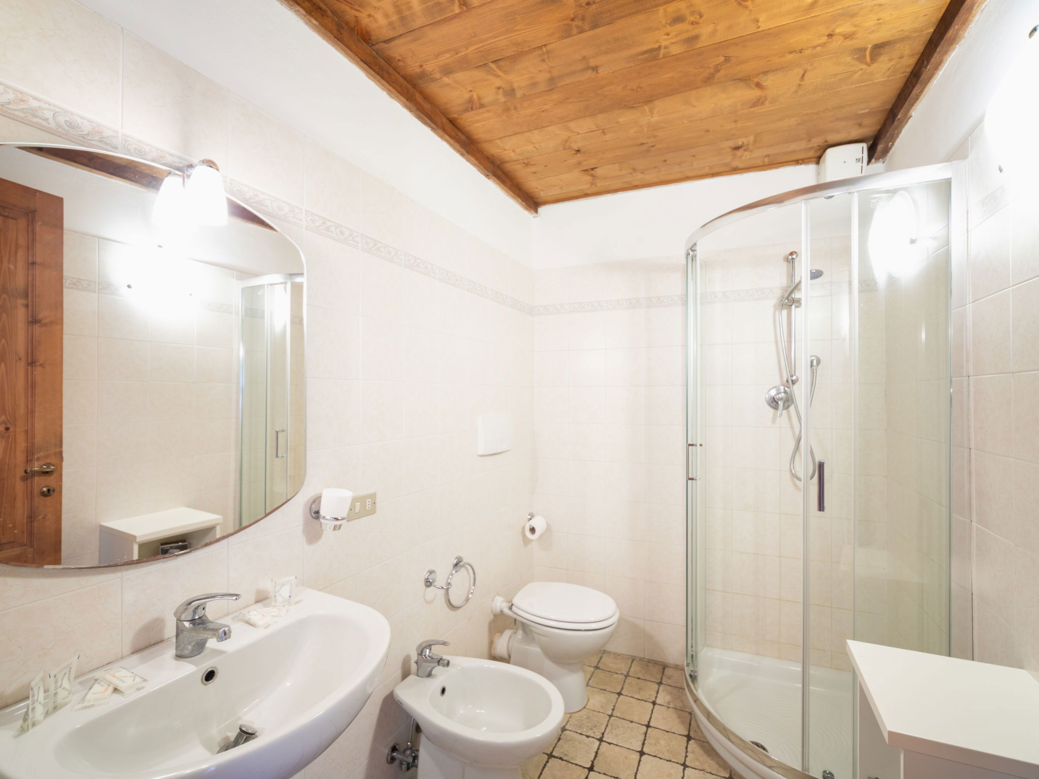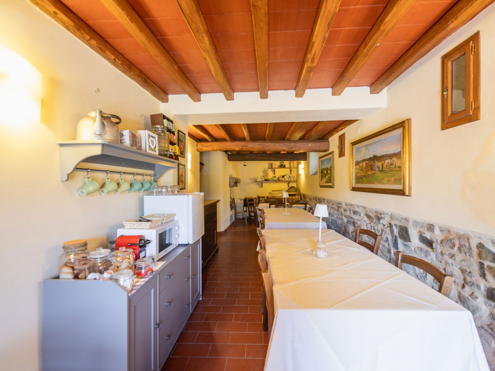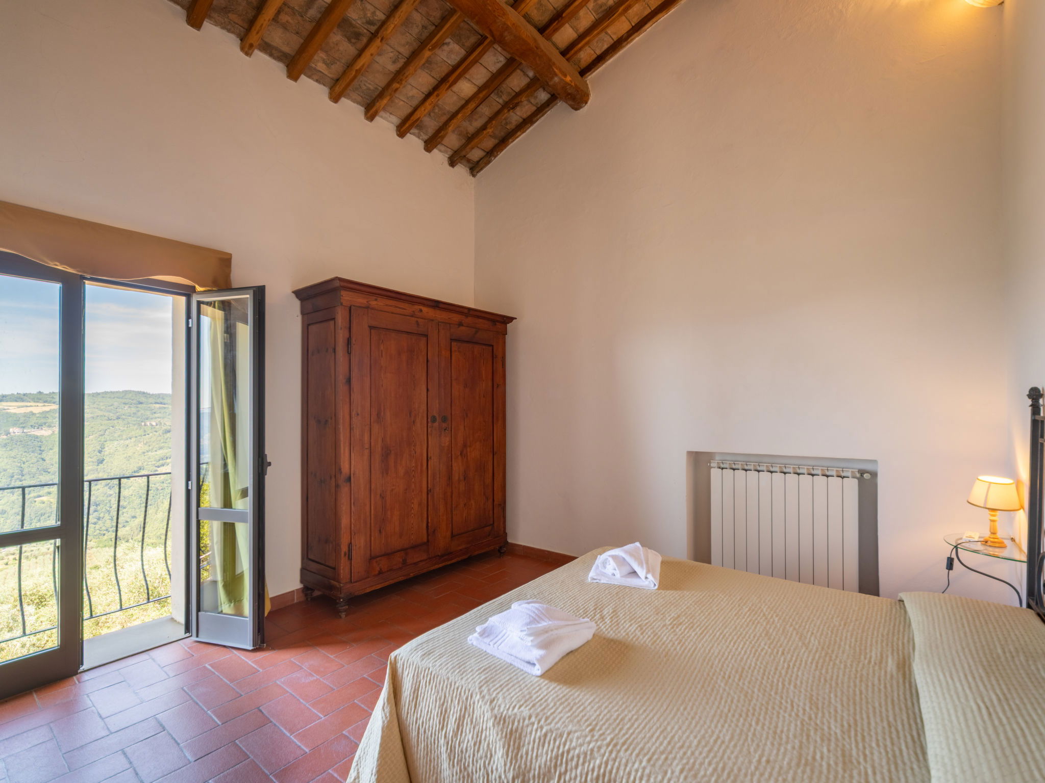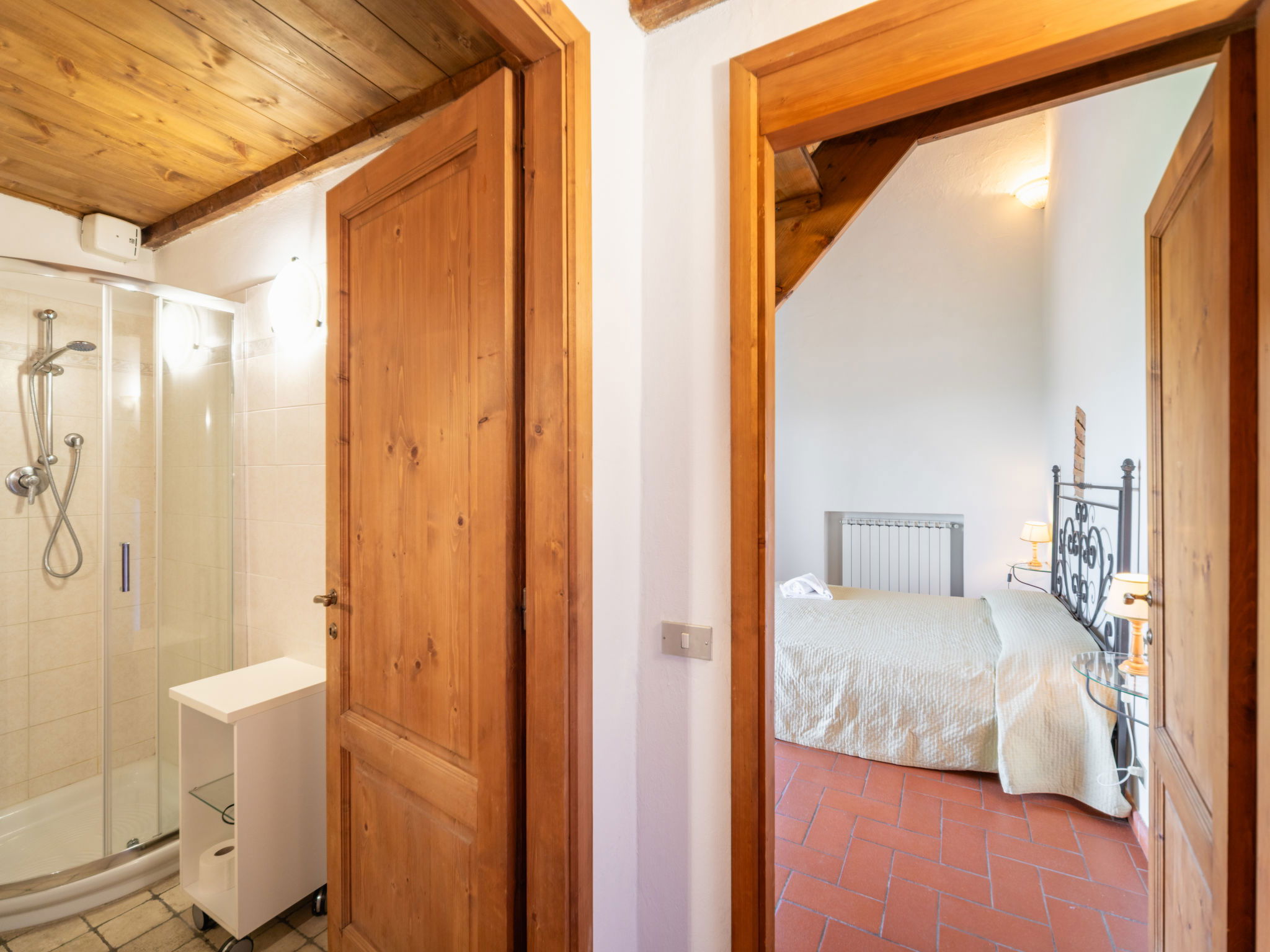 "Fienile", 3-room apartment 95 m2 on 2 levels, on the ground floor. Comfortable and rustic furnishings: living/dining room with 1 double sofabed and TV. 1 double bedroom with air conditioning. Open gallery with 1 double bed. Kitchenette (4 hot plates, dishwasher, toaster, kettle, microwave, freezer). Shower/bidet/WC. Terrace furniture. Very beautiful, of the countryside. Facilities: baby cot for up to 2 year olds (extra), hair dryer. Internet (WiFi, free). Suitable for families. Maximum 1 pet/ dog allowed. IT048033B5S2NHKPIG