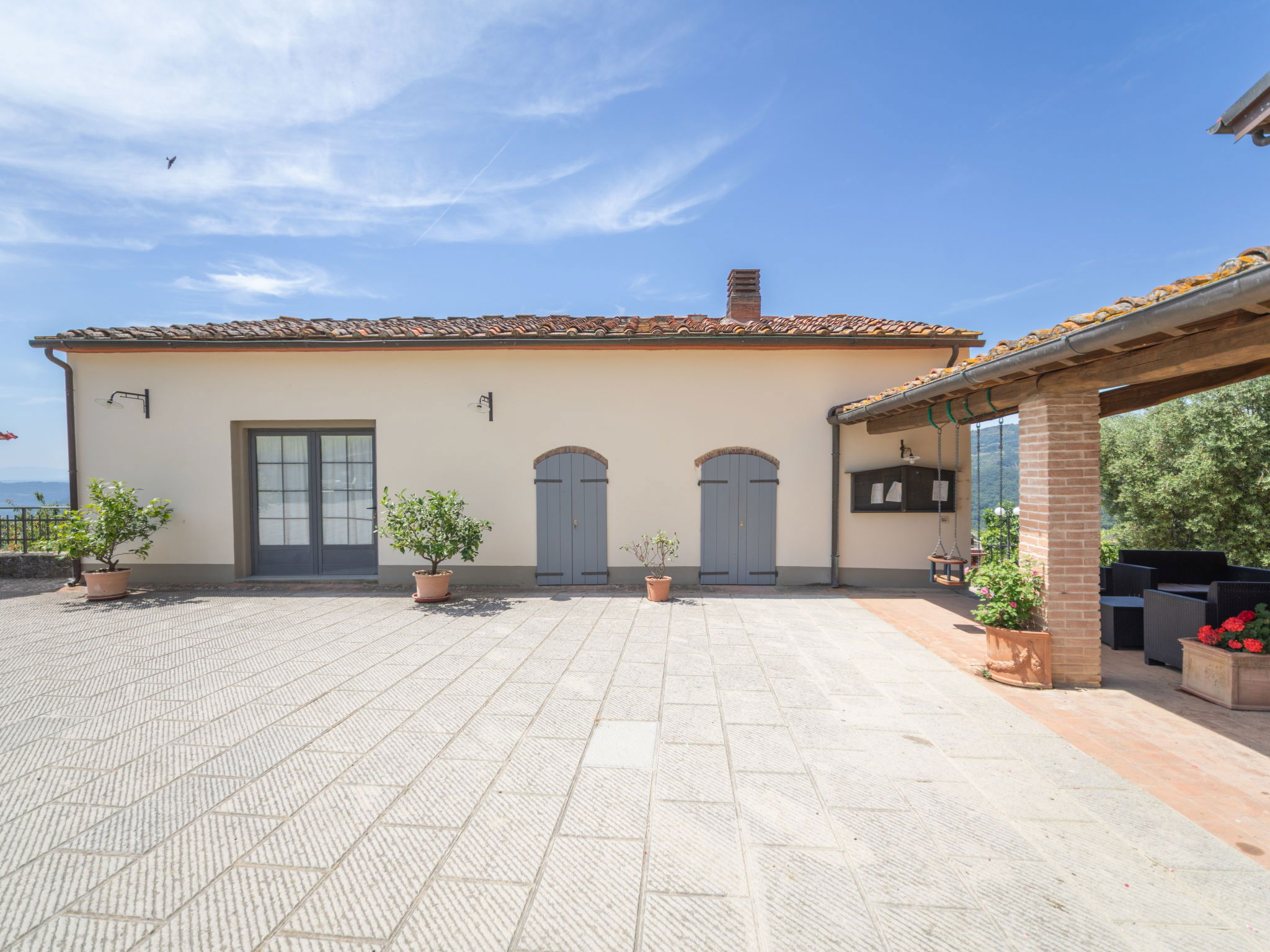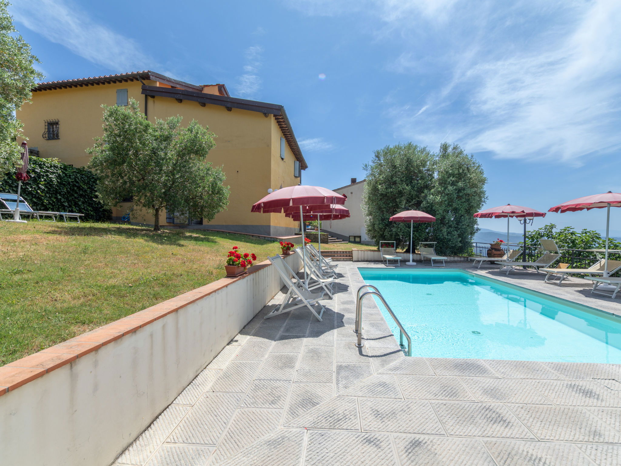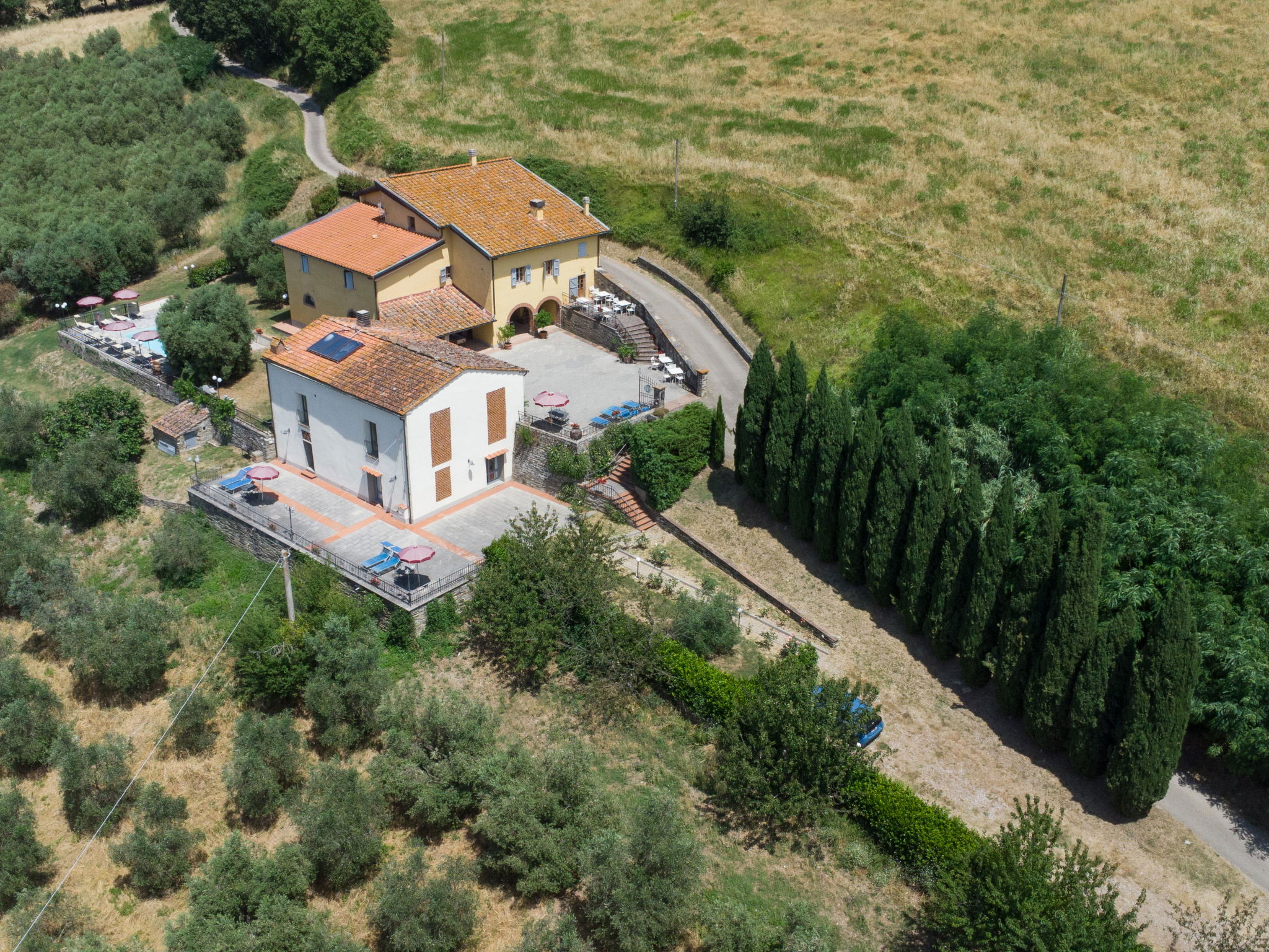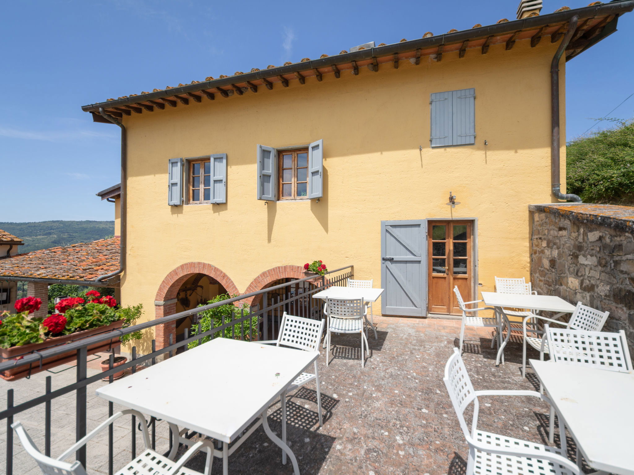 Agricultural estate "Antico Loggiato", 480 m a.s.l.. 4 apartments in the property. 6 km from the centre of Rufina, 13 km from the centre of Pontassieve, 30 km from the centre of Firenze, in an elevated position on top of a hill, in the countryside. For shared use: garden (fenced), swimming pool (8 x 4 m, depth 150 cm, seasonal availability: 01.Apr. - 31.Oct.). Table tennis, garden furniture, barbecue, children's playground (swing), pool maintenance by the owner/gardener. In the complex: reception, table football, central heating system, heating available only from 01.Nov. - 15.Apr.. Parking on the premises. Shop 6 km, grocery 500 m, supermarket 6 km, bus stop "Rufina" 6 km, railway station "Rufina" 6 km, bathing lake "Bilancino" 46 km. Nearby attractions: Vicchio 24 km, Fiesole 30 km, Vallombrosa 31 km, Greve in Chianti 50 km. Please note: the owner lives on the same property.