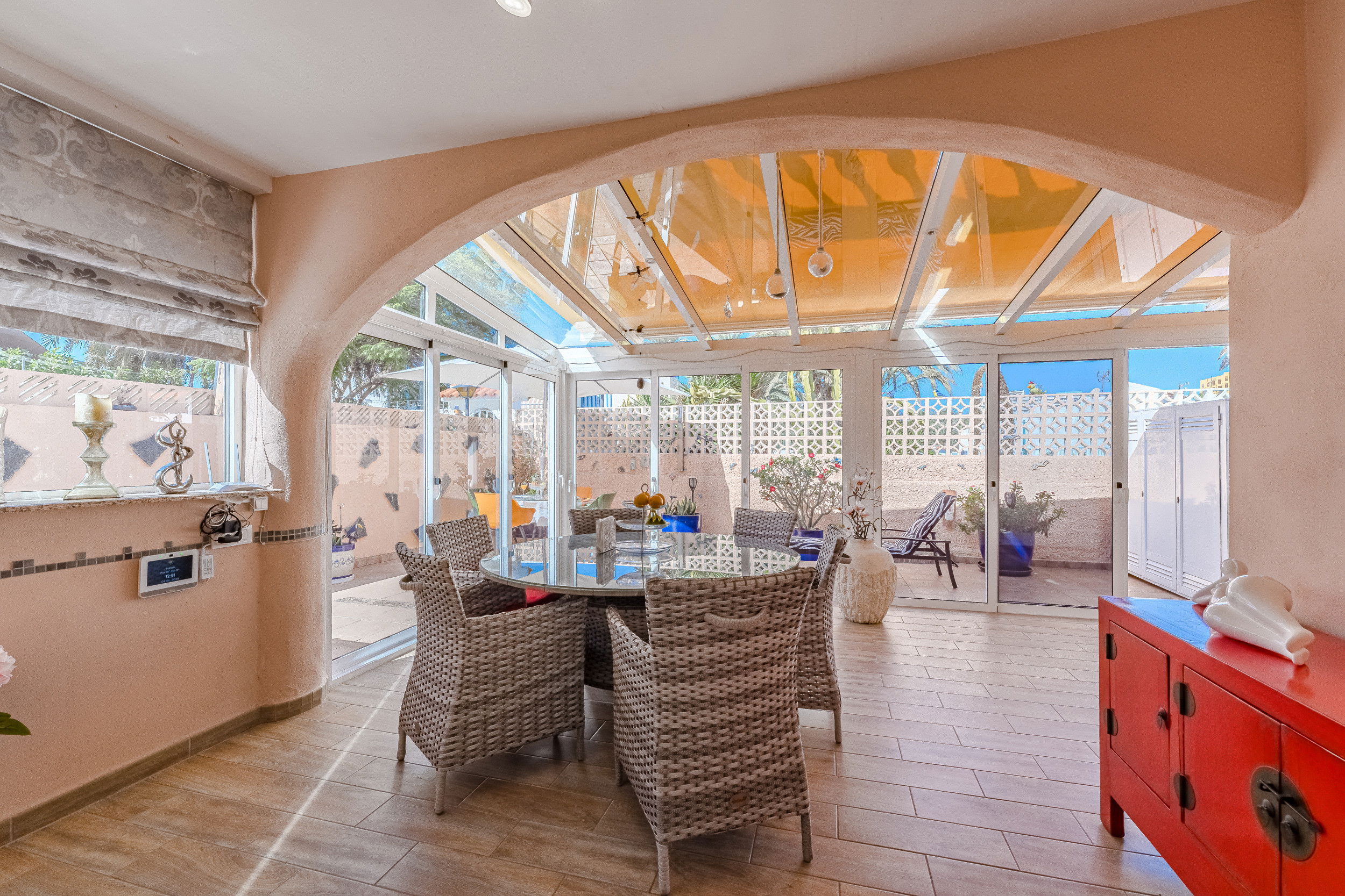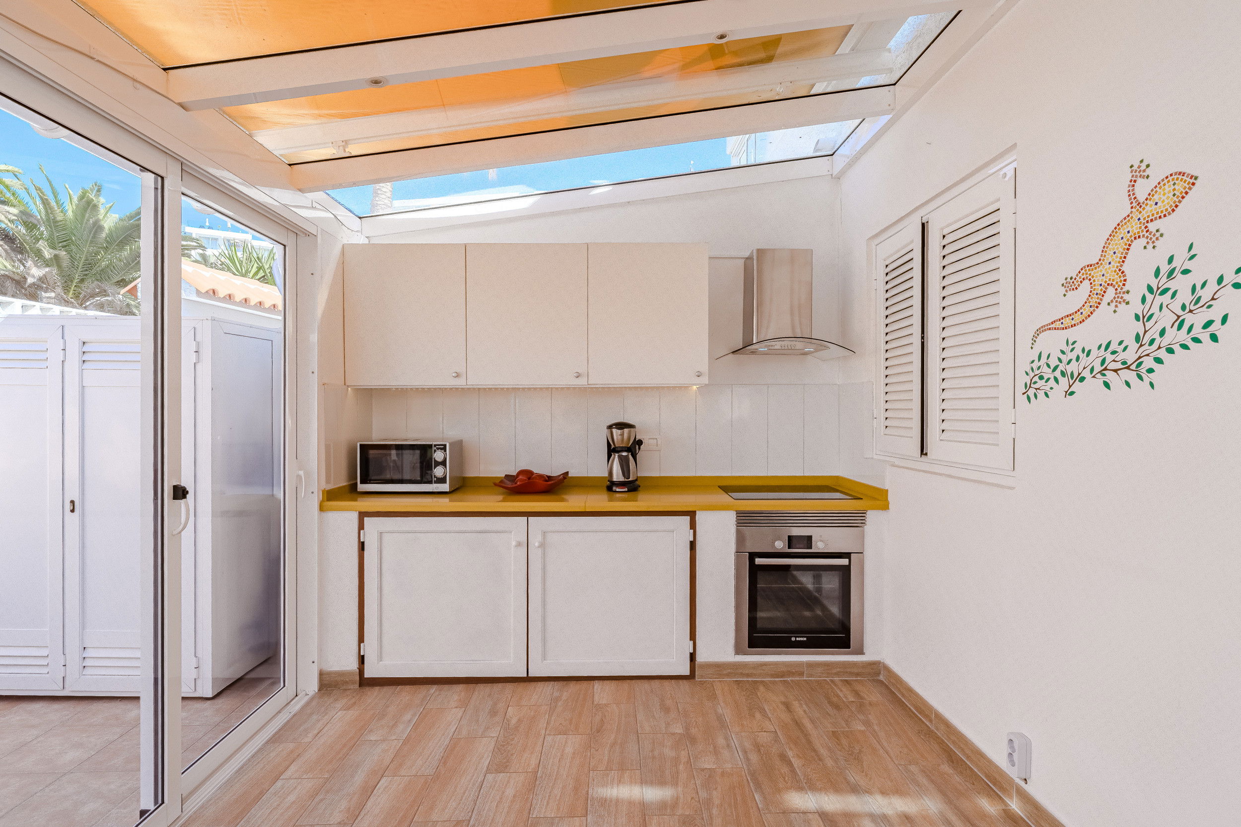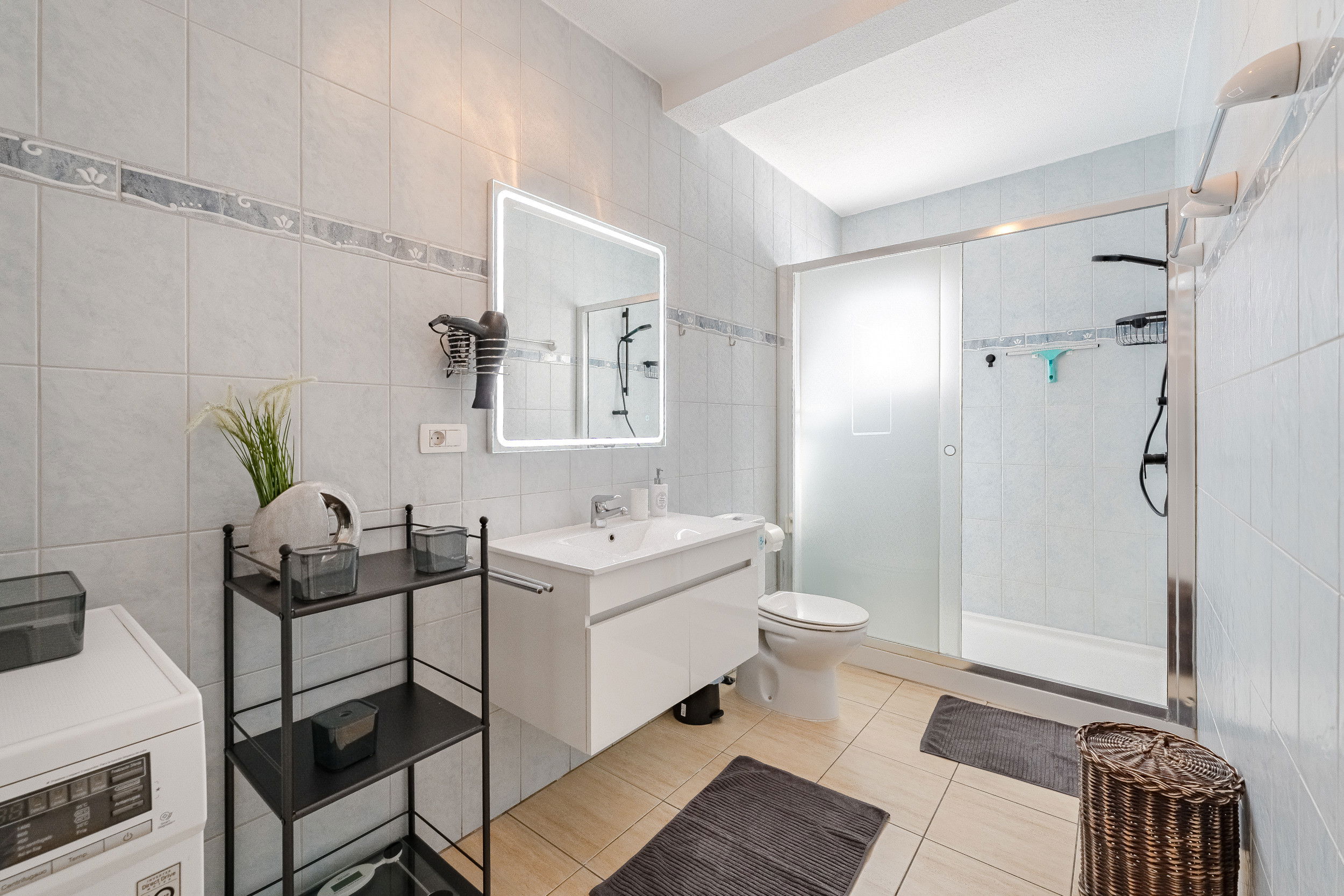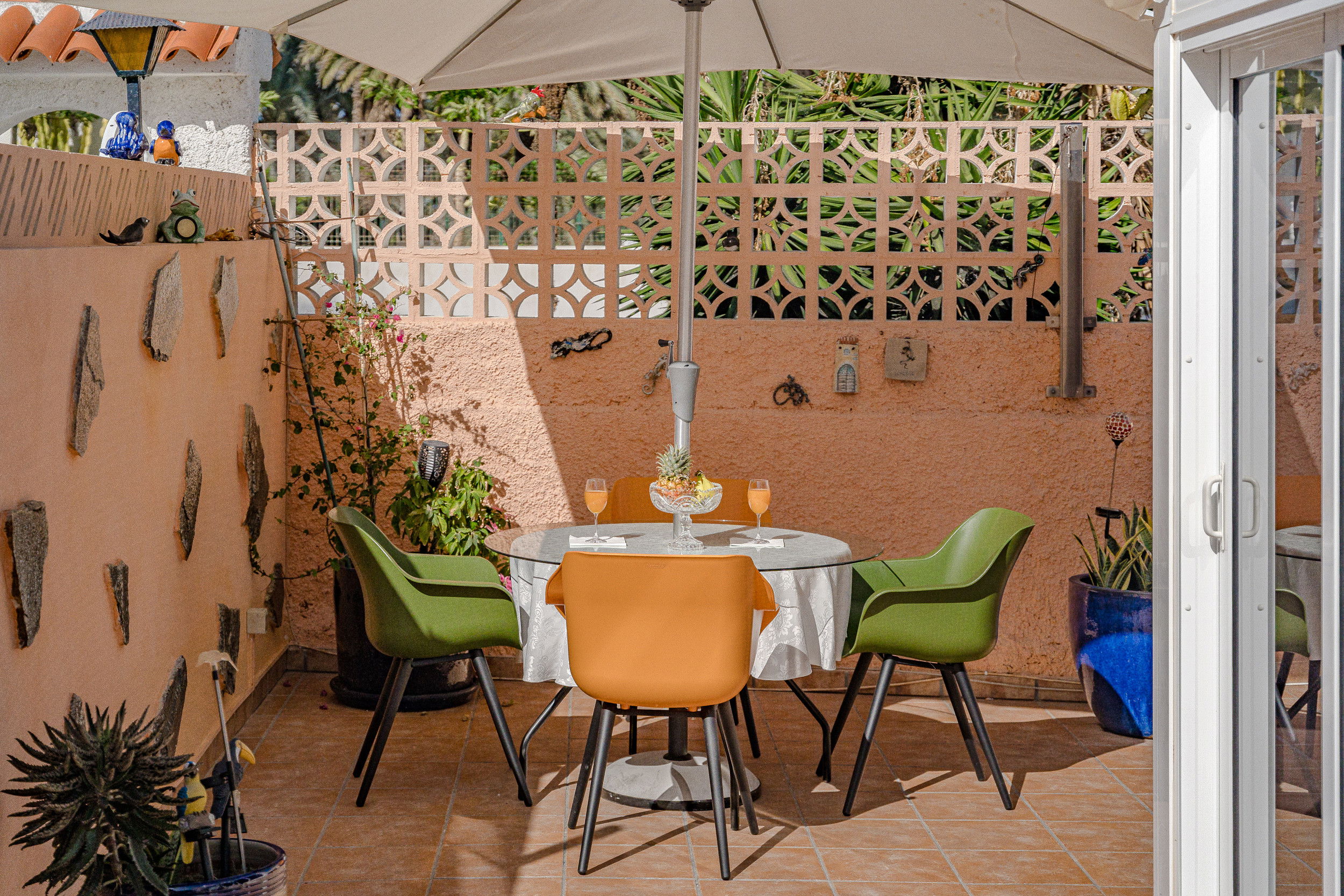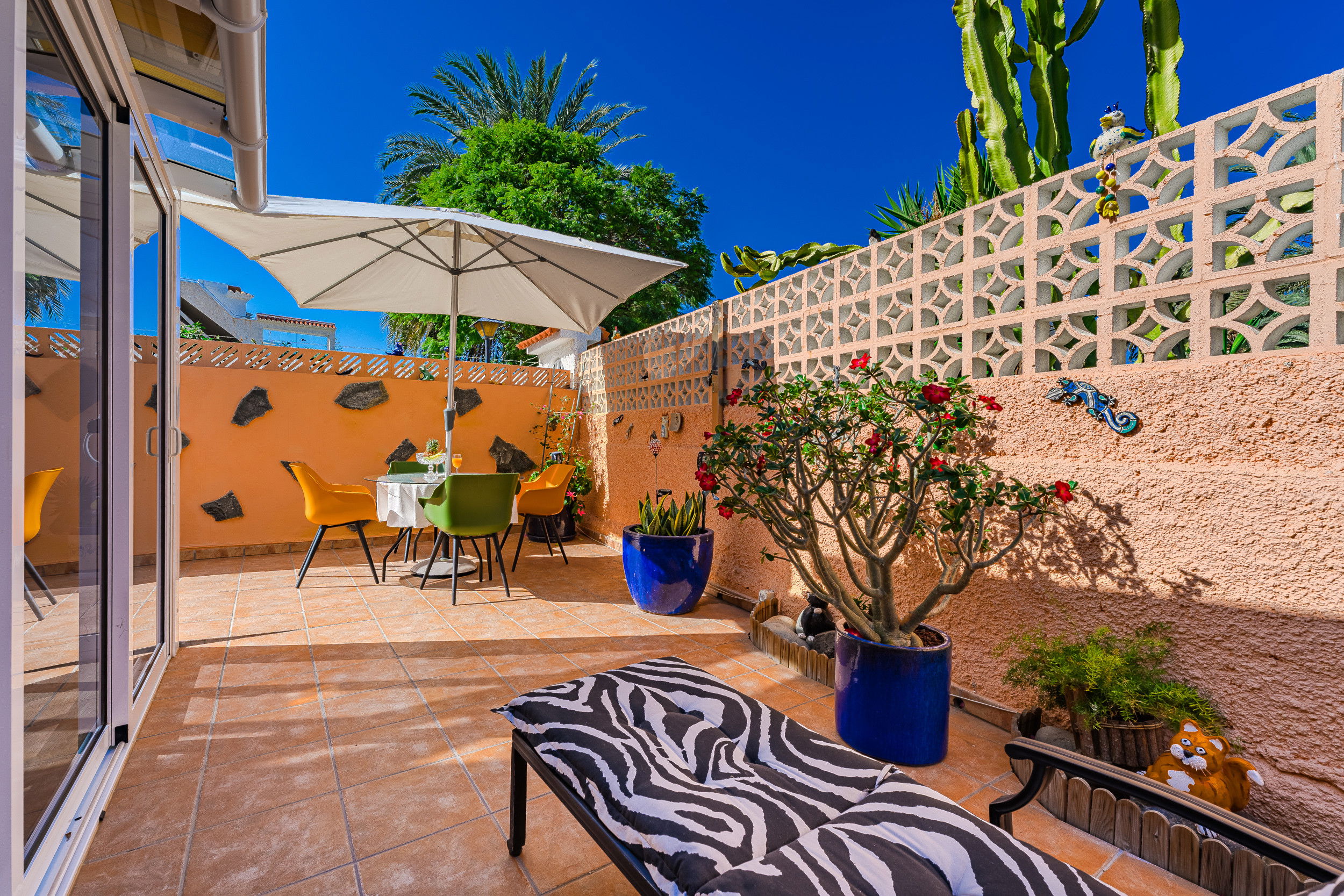 This fantastic ground-floor flat has been stylishly furnished to a high standard. The fantastic flat is located directly by the pool and is approx. 150 metres from the most beautiful sandy beach in Tenerife. The huge terrace is ideal for sunbathing and romantic dinners. The flat is fully equipped and has 2 bedrooms, 1 of which has a queen-size bed and the other bedroom has two single beds. In the living room there is also a sofa bed for 2 people. There is a fully equipped American kitchen, 1 small outdoor kitchen, 1 bathroom and a large conservatory with dining area. The spacious communal pool in the very well-kept complex provides cooling and fun for the whole family and is located right next to the flat. One of Tenerife's most beautiful beaches is just 150 metres away and everything else is just a few minutes' walk away. The most beautiful water park in the world, Siampark, is also just a 10-minute walk away. The largest shopping mall in the south of Tenerife, the Siam Mall, is also less than 15 minutes away on foot. this dream flat leaves nothing to be desired and we would be delighted to welcome you as our guests.