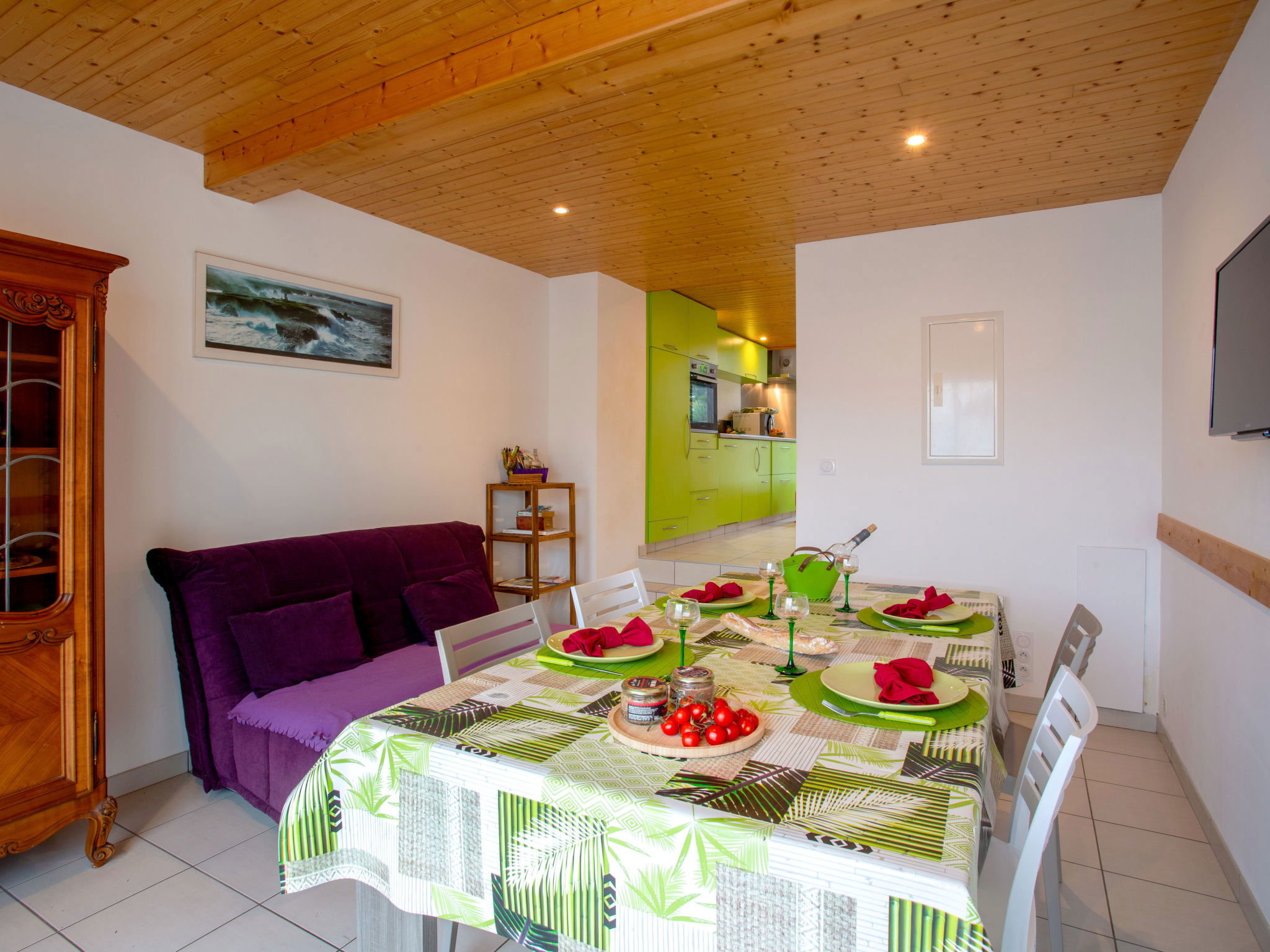 "Ker Zelia", 3-room terraced house 45 m2 on 2 levels, south-west facing position. Beautiful furnishings: living/dining room with TV " 500 m, railway station "La Bernerie en Retz" 1 km, sandy beach "Grande plage de la Bernerie" 40 m, thermal baths "Alliance Pornic Thalasso & Spa" 8 km. Sports harbour 7 km, golf course (18 hole) 9 km, tennis 400 m. Nearby attractions: Marché de La Bernerie en Retz 600 m, Pornic 7 km, Port du Collet 24 km, Planète Sauvage 36 km, Les Machines de l'Ile - Nantes 55 km, Noirmoutier 65 km. Well-known lakes can easily be reached: Lac de Saint Viaud 27 km. The keys‘ handover takes place by the agency in Pornic, 6 km.