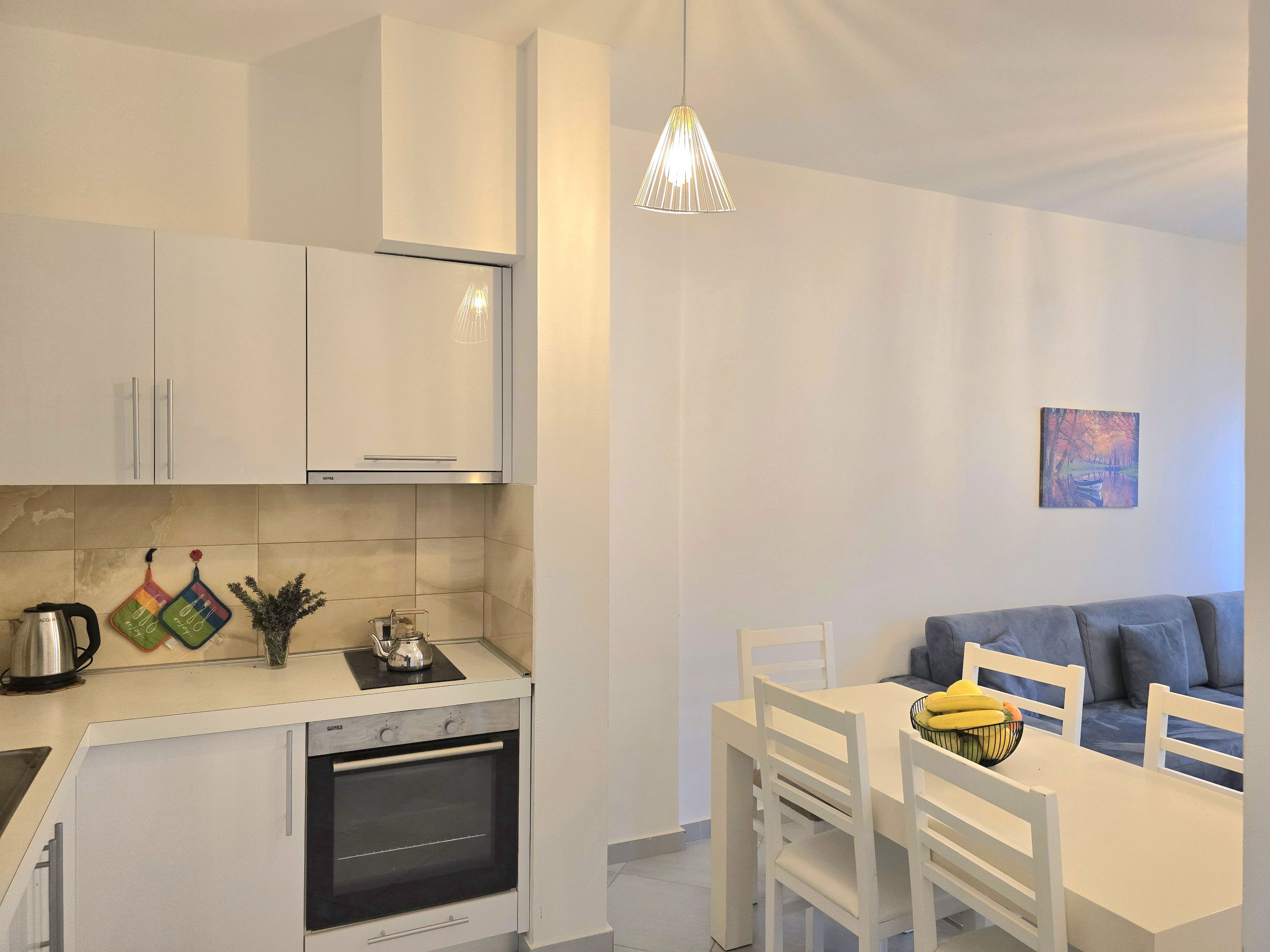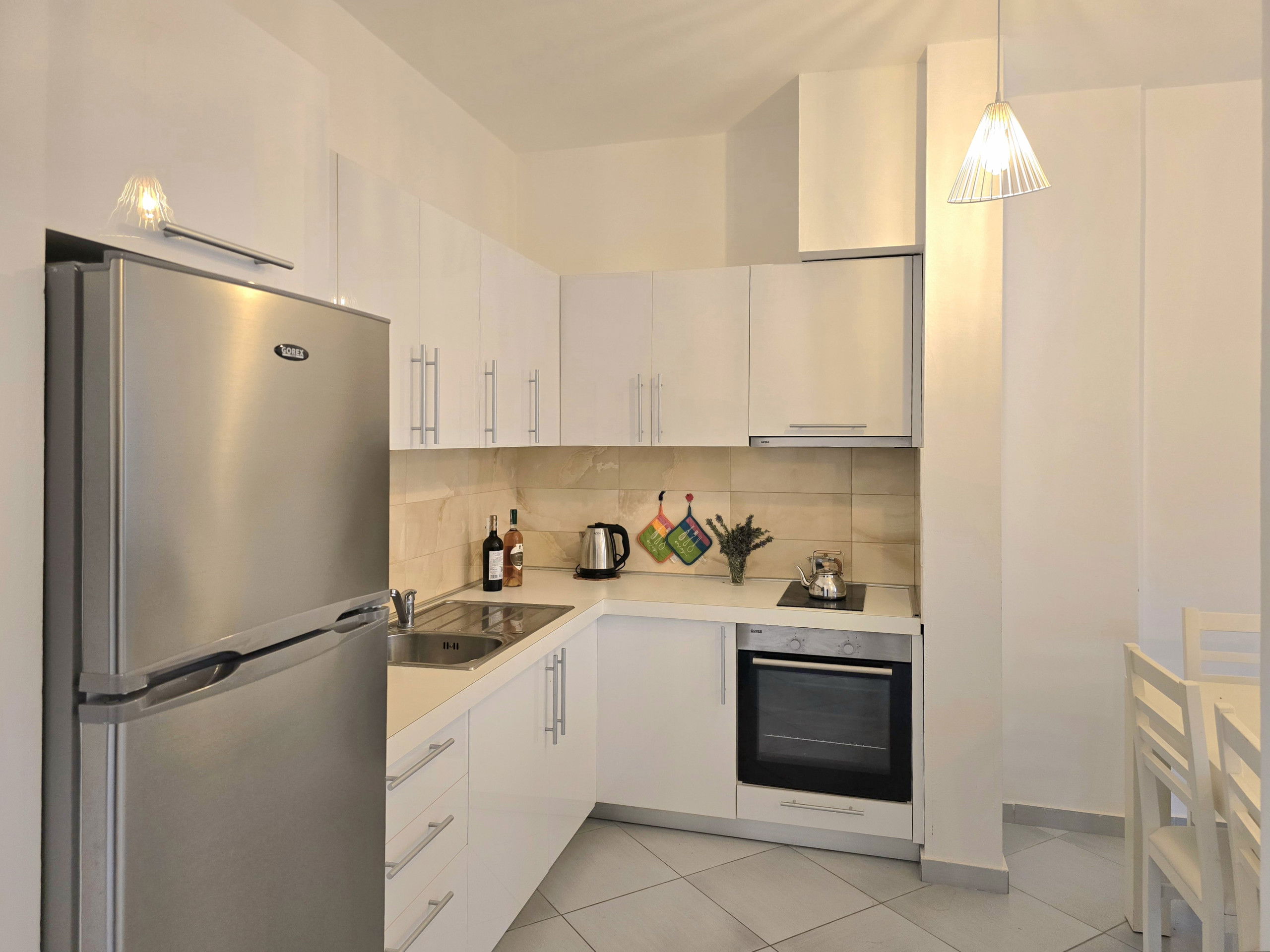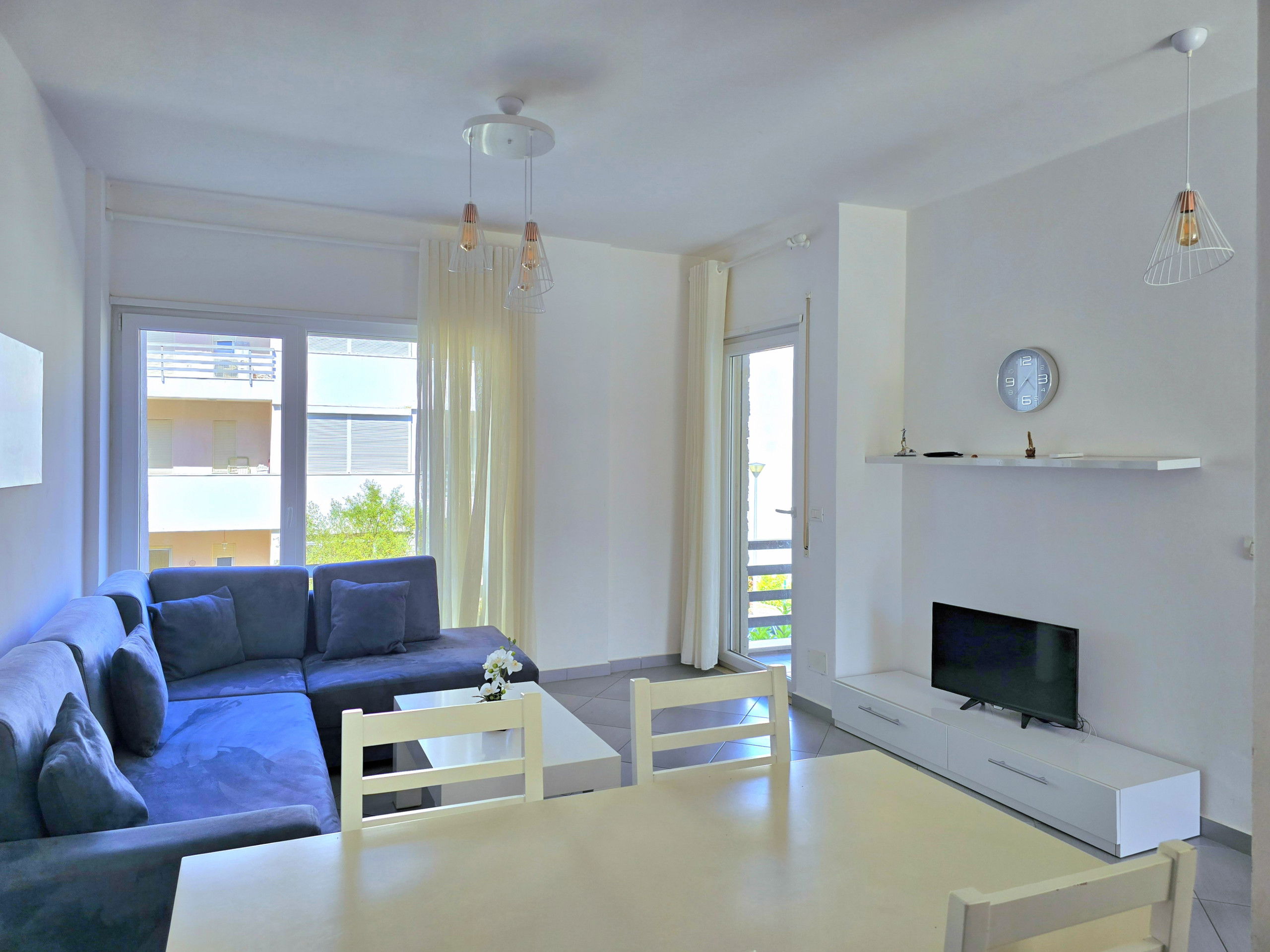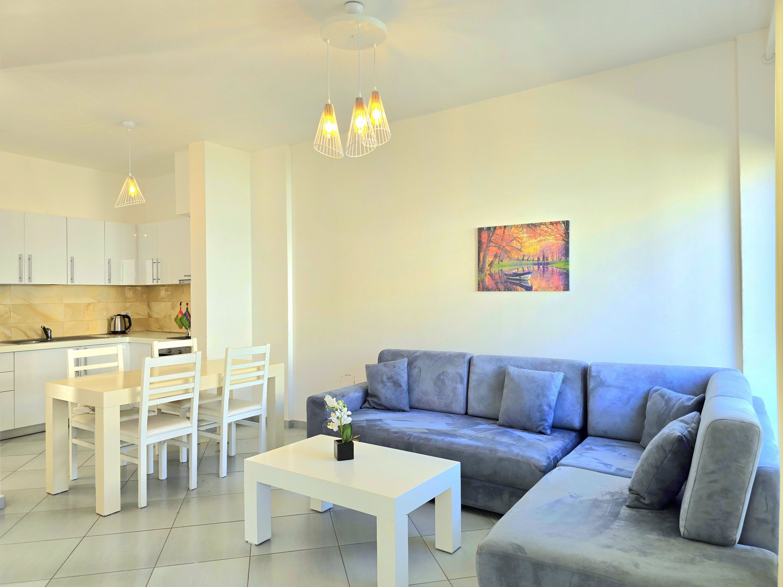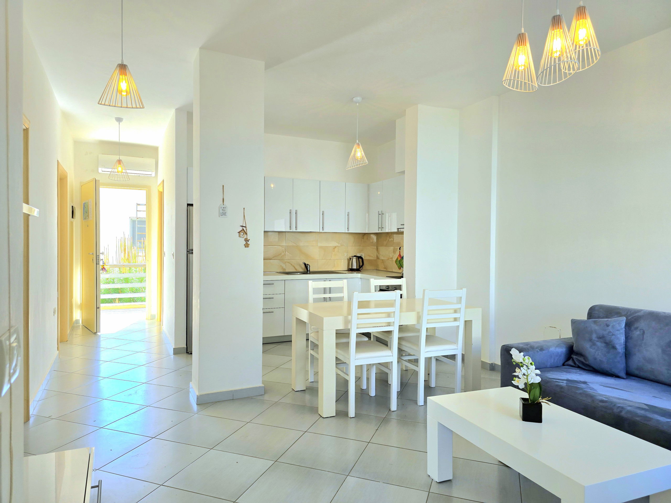 Located just 300 meters from the sandy beach, the apartment is ideally situated for beach lovers. Nearby amenities include a supermarket (40m), multiple restaurants (50-600m), and coffee shops within walking distance. Tirana International Airport is just 38 km away, making travel convenient.