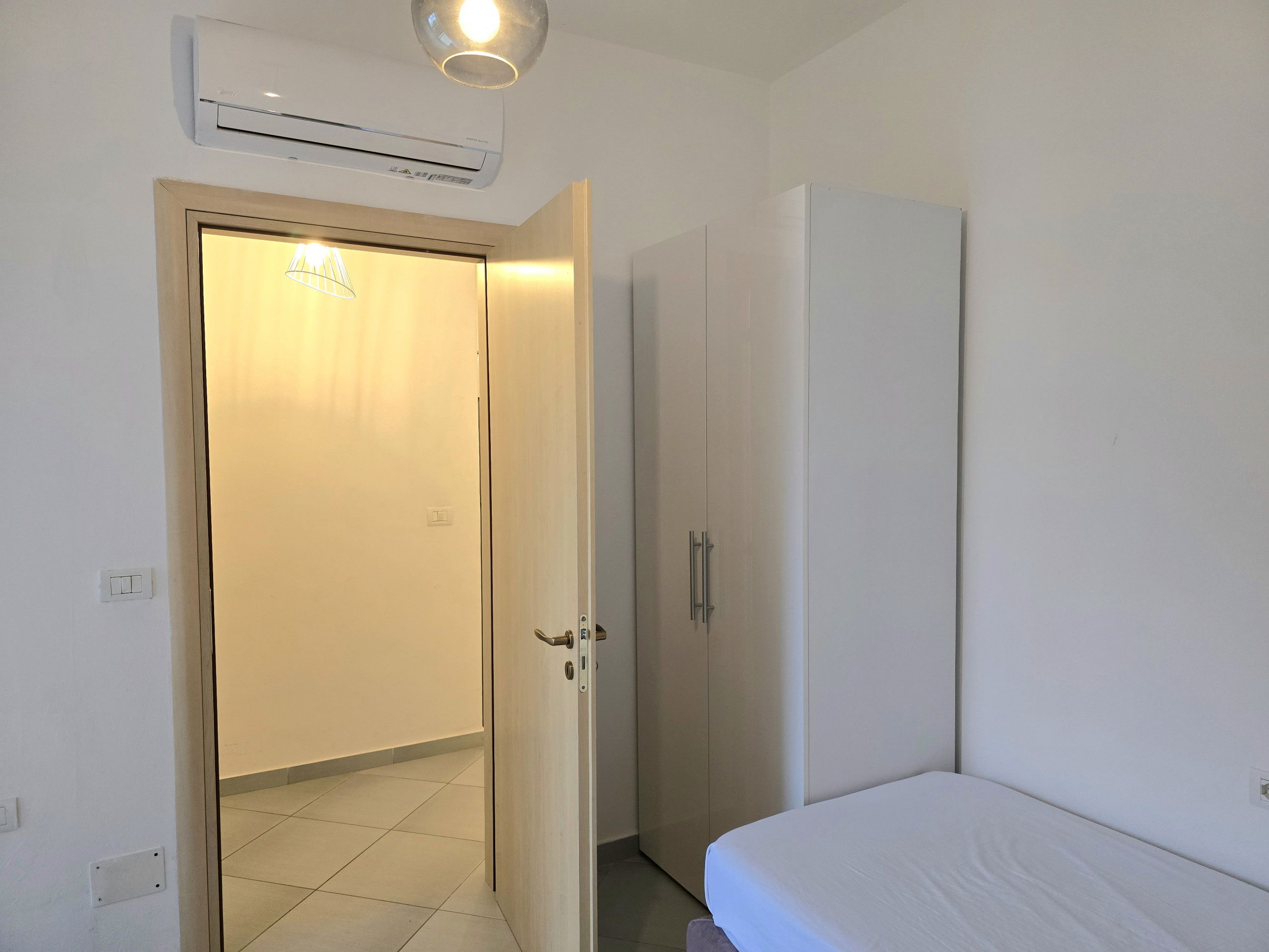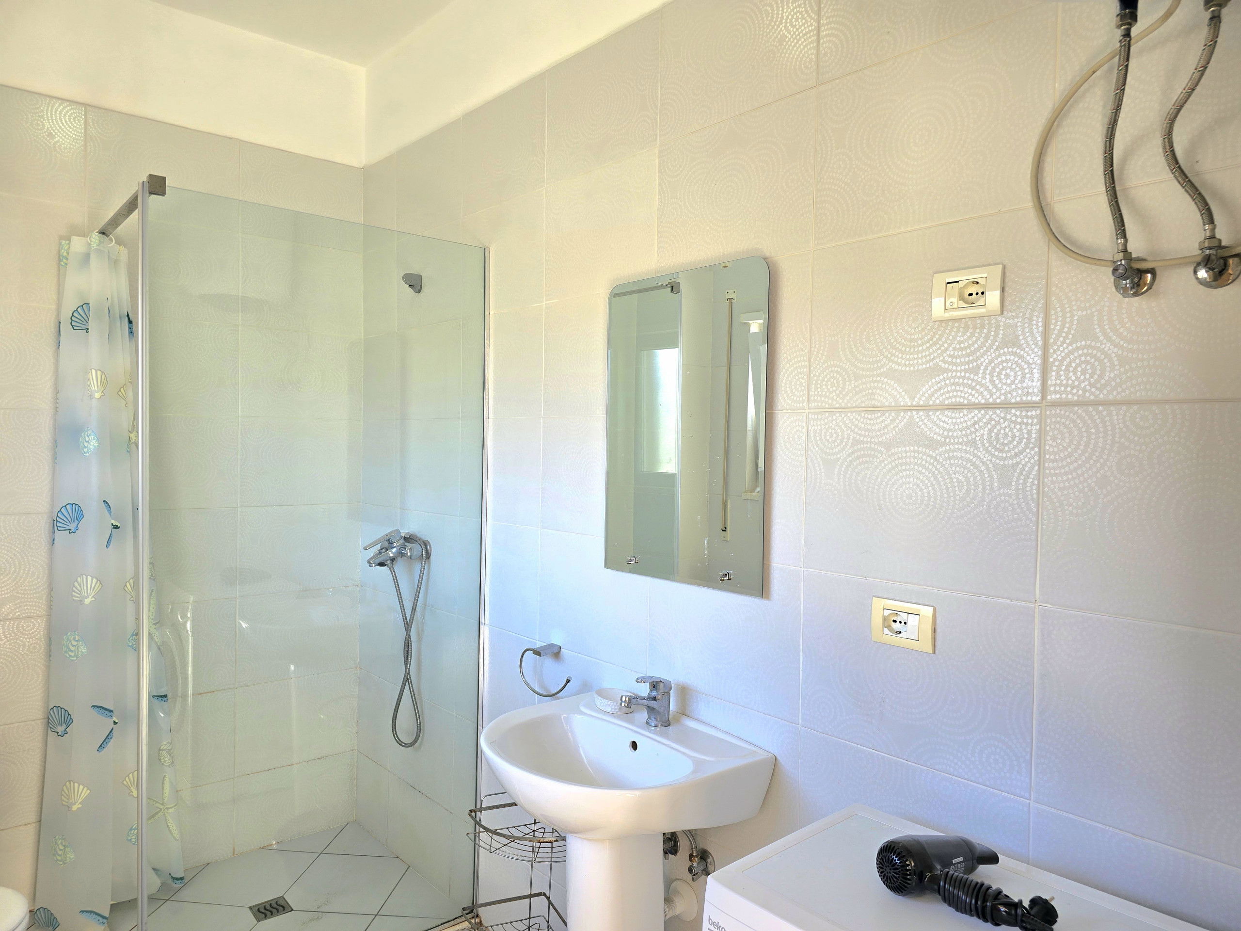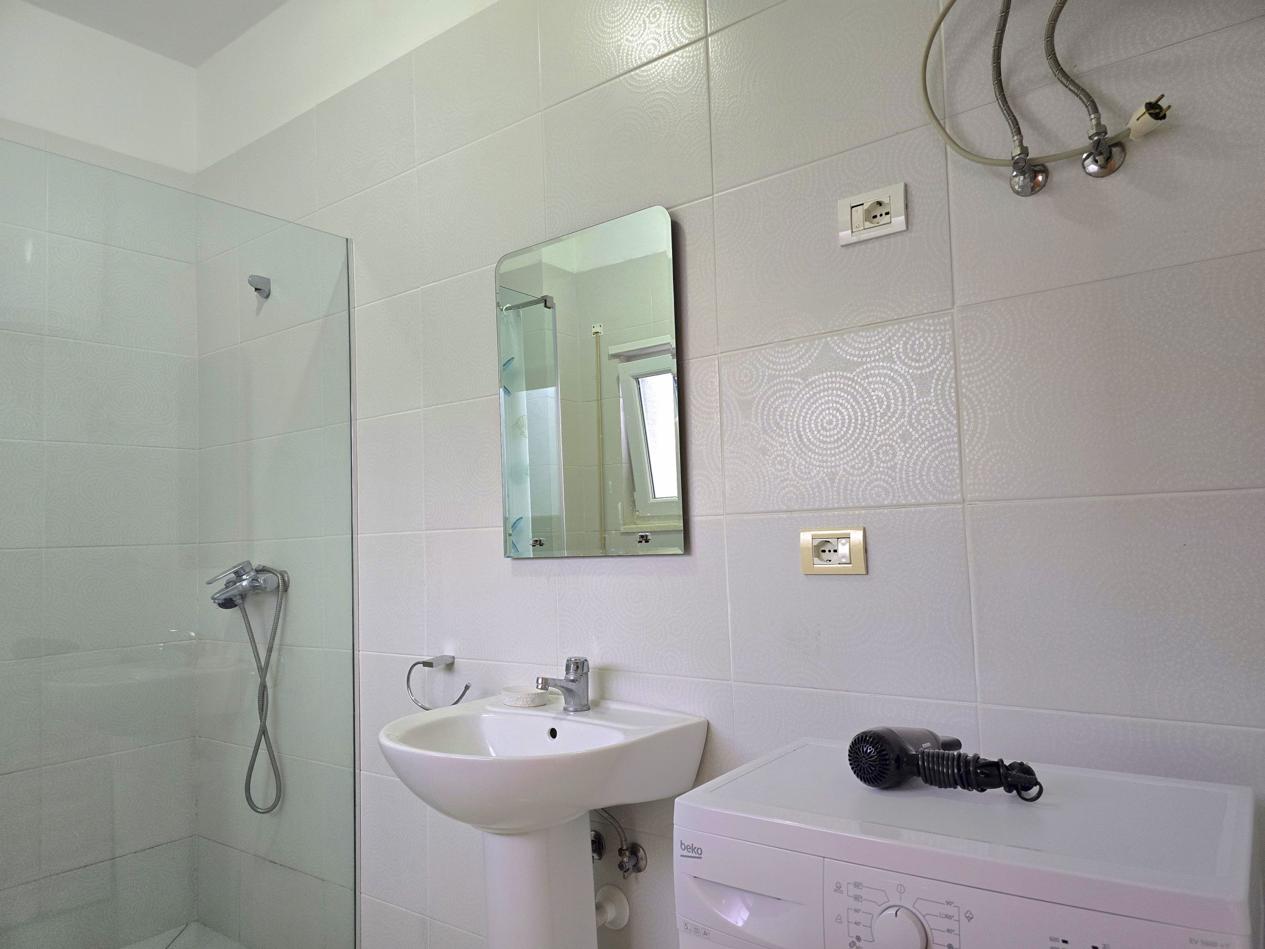 The apartment features two bedrooms with a versatile sleeping arrangement: one double bed, two individual beds, and a sofa bed, ensuring flexible and comfortable sleeping options for all guests. The single bathroom with a shower provides convenient facilities for everyone.