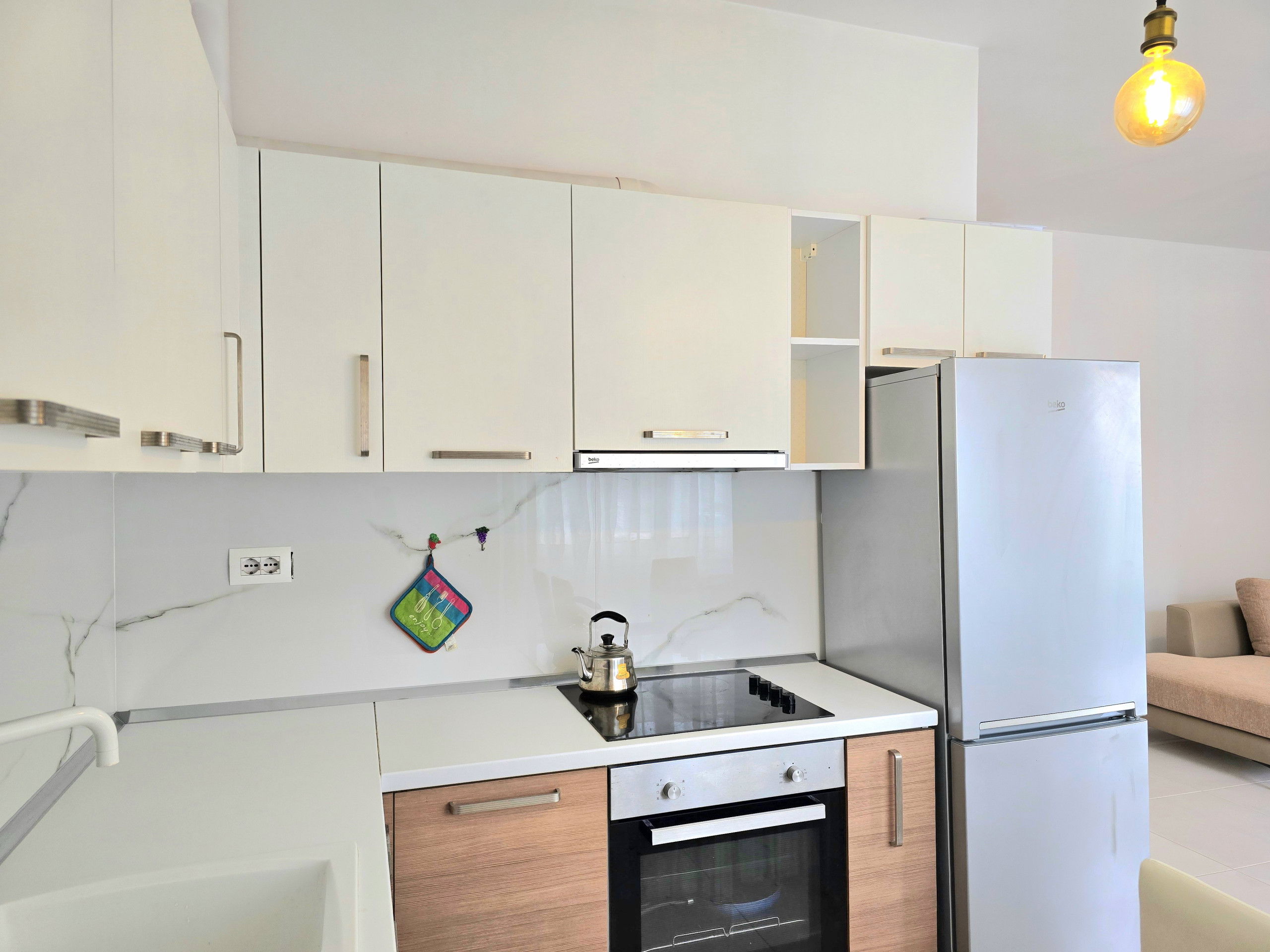 The apartment is located in the beautiful Perla Resort, a gated residence with 24/7 surveillance and maintenance. It has a pool that can be used by our guests as well with an extra daily fee. The area around is quiet and offers a lot of services to make your holidays as best possible. There is a supermarket in the center of the complex called OK-Market. In front of the residences, there are green areas and a promenade to enjoy the evening walks. Along the promenade, there are different bars, restaurants, massage tents, playground for children, rental bicycles, etc.. The resort has sportive fields that may be used with prior reservation and an hourly fee.