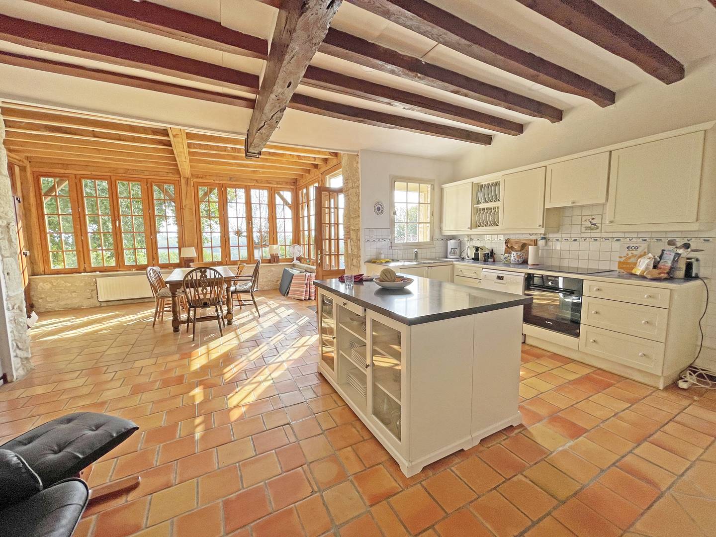 The front door opens onto the large open-plan kitchen with terracotta tiled floor and french doors opening on to the garden.