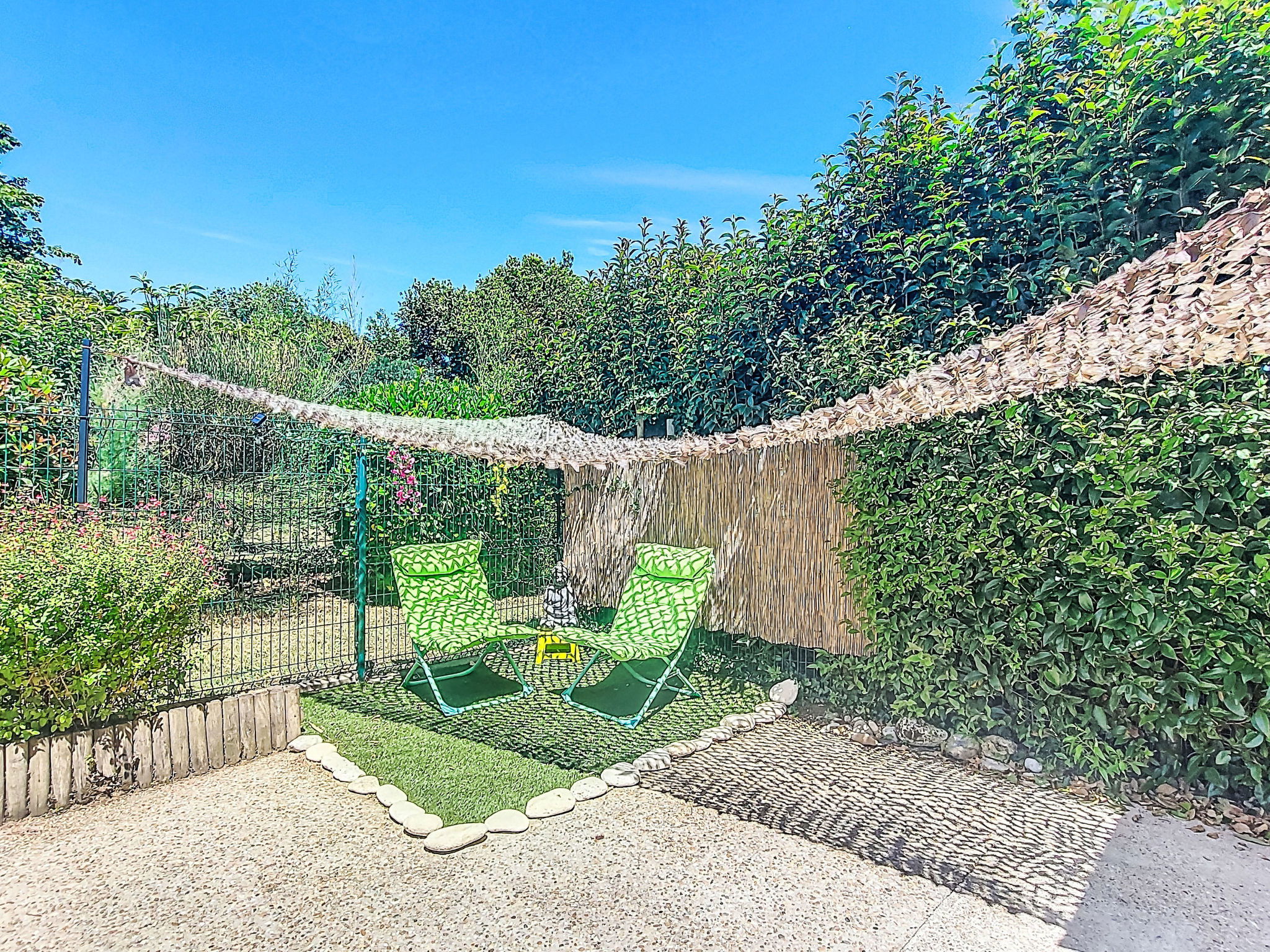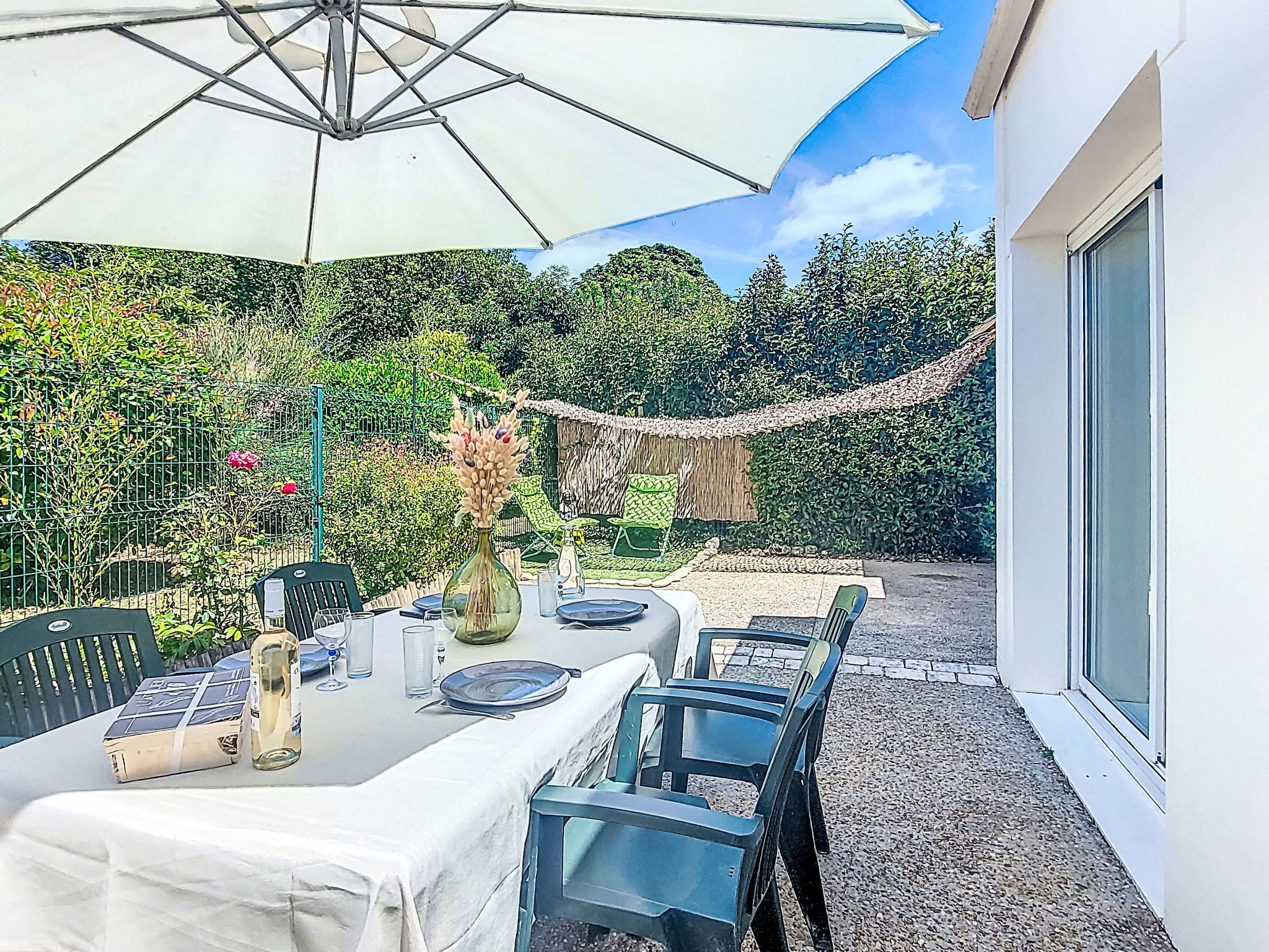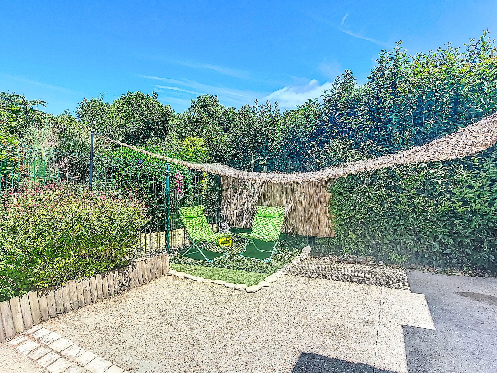 Terraced house "La Martignas 1". In the resort 500 m from the centre of Saint Pierre d'Oléron, in a quiet position in the residential district, 4.5 km from the sea, 4.5 km from the beach. Private: well-kept garden (fenced) with lawn and wildlife garden. Terrace, garden furniture, barbecue, parking. Shop, grocery 500 m, supermarket 900 m, restaurant, bar, bakery, café, pedestrian zone 500 m, bicycle rental 900 m, bus stop "Gare routière" 850 m, railway station "Rochefort sur Mer" 43 km. Sports harbour 4.2 km, golf course (9 hole) 7 km, surf school 5 km. Nearby attractions: Iléo centre aquatique 6 km, Phare de Chassiron 16 km, Port de la Cotinière 5 km, Corderie Royale Rochefort 43 km, La Rochelle 75 km. Please note: baby equipment (included).
