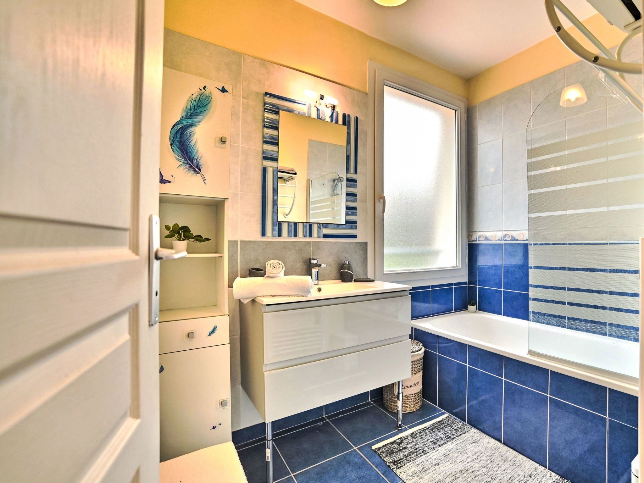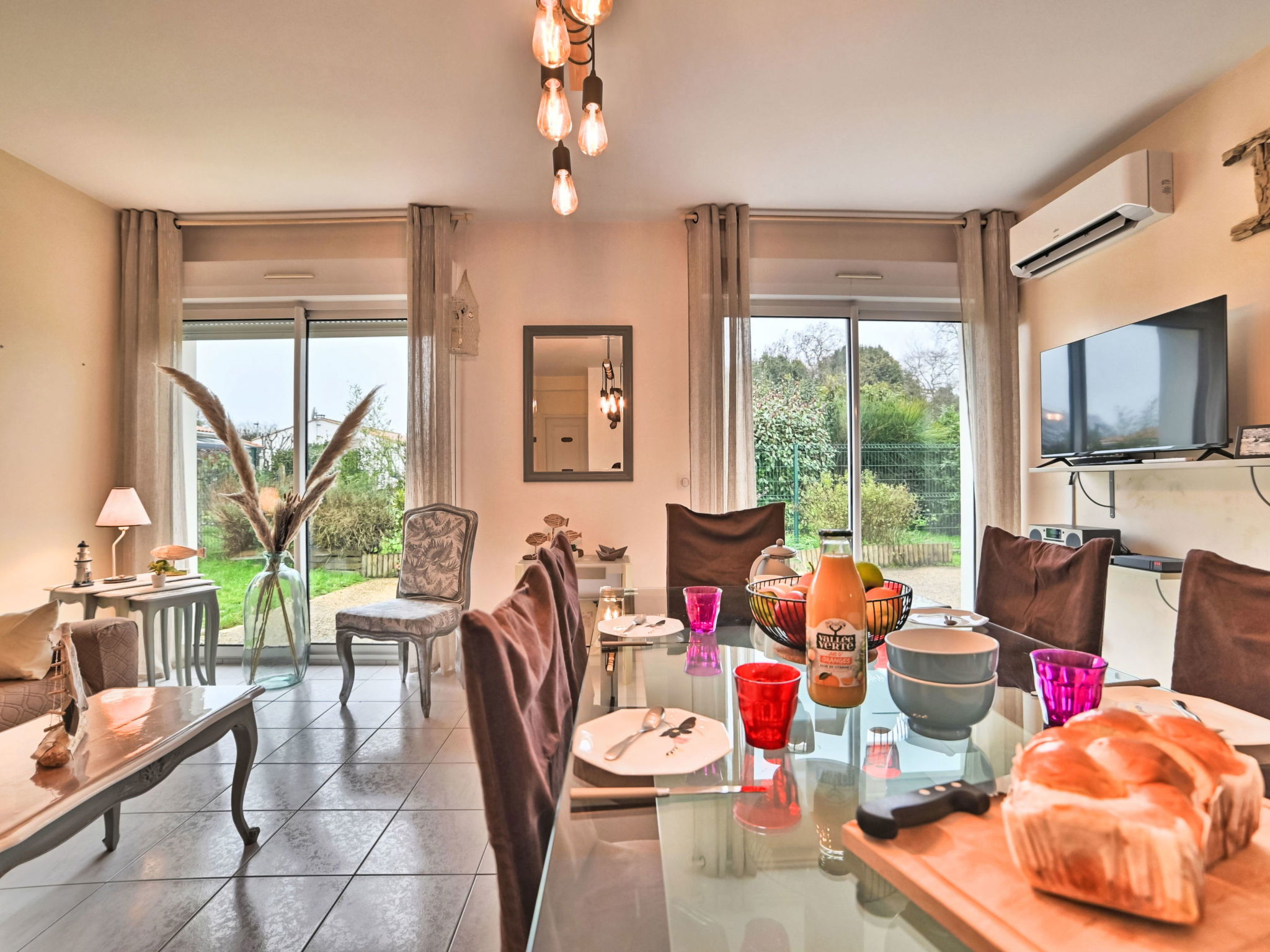 4-room terraced house 84 m2. Beautiful and modern furnishings: living/dining room with TV (flat screen), air conditioning. Kitchen (oven, dishwasher, 3 induction hot plates, toaster, kettle, microwave) with TV (flat screen). Sep. WC. Upper floor: 1 room with 1 french bed (140 cm, length 190 cm). 1 room with 1 bed (90 cm, length 190 cm), 1 french bed (140 cm, length 190 cm). Bathroom, sep. WC. Electric heating. Terrace 30 m2, garden. Terrace furniture, barbecue, deck chairs. Facilities: washing machine, children's high chair, baby cot, hair dryer. Internet (WiFi). Please note: non-smokers only. Smoke alarm. Offer by a private individual according to Art. 155, IV of CGI. 1738500022667