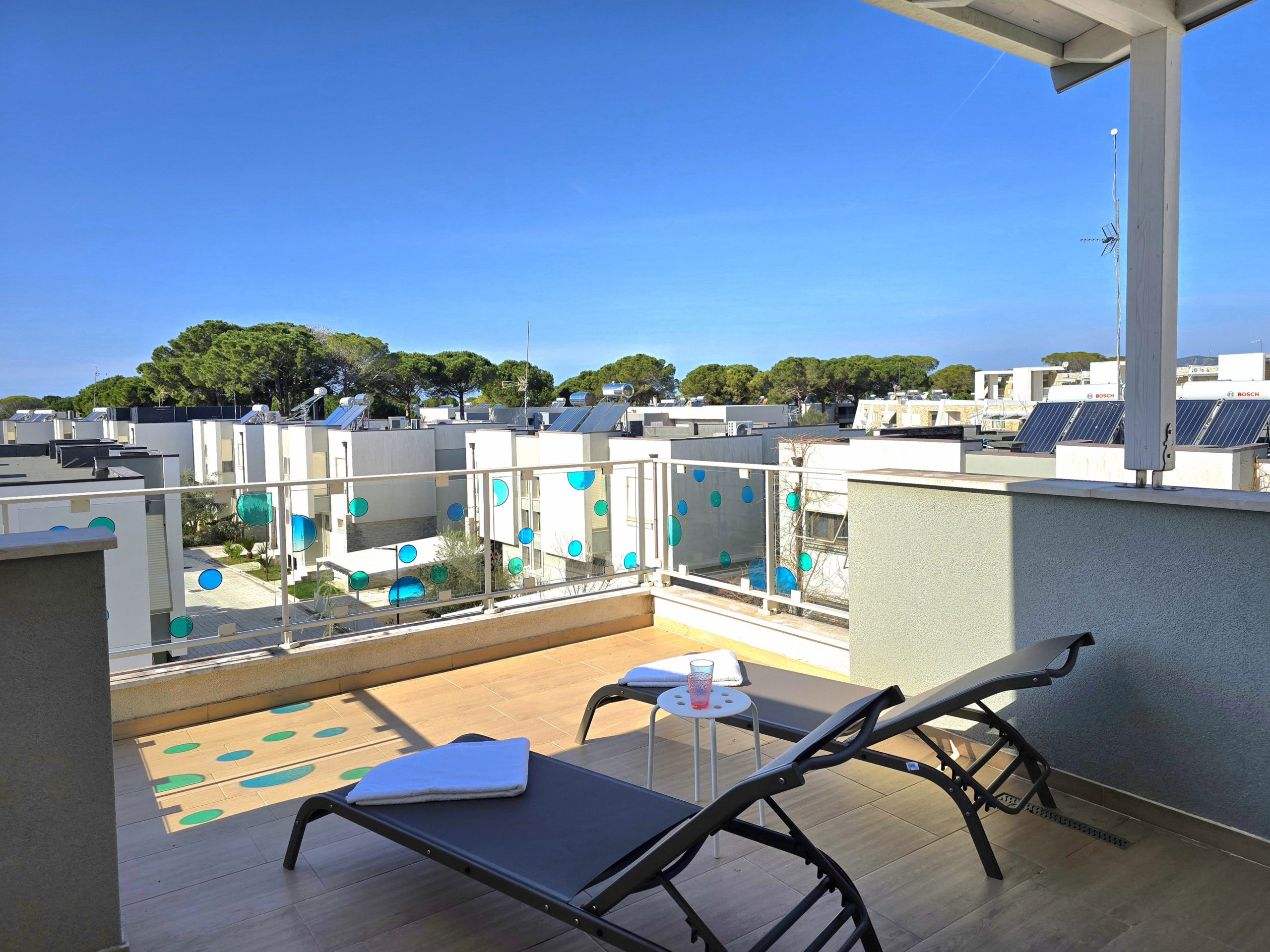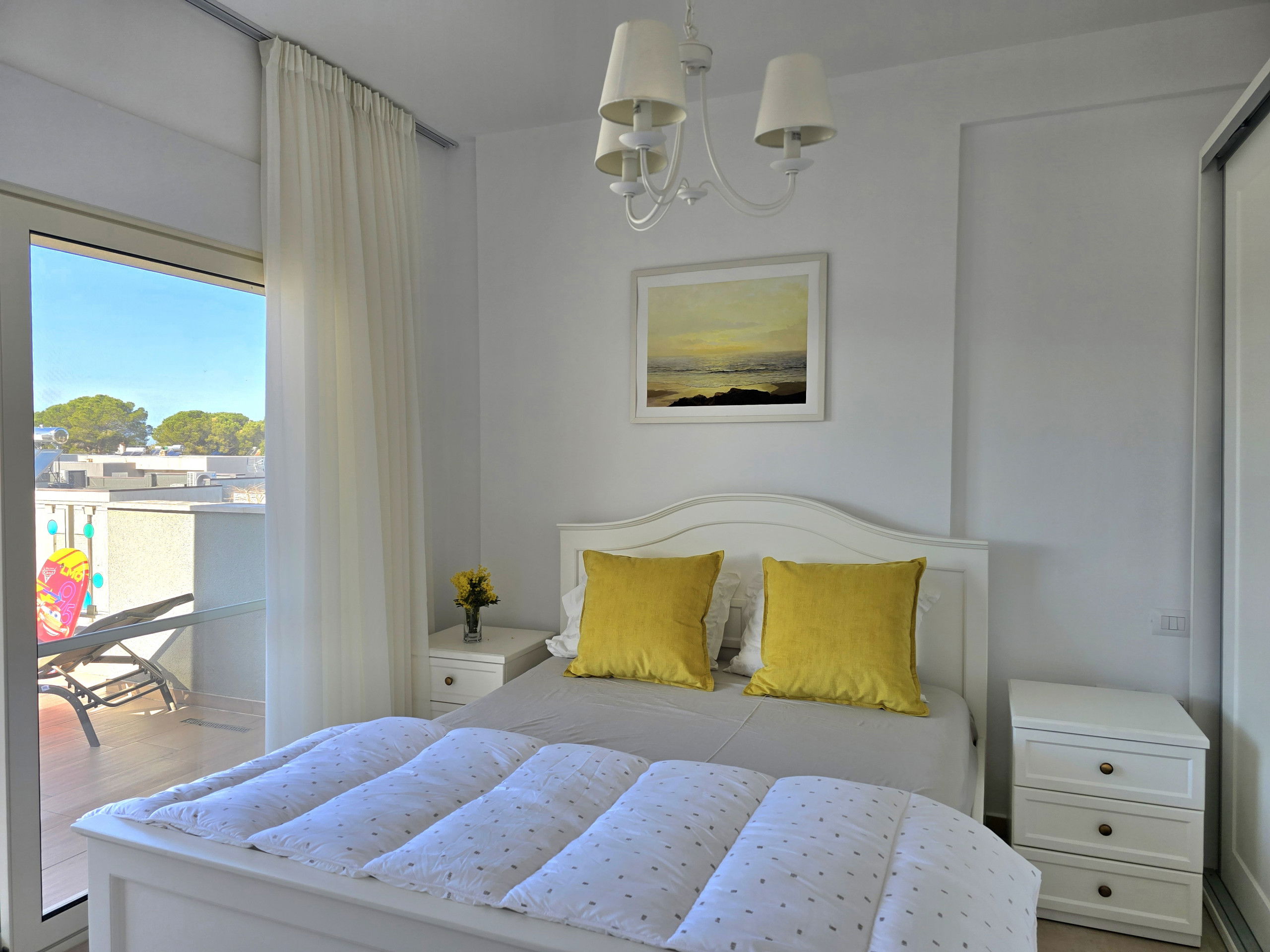 The penthouse is located in the beautiful Perla Resort, a gated residence with 24/7 surveillance and maintenance. It has a pool that can be used by our guests as well with an extra daily fee. The area around is quiet and offers a lot of services to make your holidays as best possible. There is a supermarket in the center of the complex called OK-Market. In front of the residences, there are green areas and a promenade to enjoy the evening walks. Along the promenade, there are different bars, restaurants, massage tents, playground for children, rental bicycles, etc.. The resort has sportive fields that may be used with prior reservation and an hourly fee.