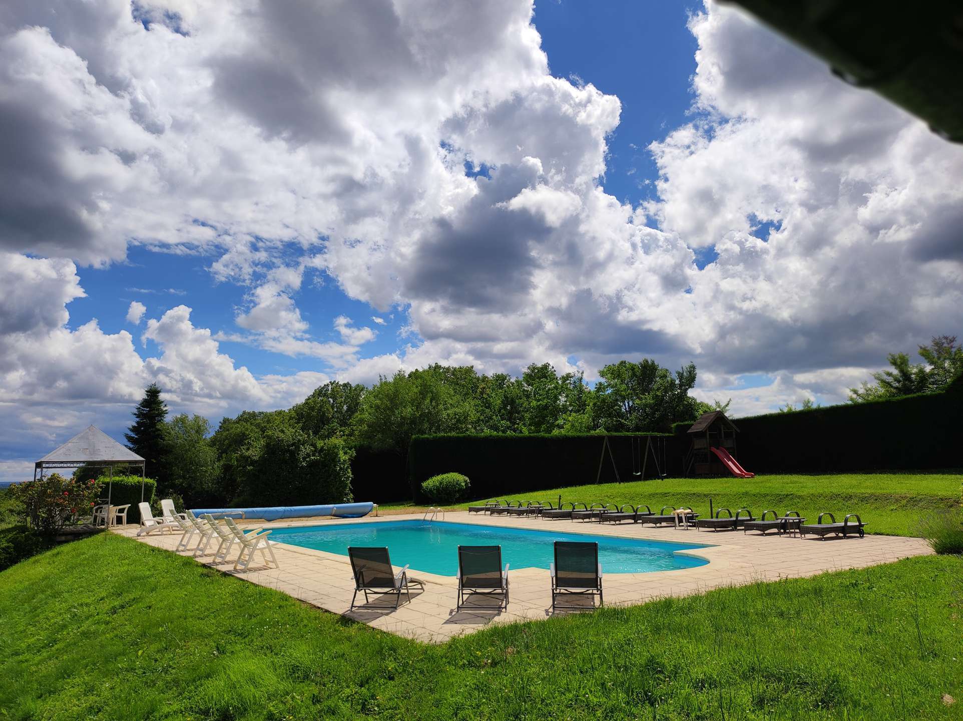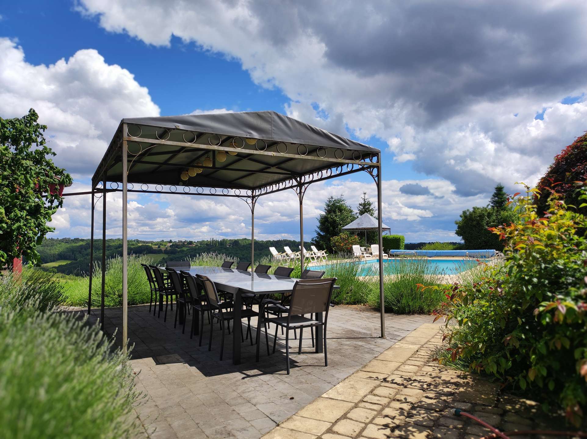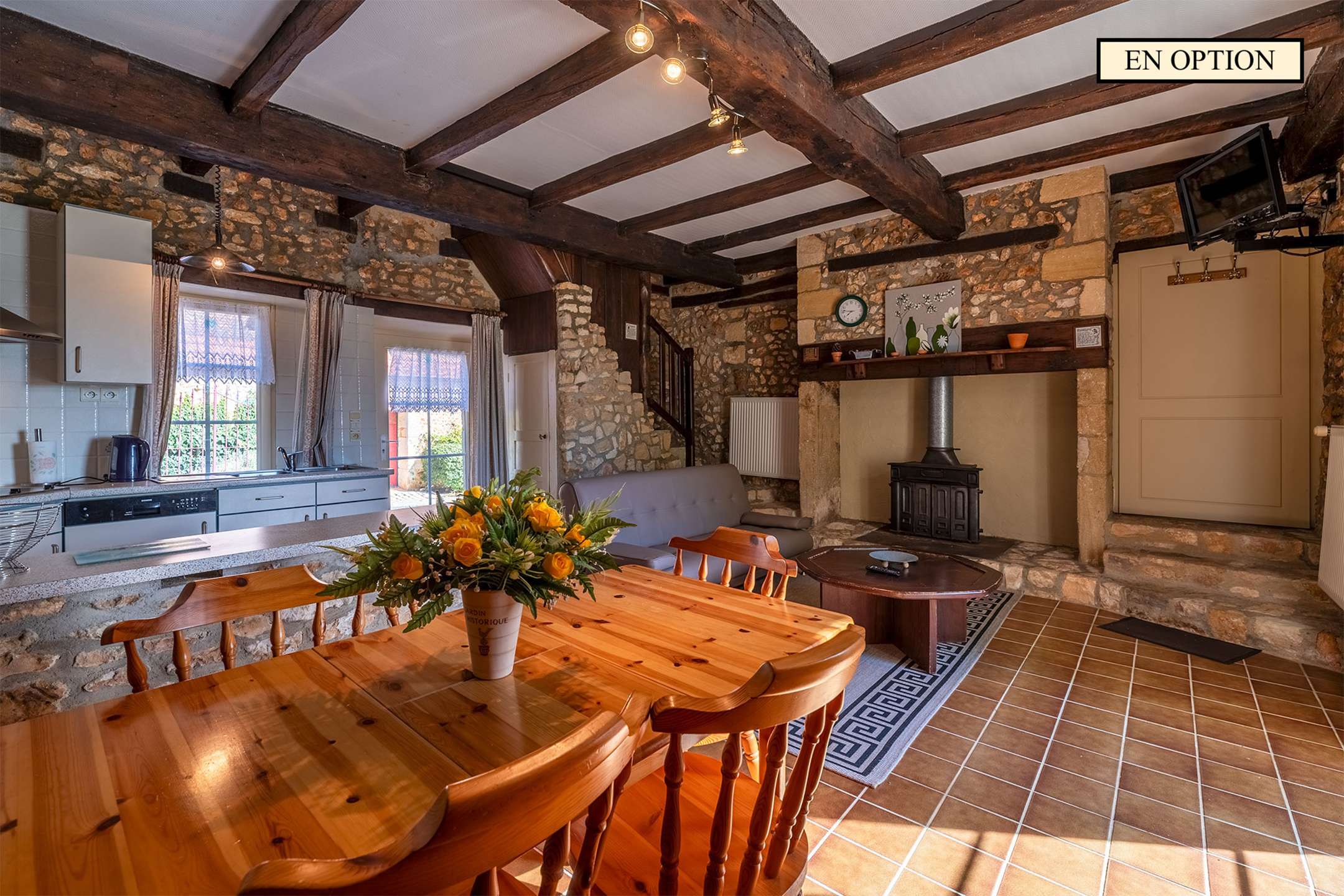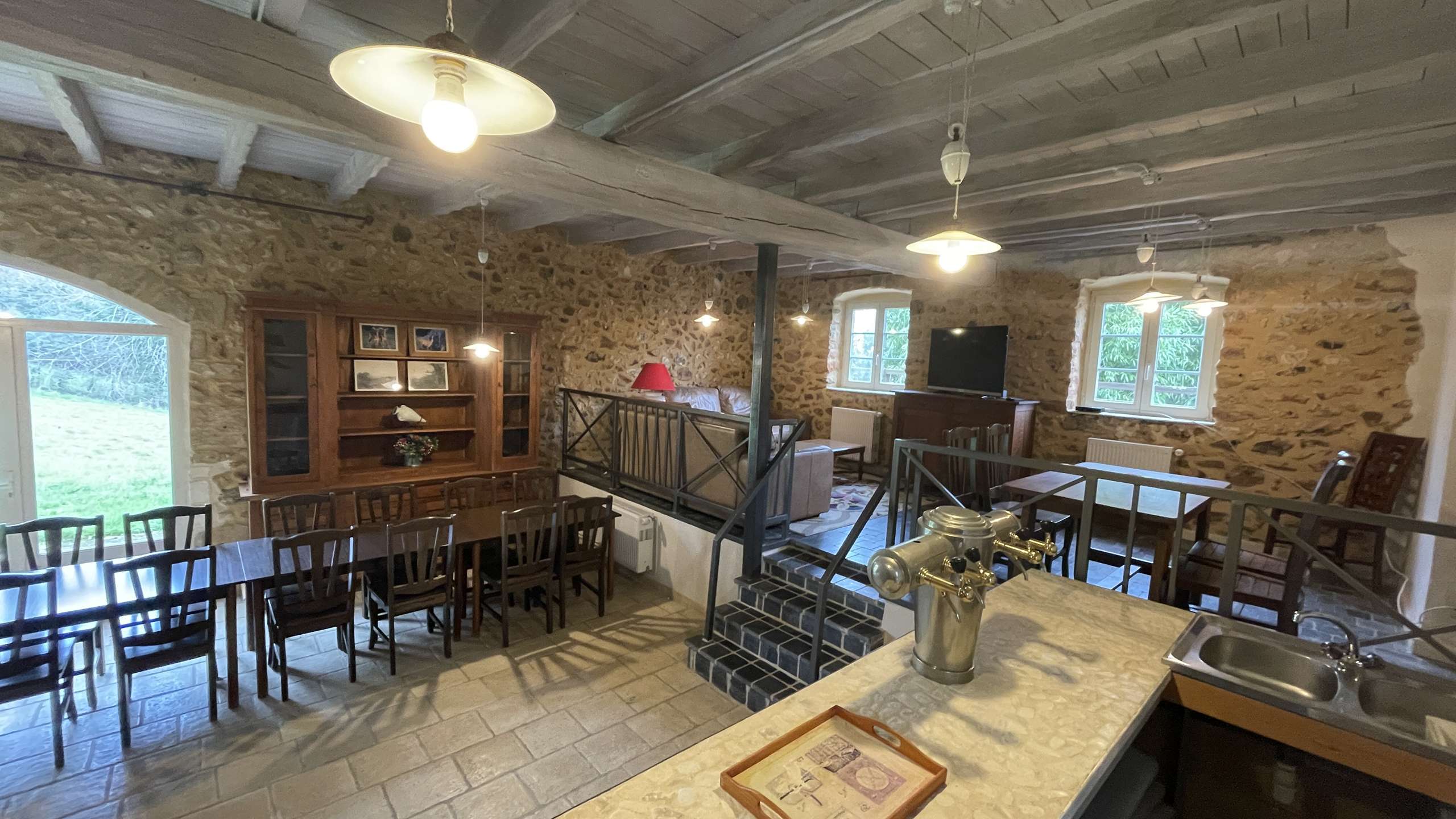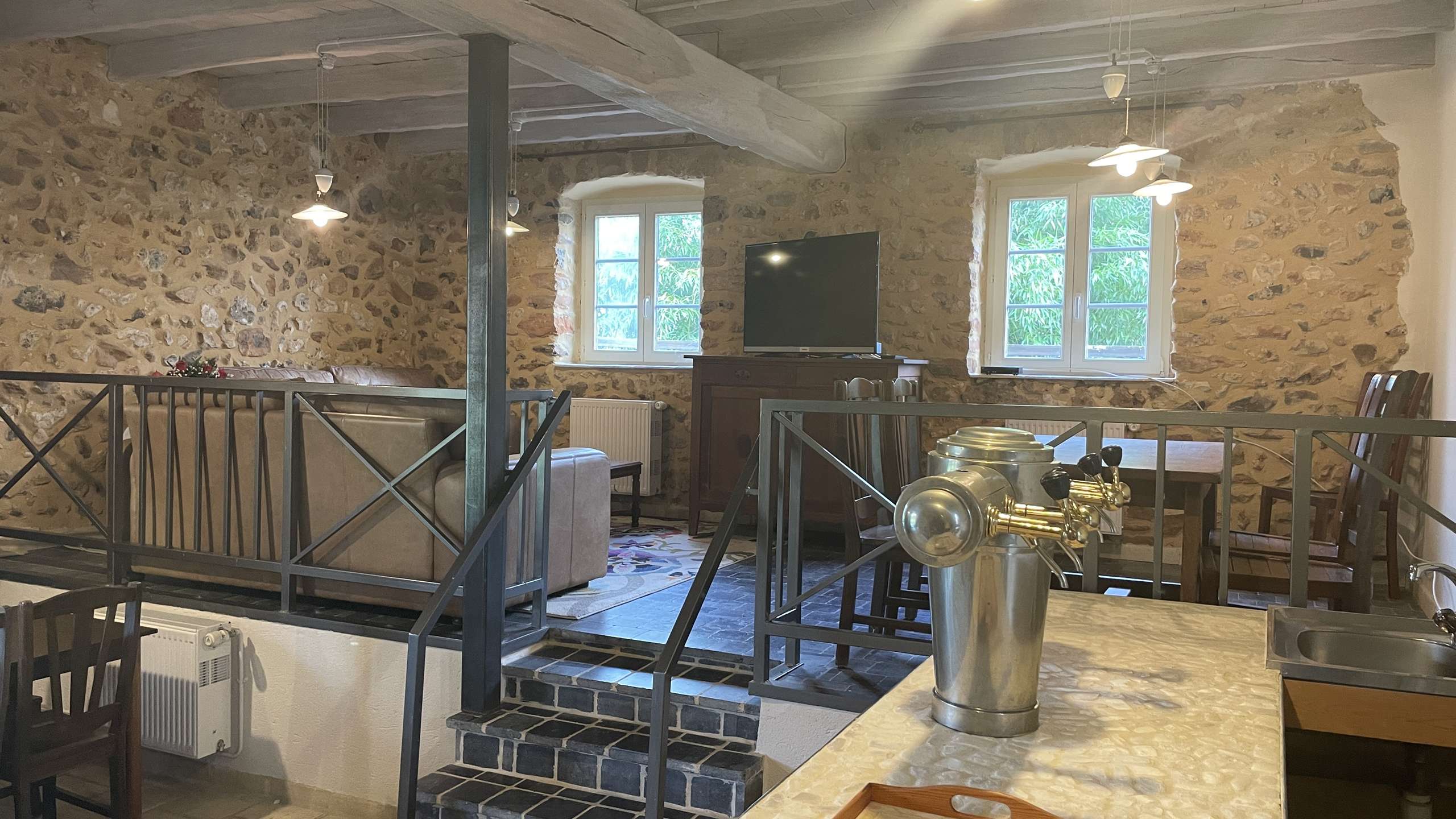 The main house has a fully-equipped kitchen with direct access to the dining room. From here, you have access to a veranda leading on one side to a balcony with magnificent views over the valley and, on the other, to the garden, swimming pool and shaded outdoor dining area.