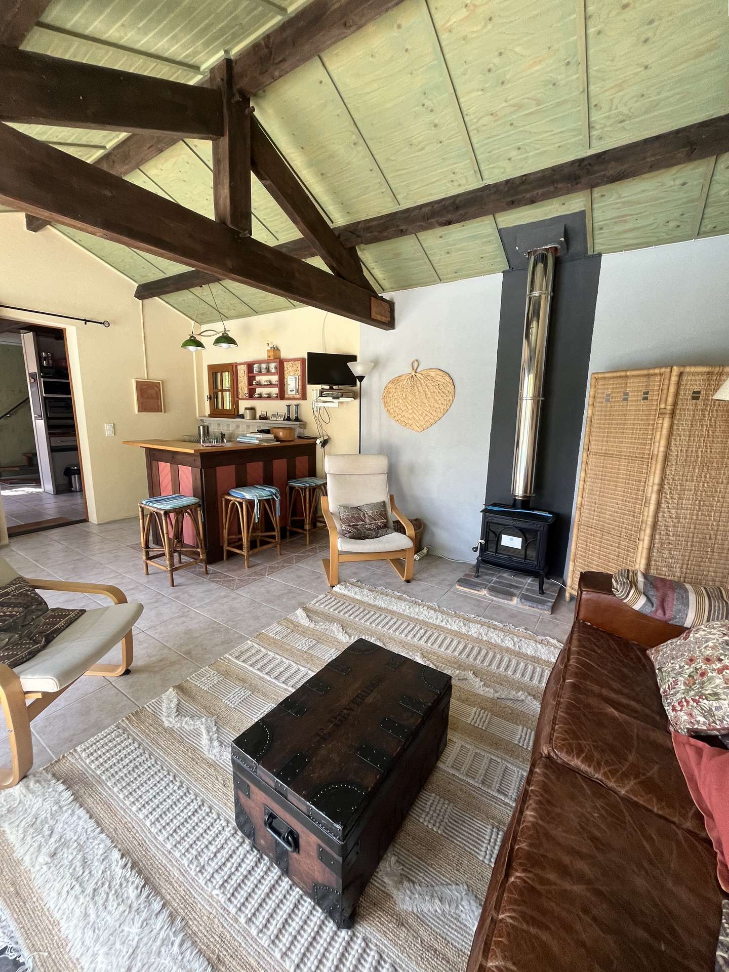 The front door opens onto a small equipped kitchen, which leads to a large, wonderfully bright living room with bar. A large bay window opens onto the swimming pool and terrace for your exclusive use.