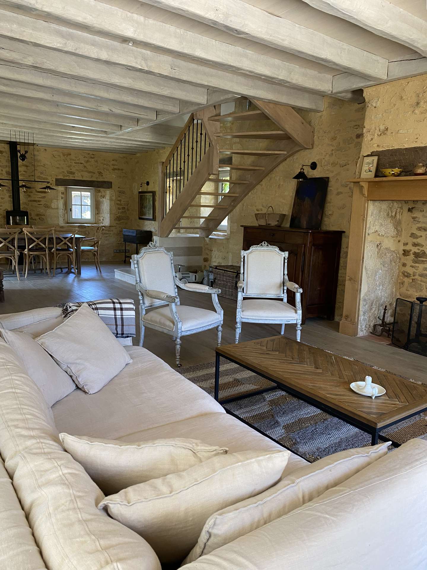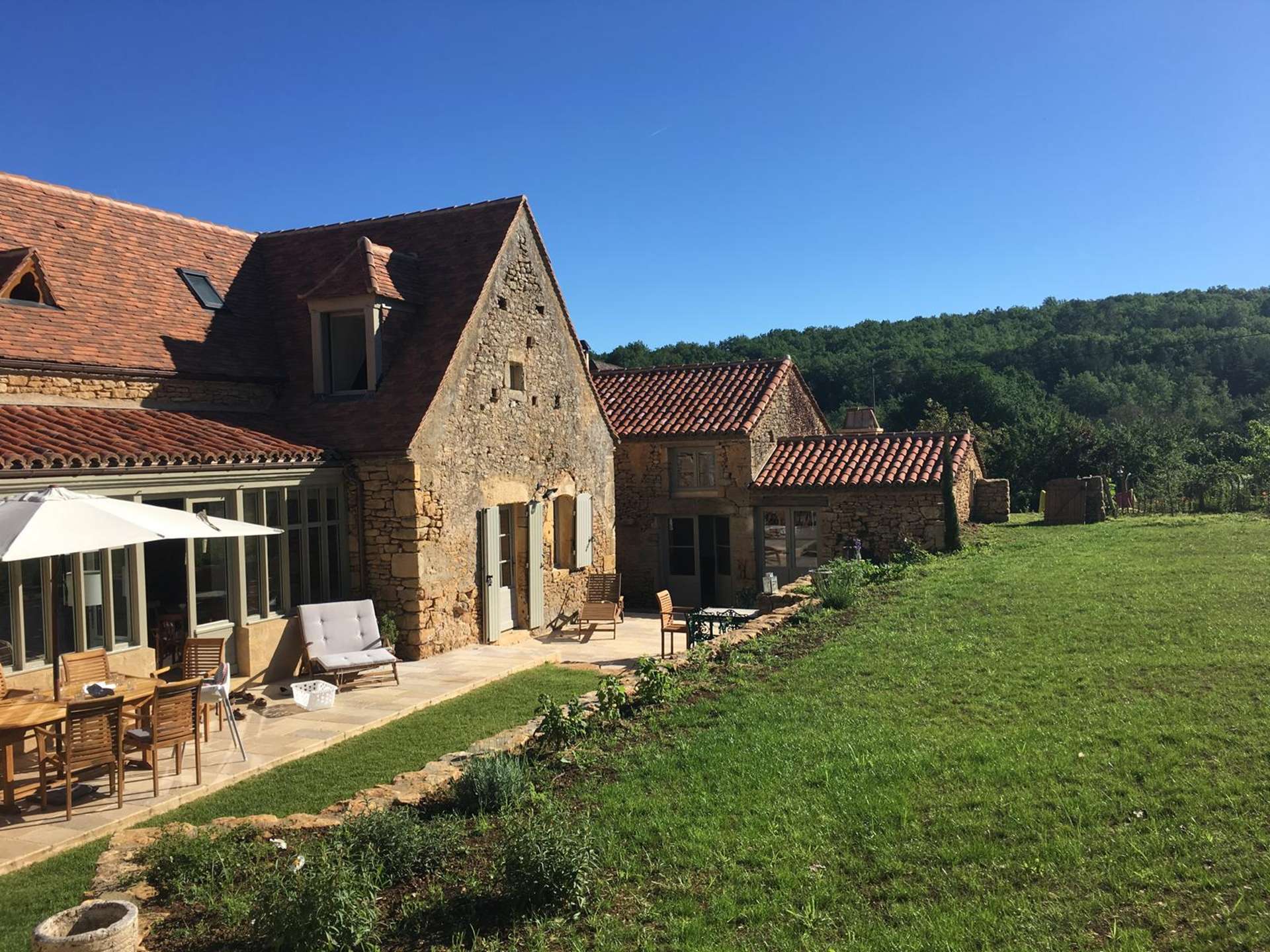 You can enjoy your summer meals on the terrace next to the kitchen or under the oak tree near the barn.