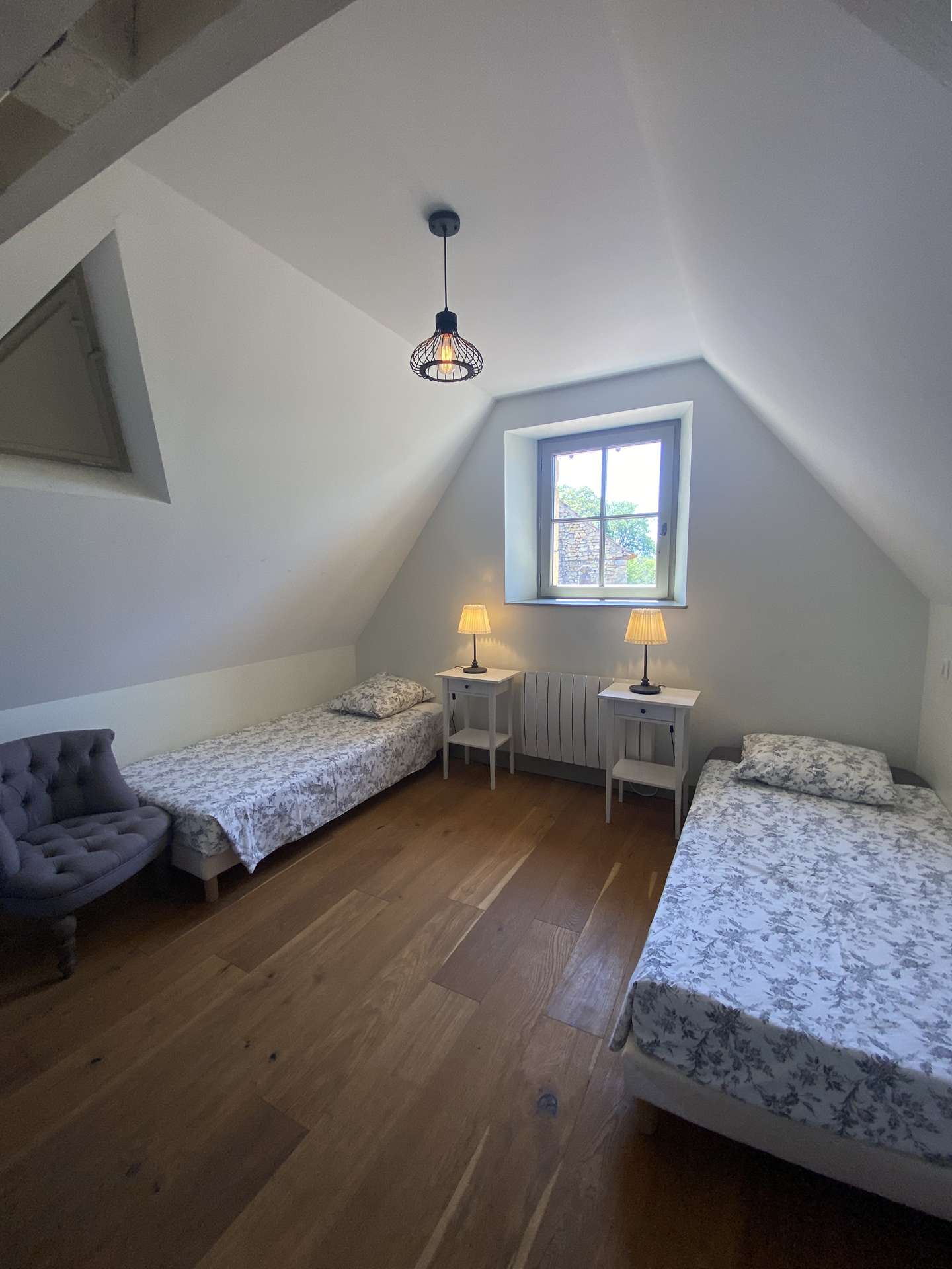 Finally, a last relaxation corner, under the shelter of the barn, awaits you with hammocks and a view to the West and its wooded hills .