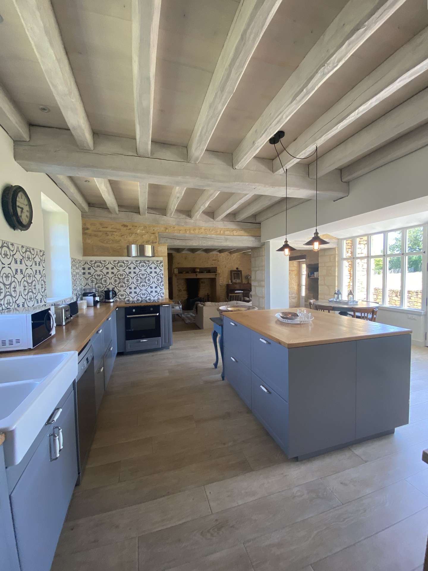 As you enter from the lane, the kitchen is on your left. With its large bay window and French doors, the kitchen has direct access to the south-facing garden and the living room with its lounge and dining area.