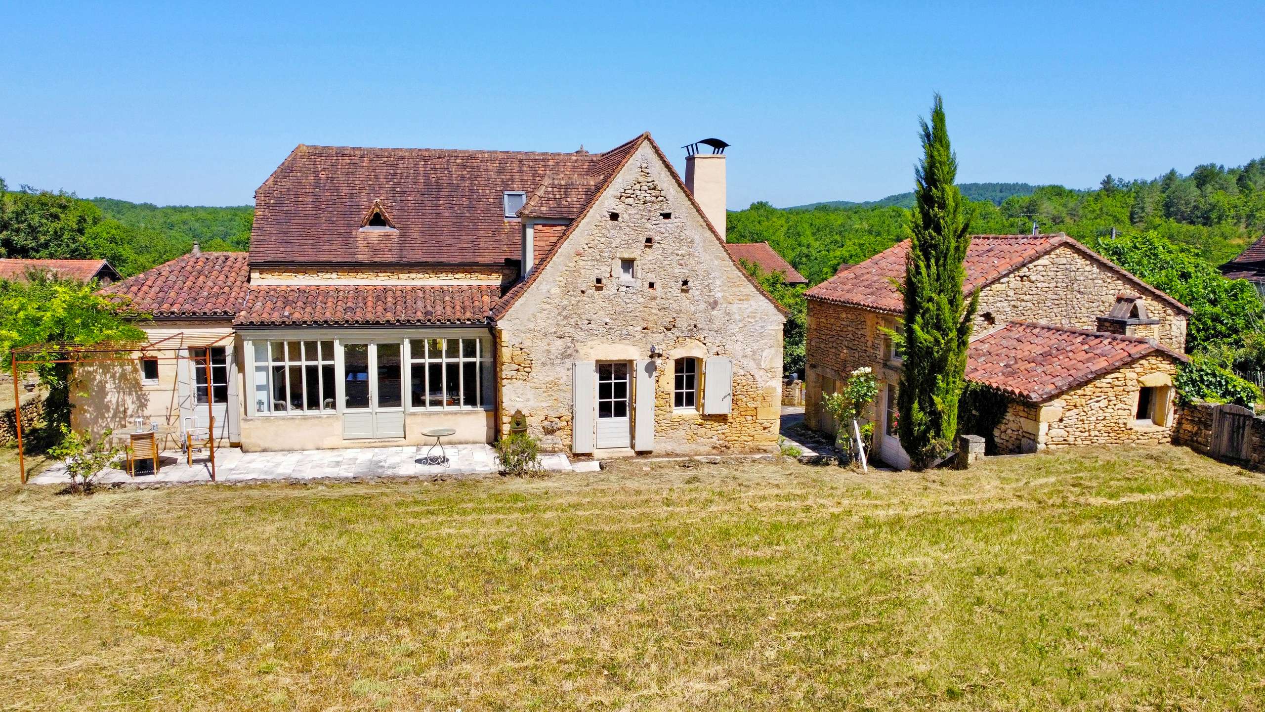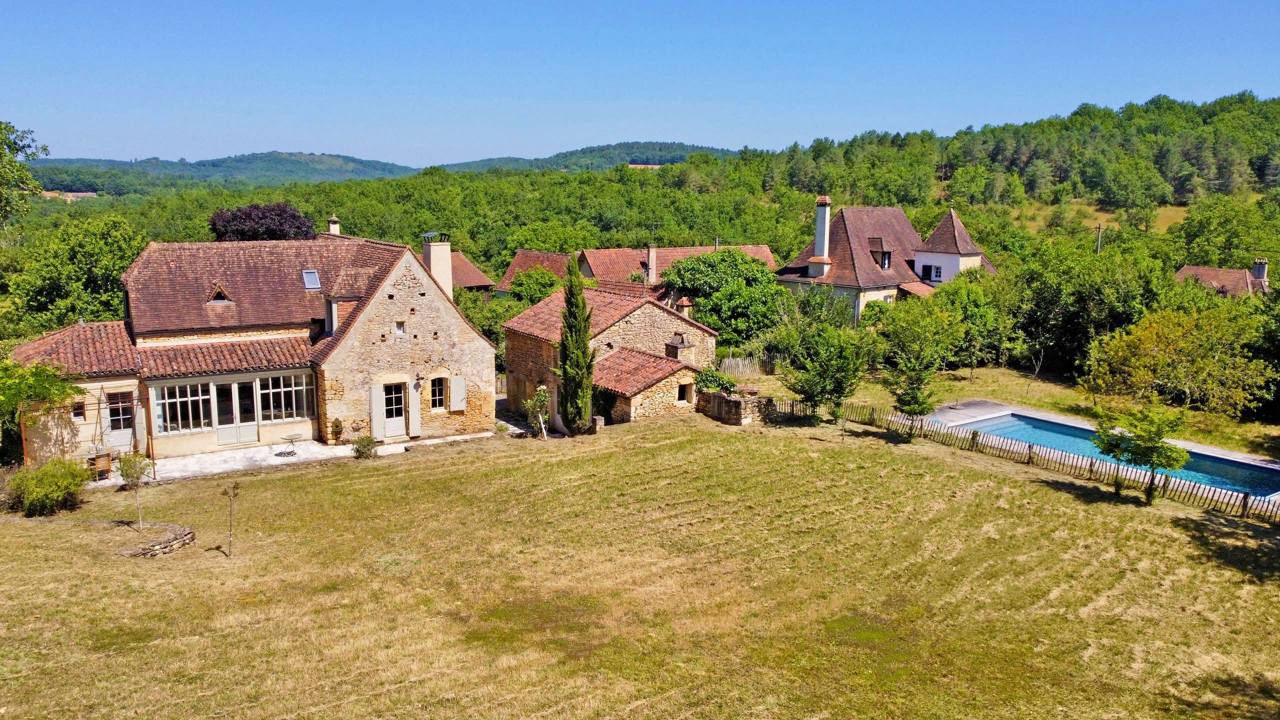 Completely renovated stone house, located 2 km from the market town of Trémolat, with private swimming pool and pretty outside garden, sleeping up to six people .