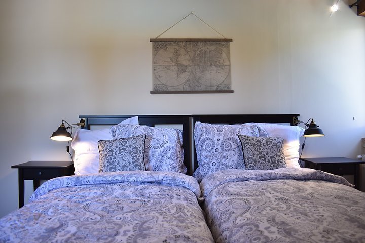 From the living room, a solid wood staircase leads to the floor, where there are three large bedrooms: two doubles and one twin.