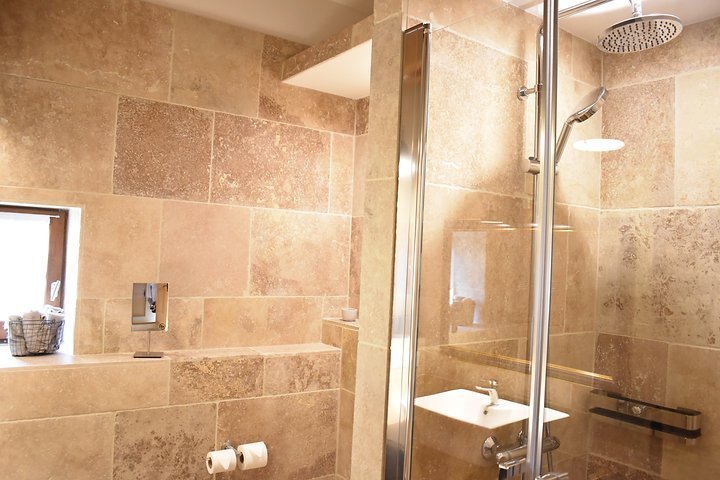 On this floor, there is also a shower room with a large walk-in shower, toilet and washbasin.