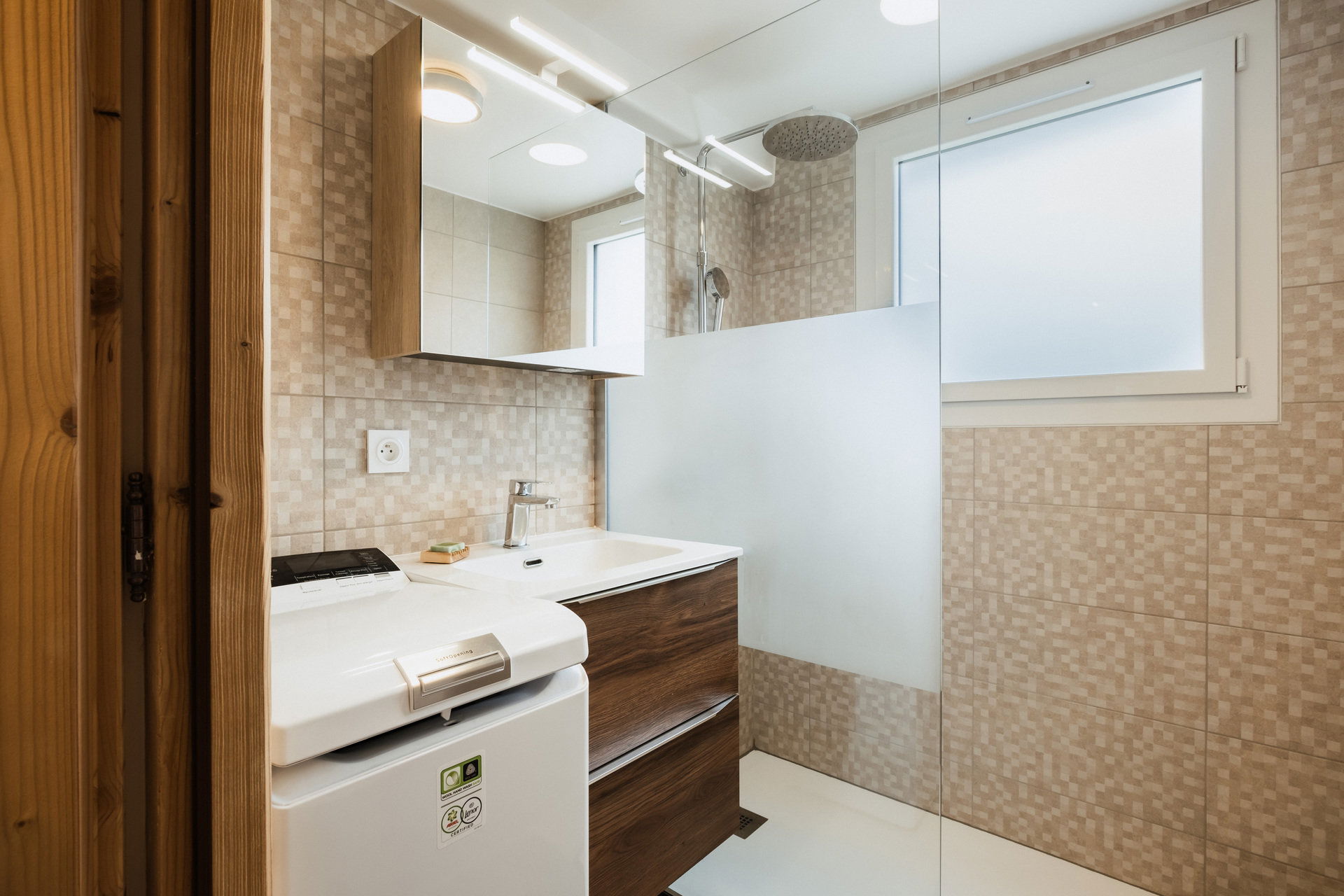 - BEDROOM (9.58m²) : 1 DOUBLE BED (160), west facing window, nextdoor residences / mountains view, adjoining shower room (1.25m²) : washbasin, shower.