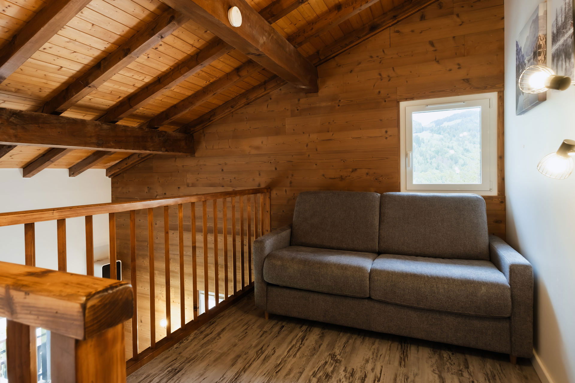 - Open MEZZANINE (6.86m²): overlooking the living room : 1 DOUBLE SOFA BED RAPIDO (140), small west facing winfdow, nextdoor residences / mountains view