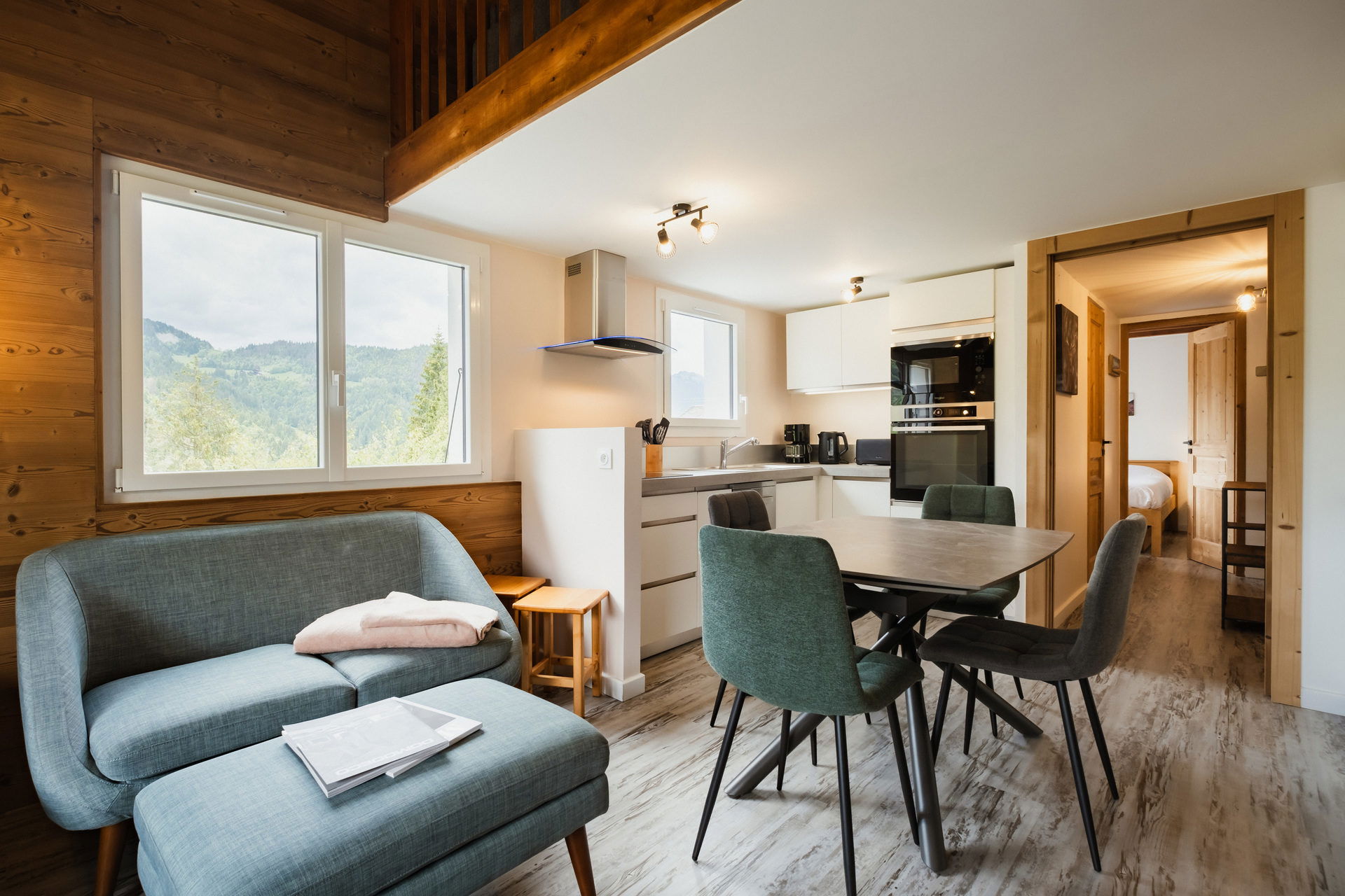 Residence located in a quiet area, in the ARAVIS valley, at 1.8 km from the village and at 600 m from LA RUADE slopes. View on L'ETALE mountain. Bus stop at 160 m.