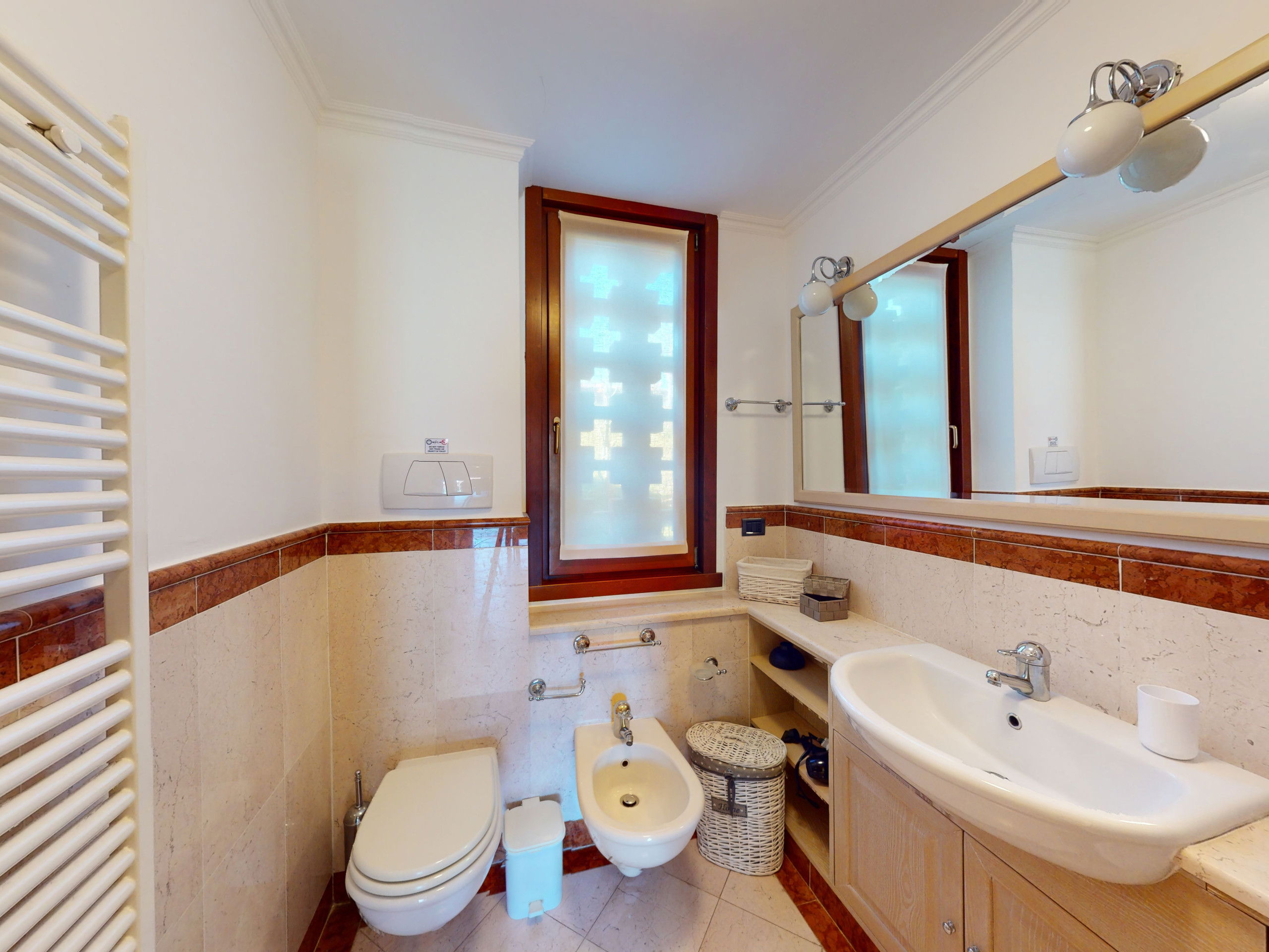Outside, the private garden is a small paradise of tranquillity, furnished with outdoor furniture and a barbecue fireplace, it is ideal for relaxing or organising pleasant outdoor barbecues.