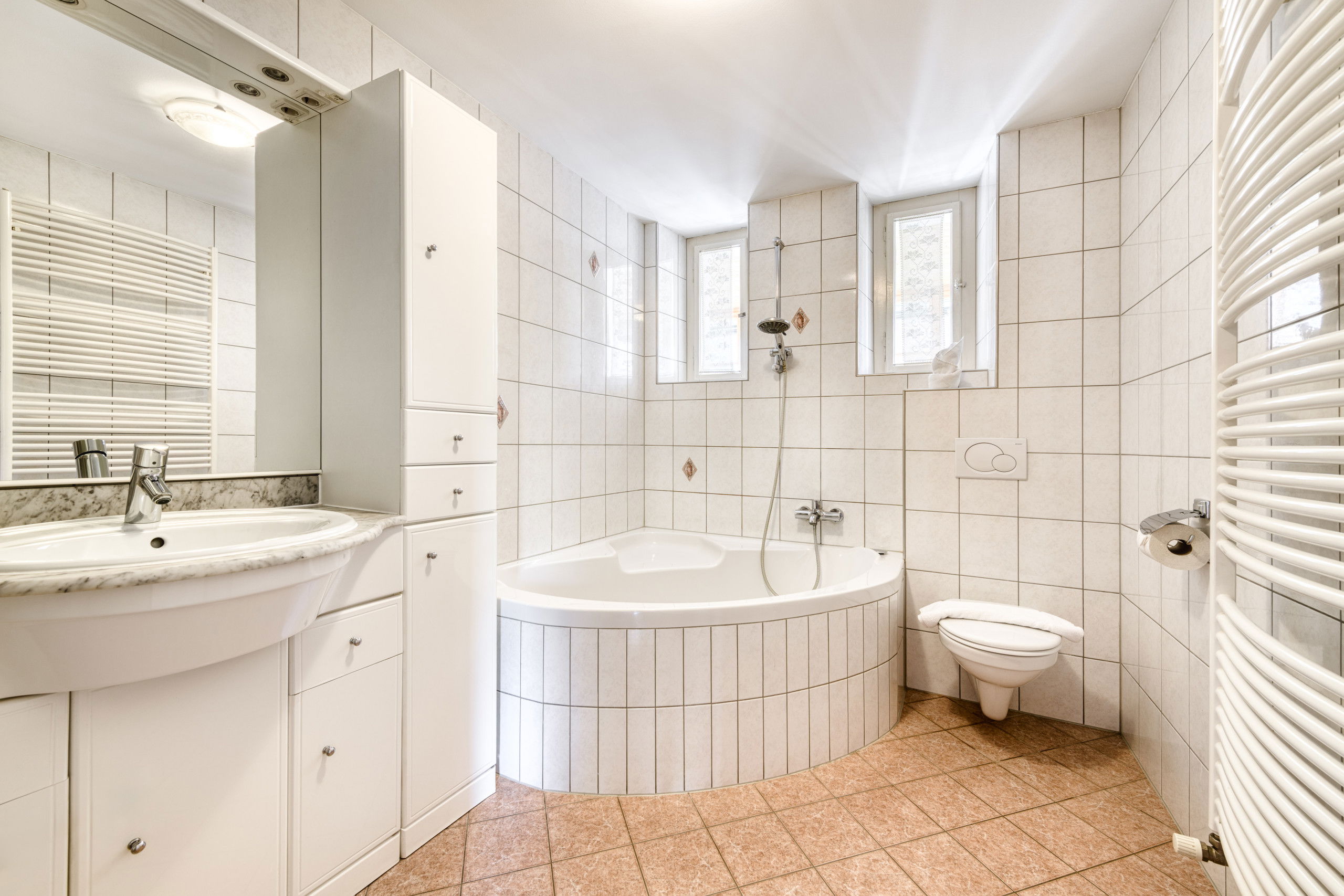 The fully equipped kitchen leaves nothing to be desired, featuring a dishwasher, oven, microwave, fridge with freezer compartment, toaster, and coffee machines for both filter coffee and Tchibo capsules – perfect for culinary indulgence. The bathroom offers pure relaxation with a bathtub including an integrated shower, a heated towel rack, and a hairdryer.