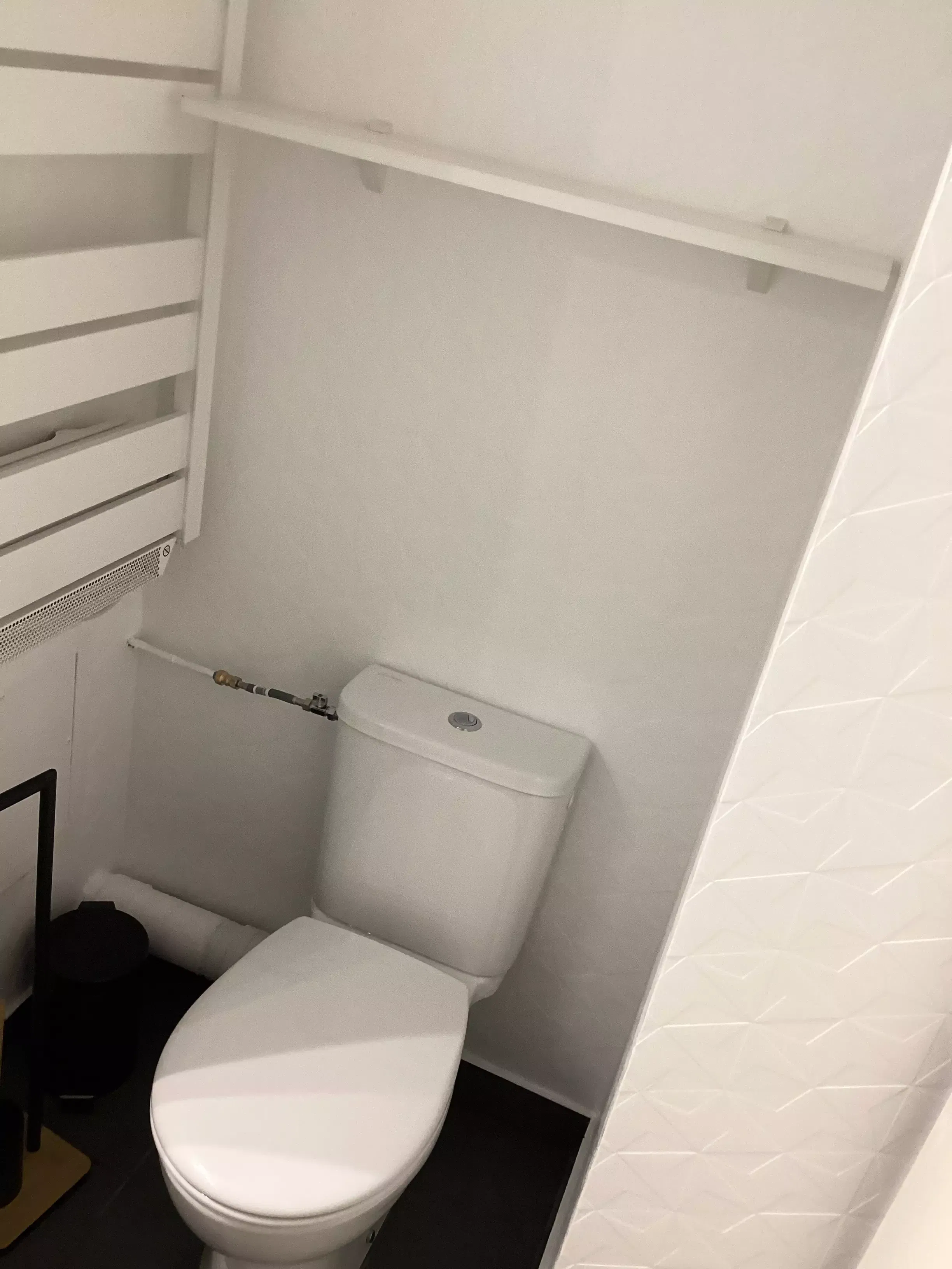 1 living room, 1 kitchen area, 1 cabin area, 1 bathroom, 1 WC, 1 balcony and 1 parking space.