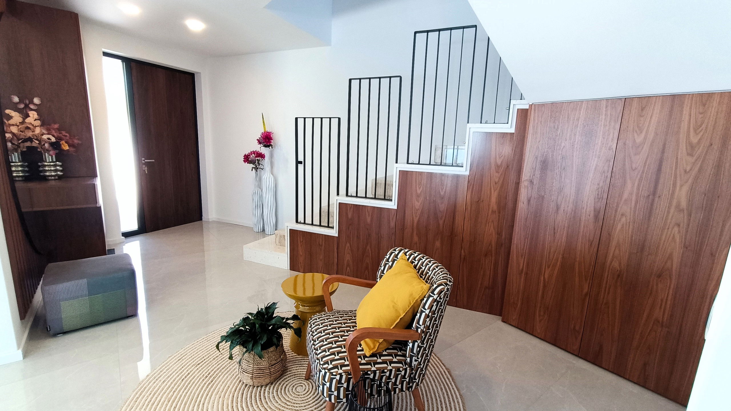 On the ground floor, you will also find the anteroom with a cloakroom and mirror, a guest bathroom, as well as a room with a washing machine and cleaning utensils.