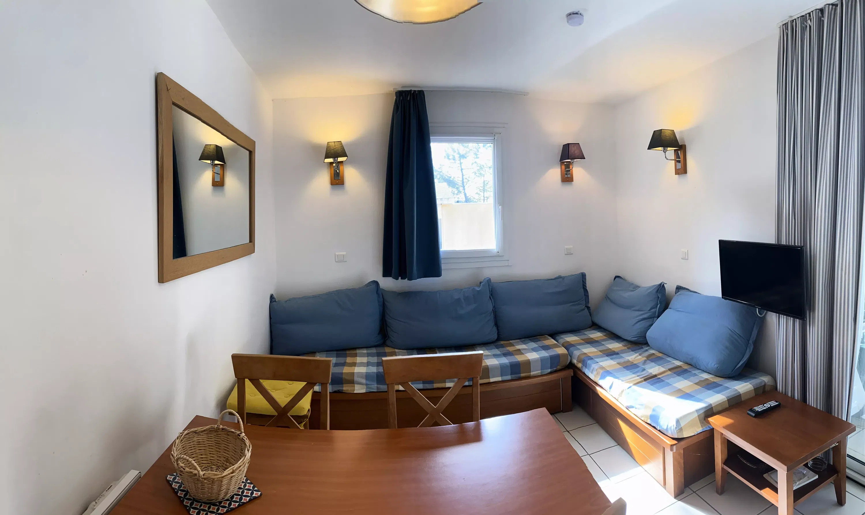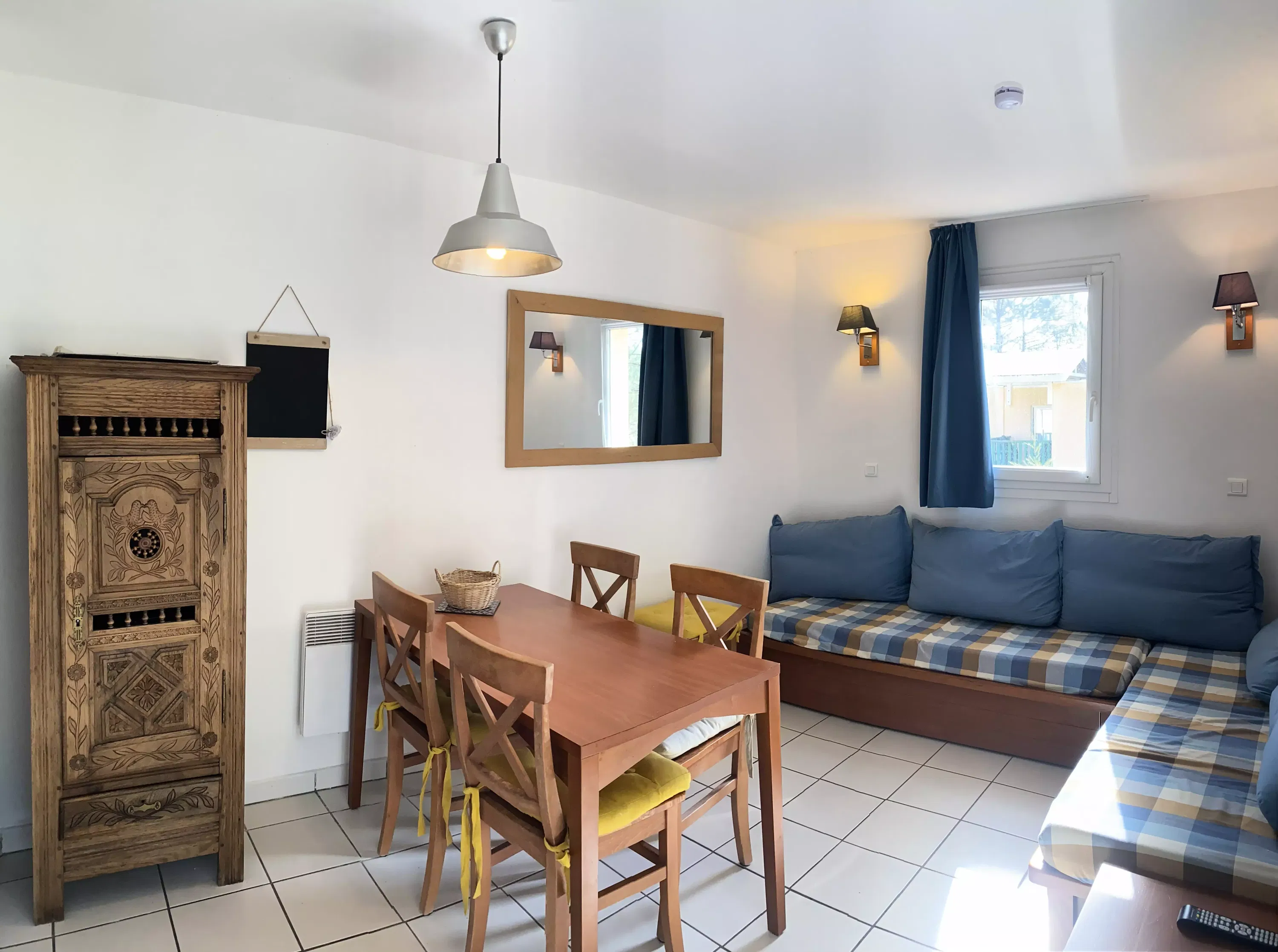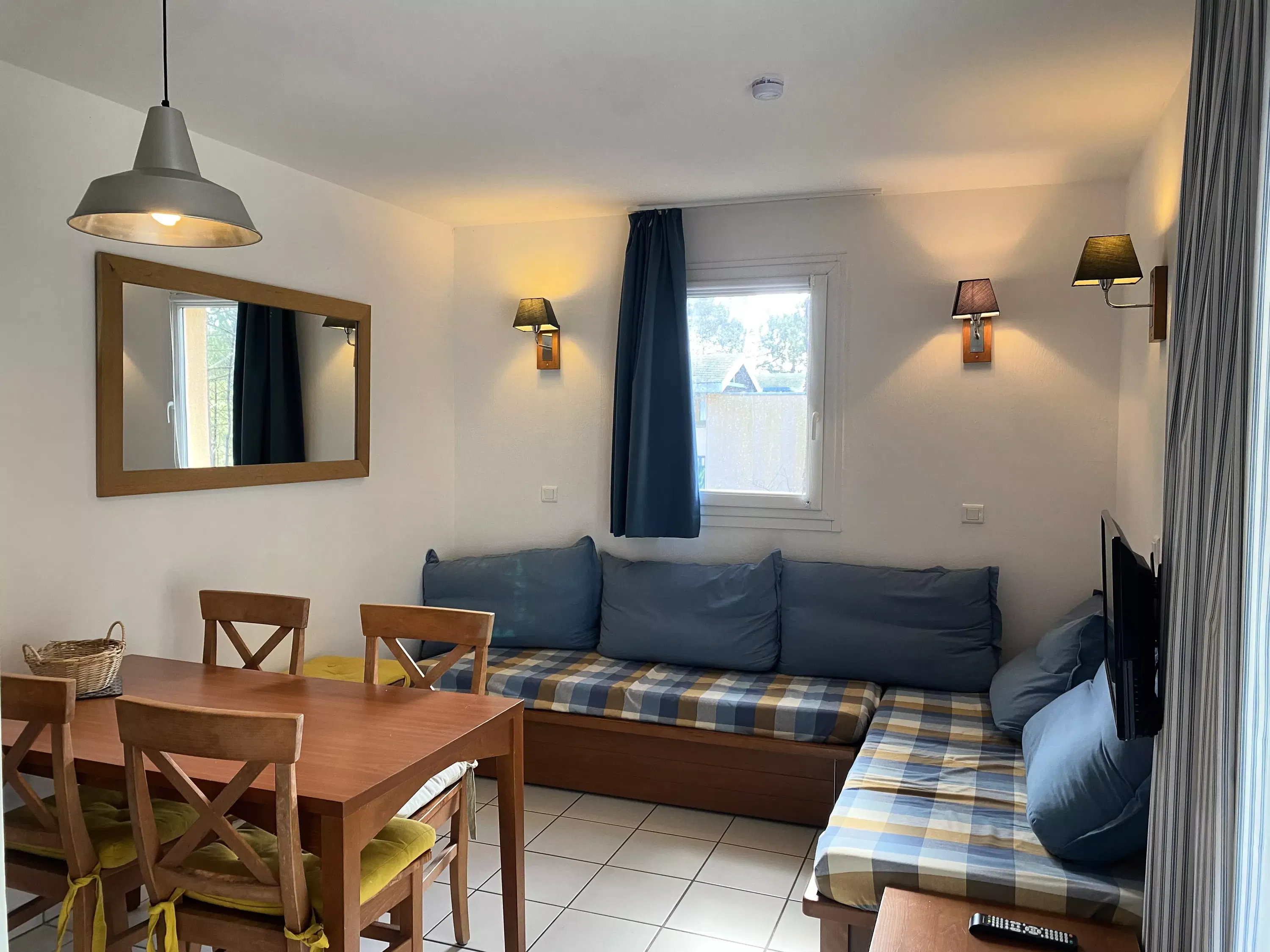 Living room facilities: 2 sofa beds. Dining area: a table with 5 chairs.