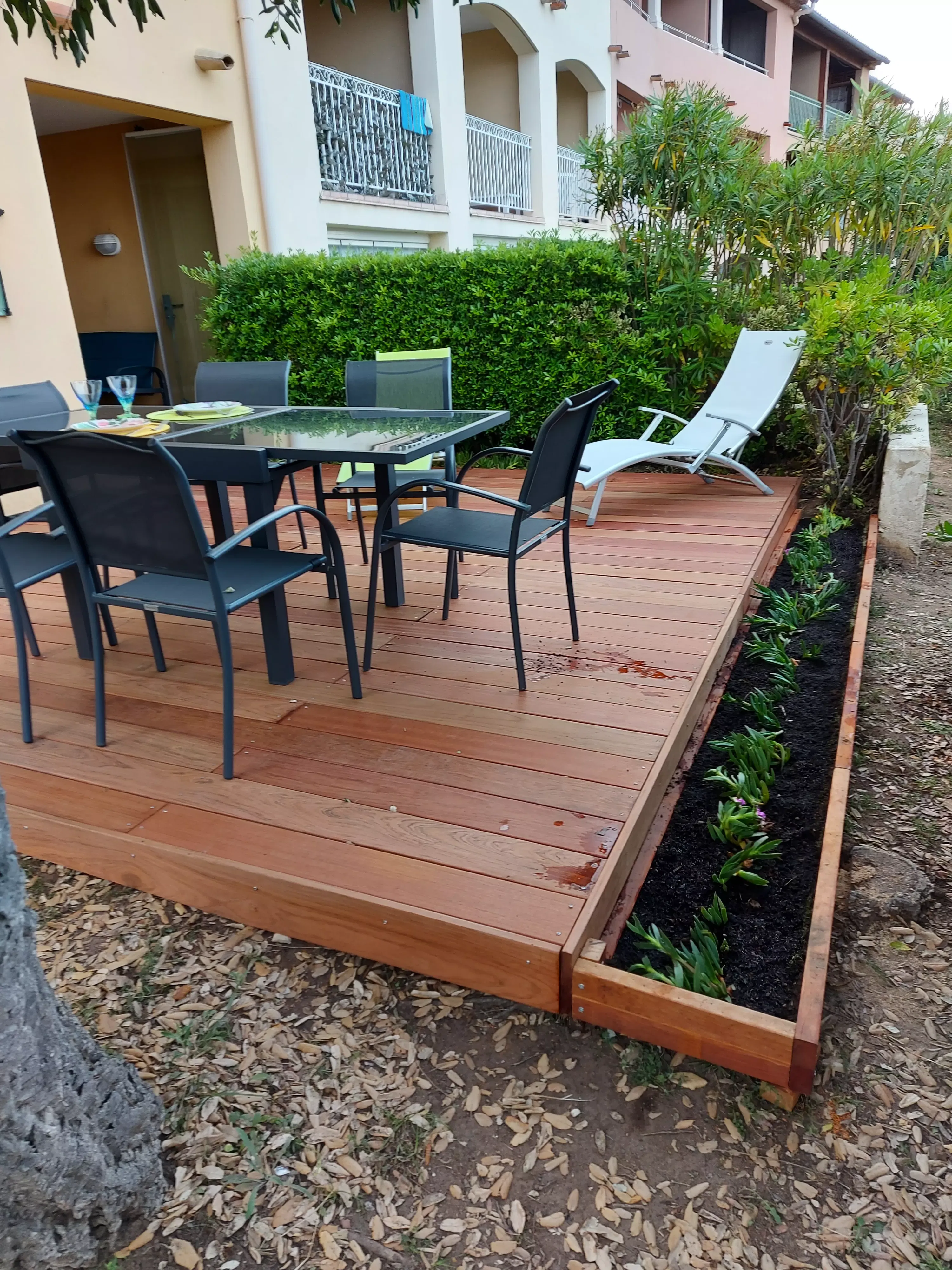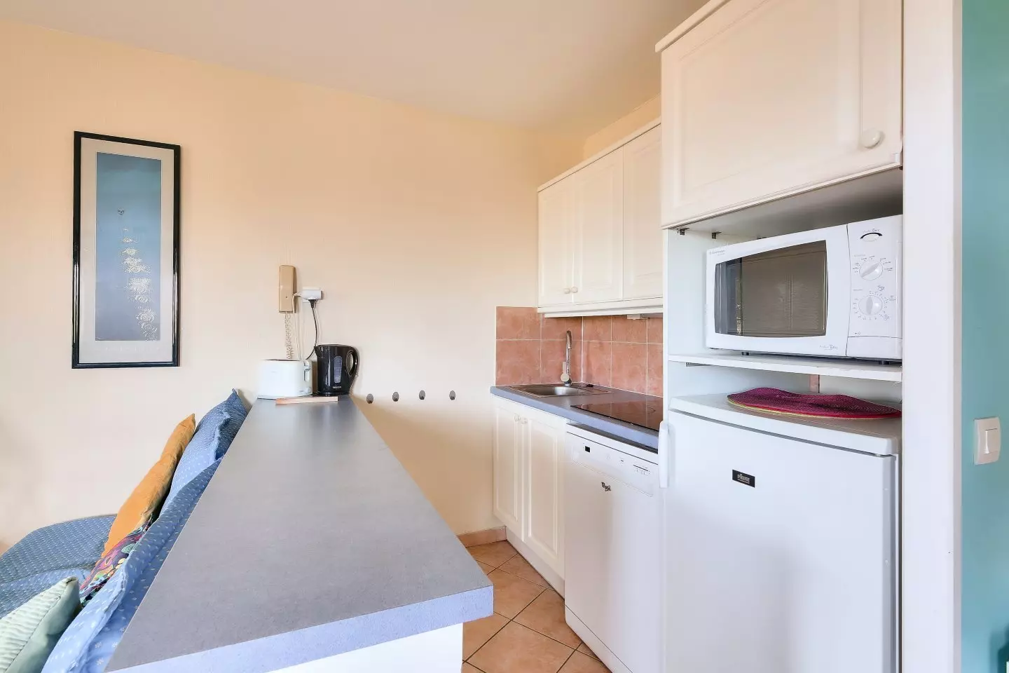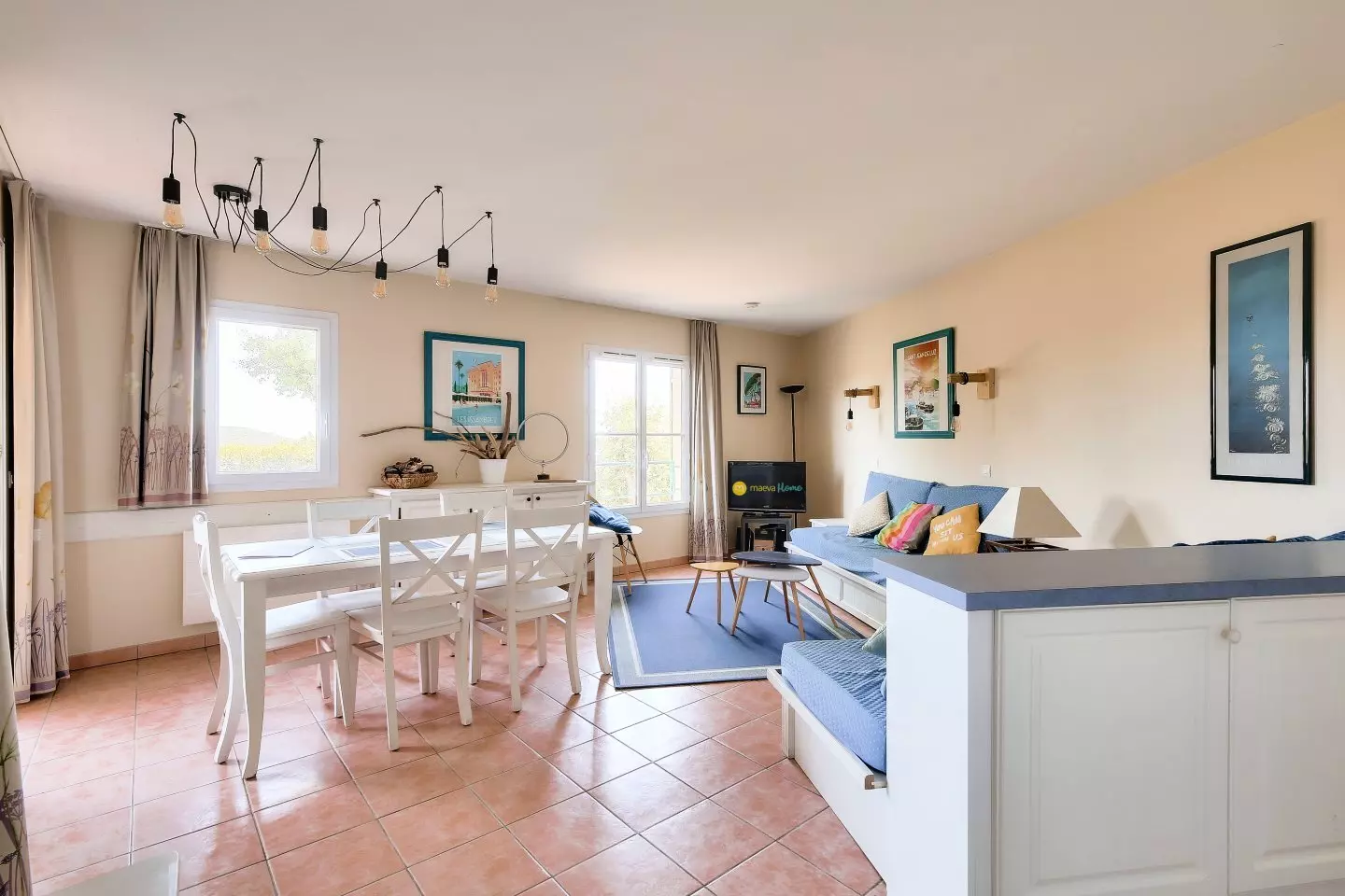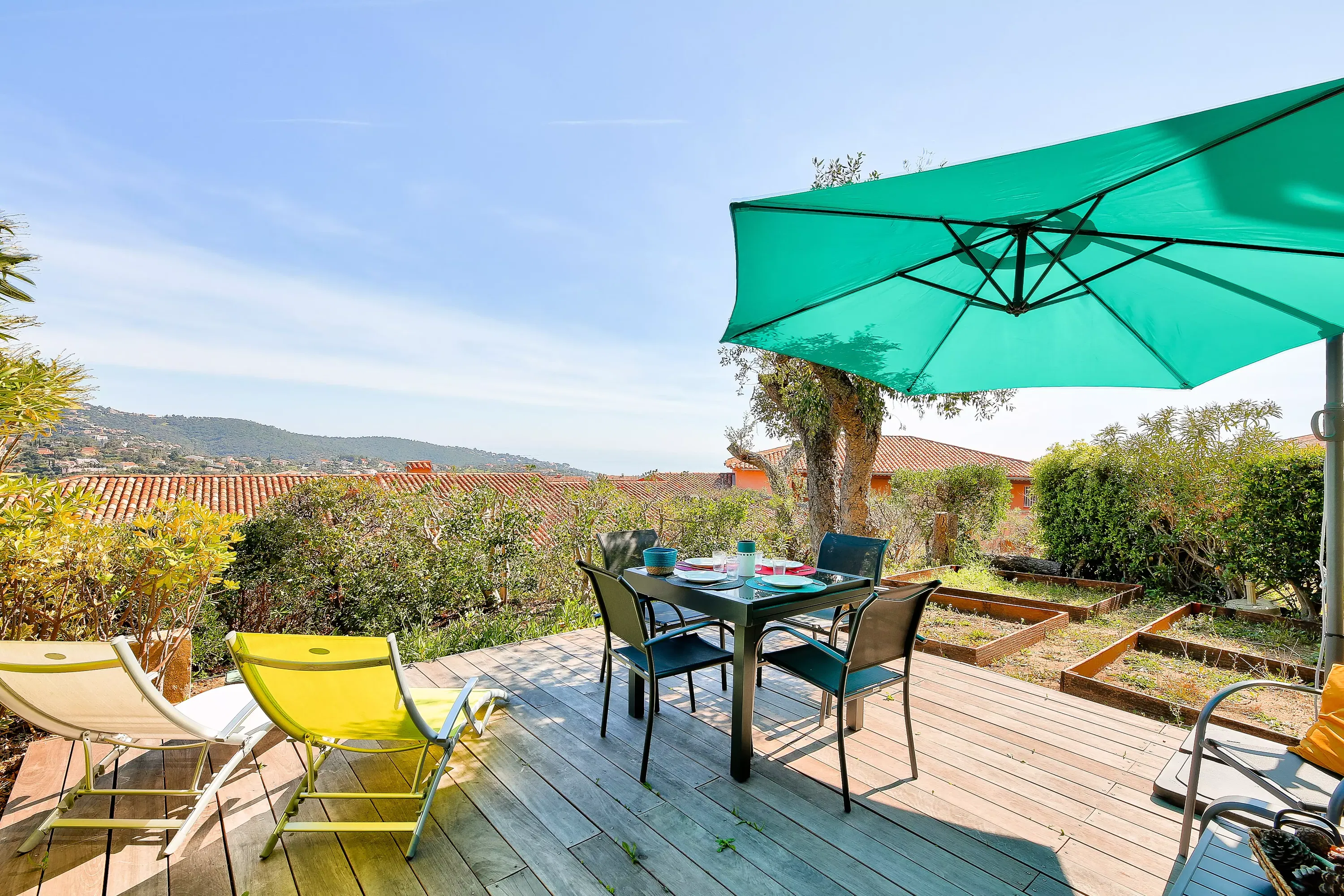 The advantages of this accommodation: air-conditioned ground floor apartment, small garden, covered furnished terrace, sea and garden view, reserved parking space, storage, TV.
