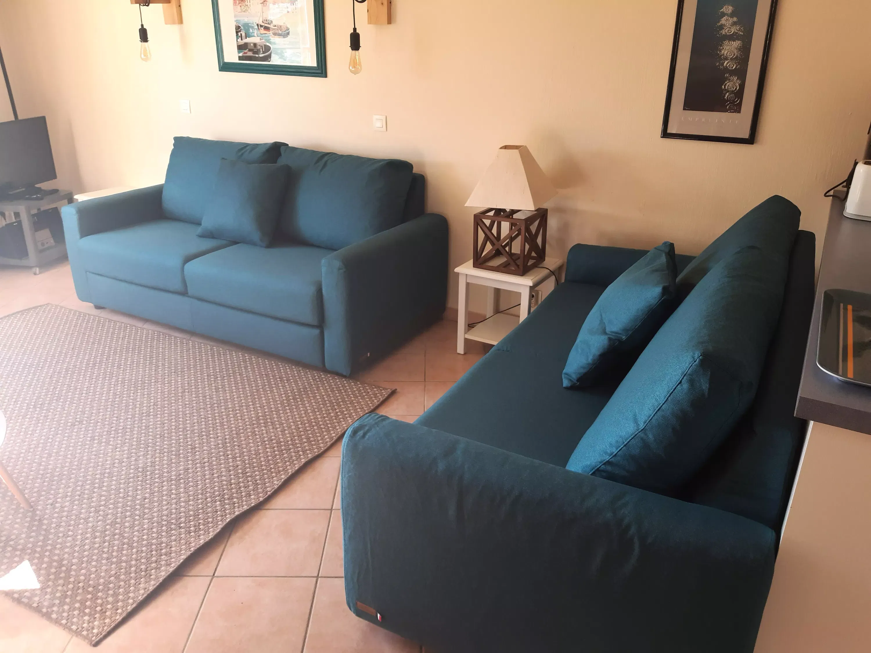 Living room facilities: 2 sofa beds and 1 pull-out bed. (new gray sofa bed)