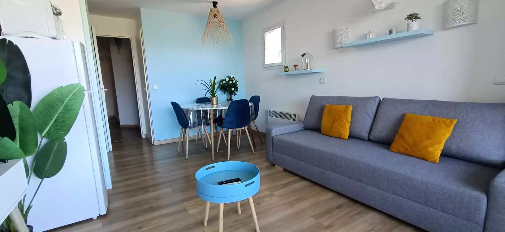 The advantages of your super Home rental: Your vacation rental for 4 people is located in the village center, close to shops and activities. The accommodation faces south and benefits from a loggia with a beautiful open view of the plain. Enjoy a neat and elegantly decorated apartment for your vacation.