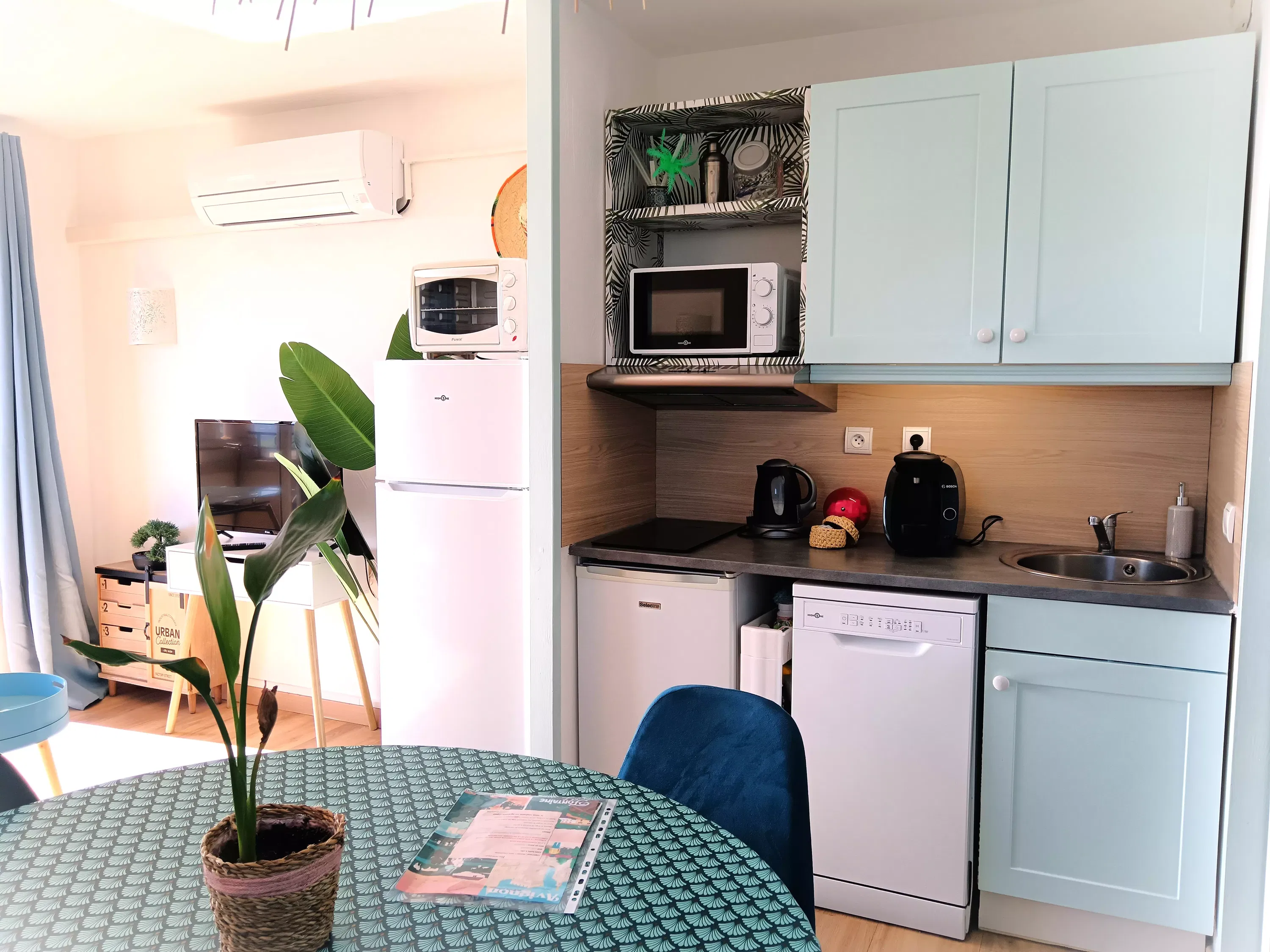 Your vacation rental includes: 1 comfortable living room decorated with care, 1 equipped kitchen, 1 pretty refined bedroom, 1 bathroom, 1 separate WC, 1 loggia with open views and 1 parking space.