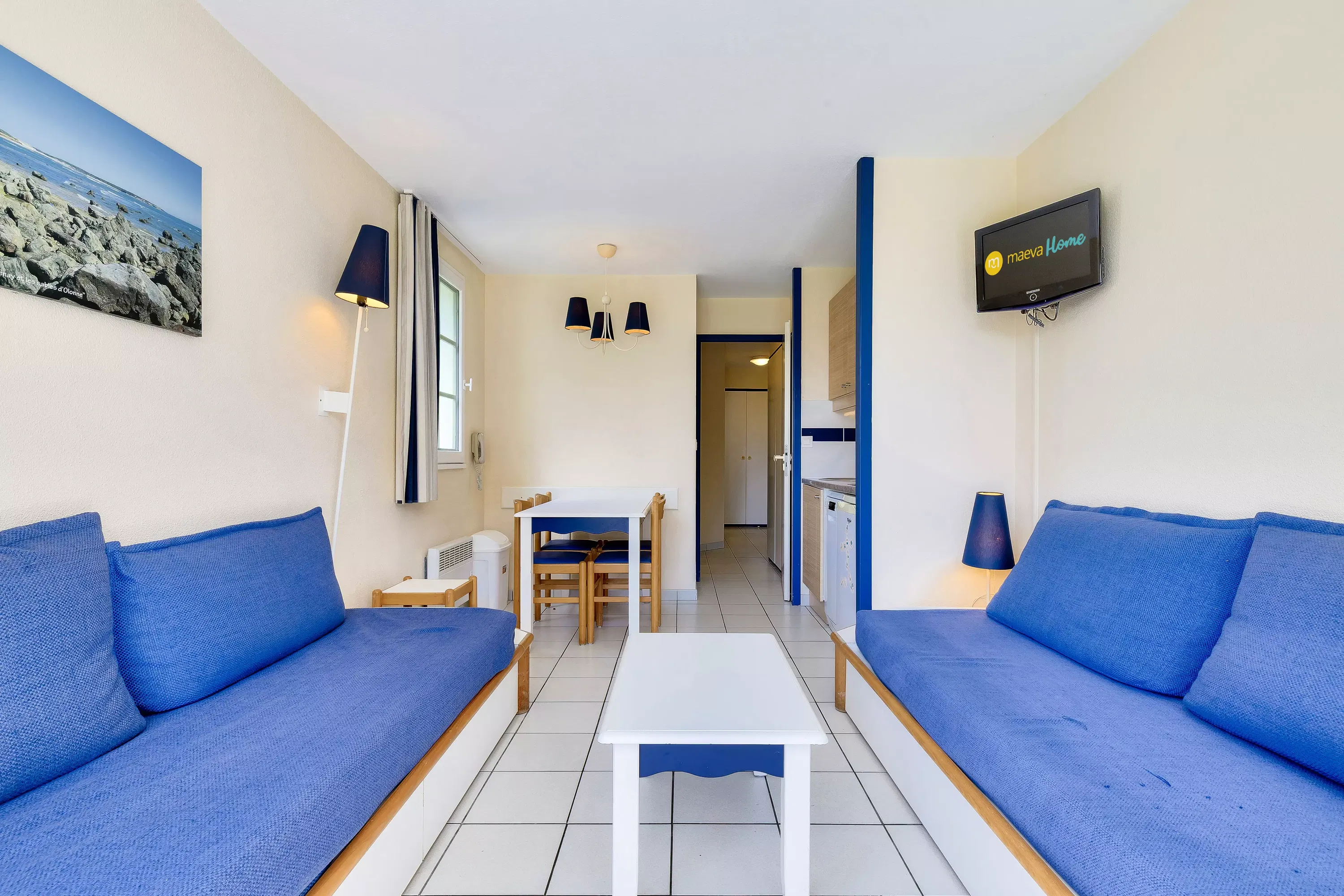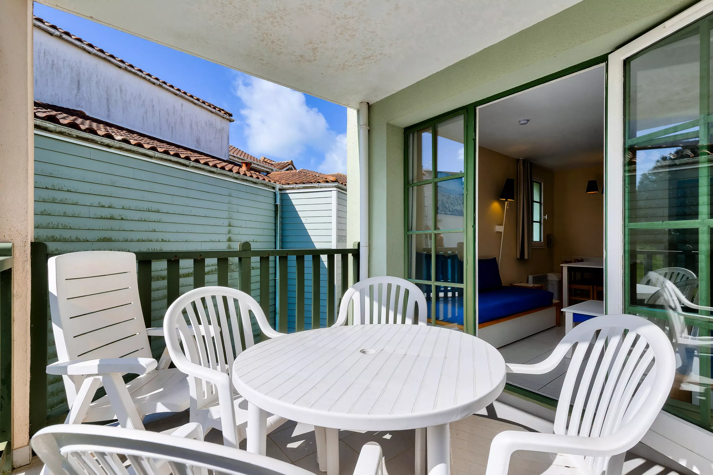 The advantages of this accommodation: apartment with access to the residence's swimming pool, furnished balcony facing south-east, pretty view of the Port-Bourgenay golf course and its small lake, plenty of storage space.