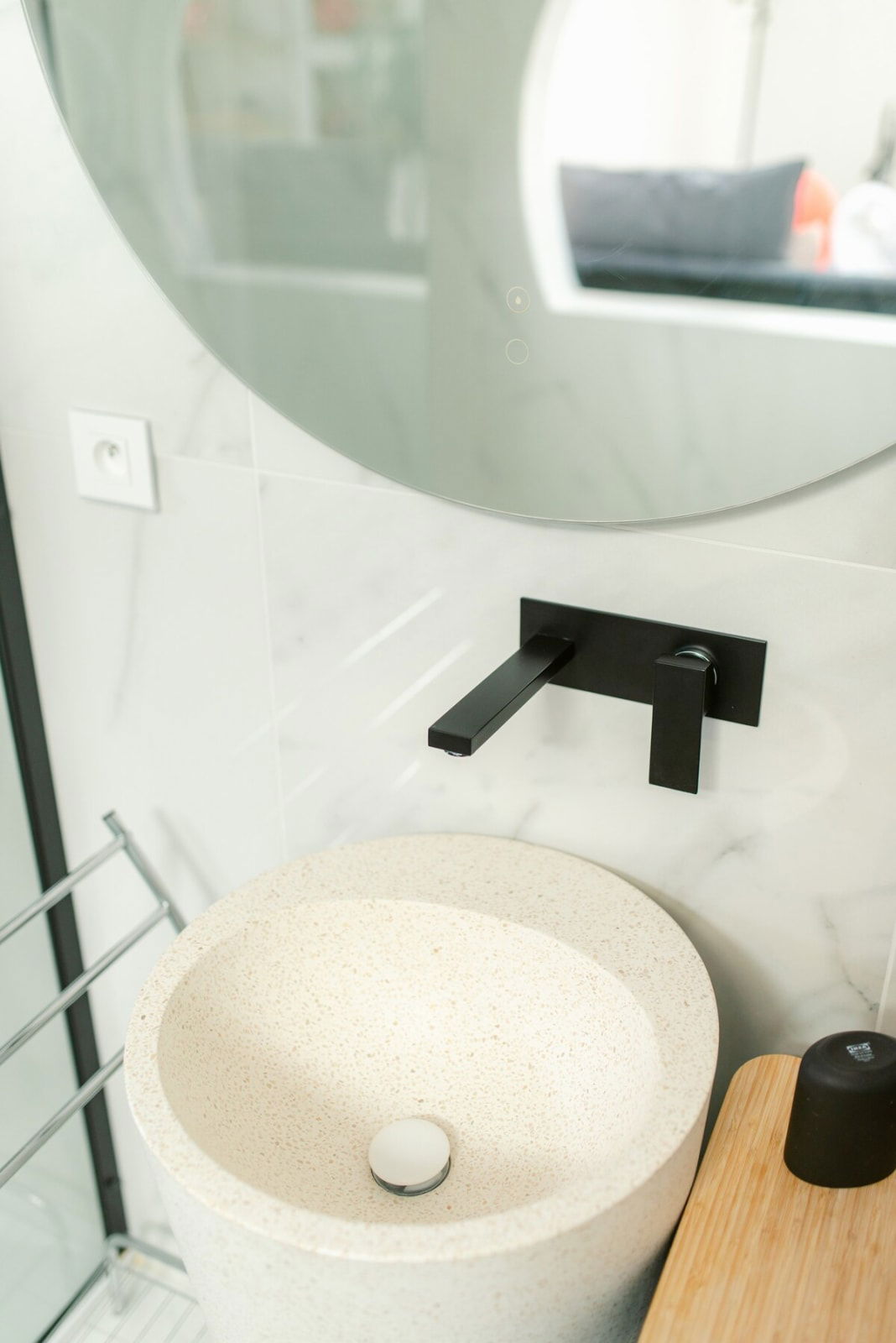 🛀🏻 The ultra-modern bathroom is entirely covered in marble, offering an atmosphere that is both elegant and soothing.