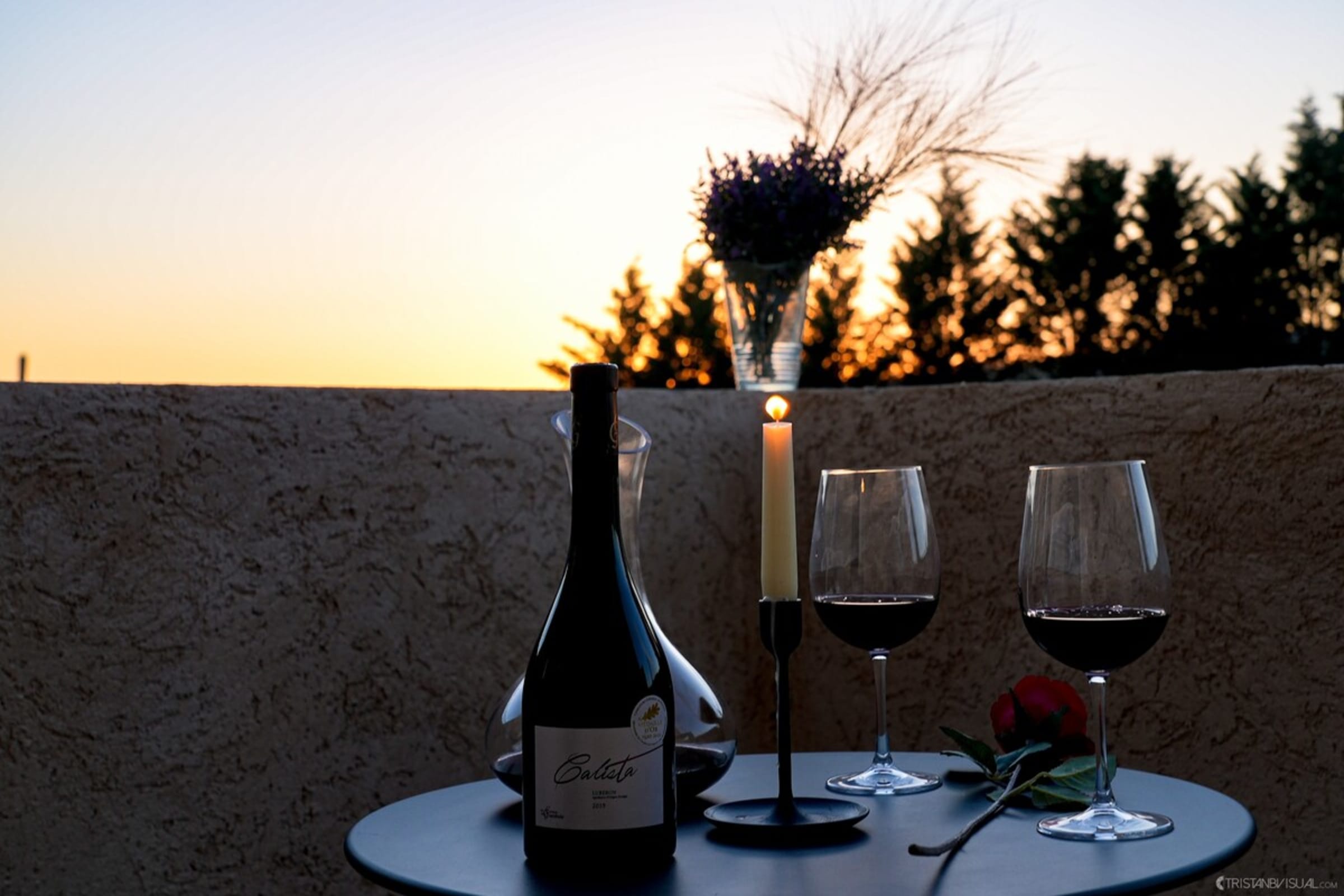 The light atmosphere and the candles placed around create a real romantic cocoon, ideal for a moment for two.