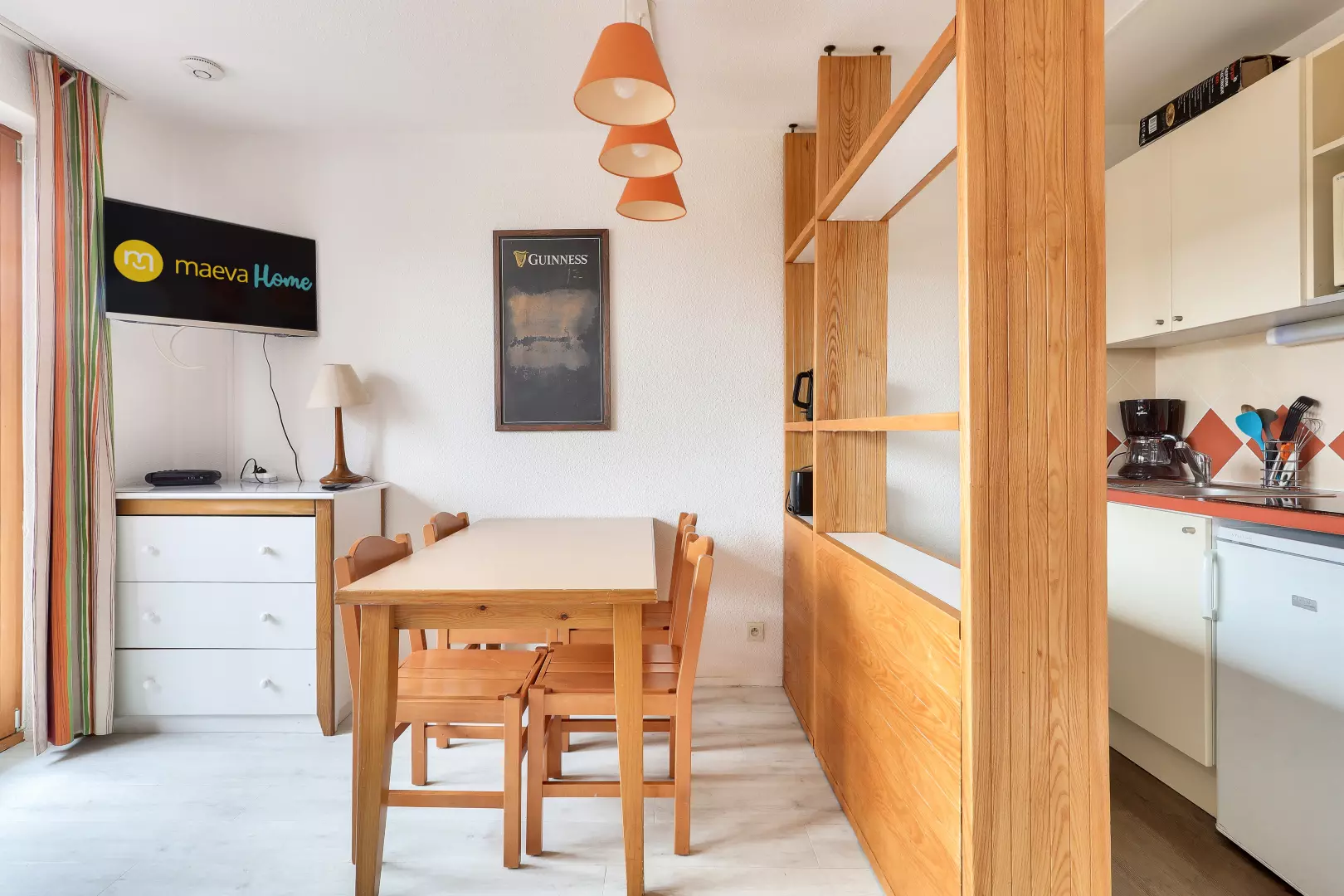 Meal side: 1 table with 4 chairs.