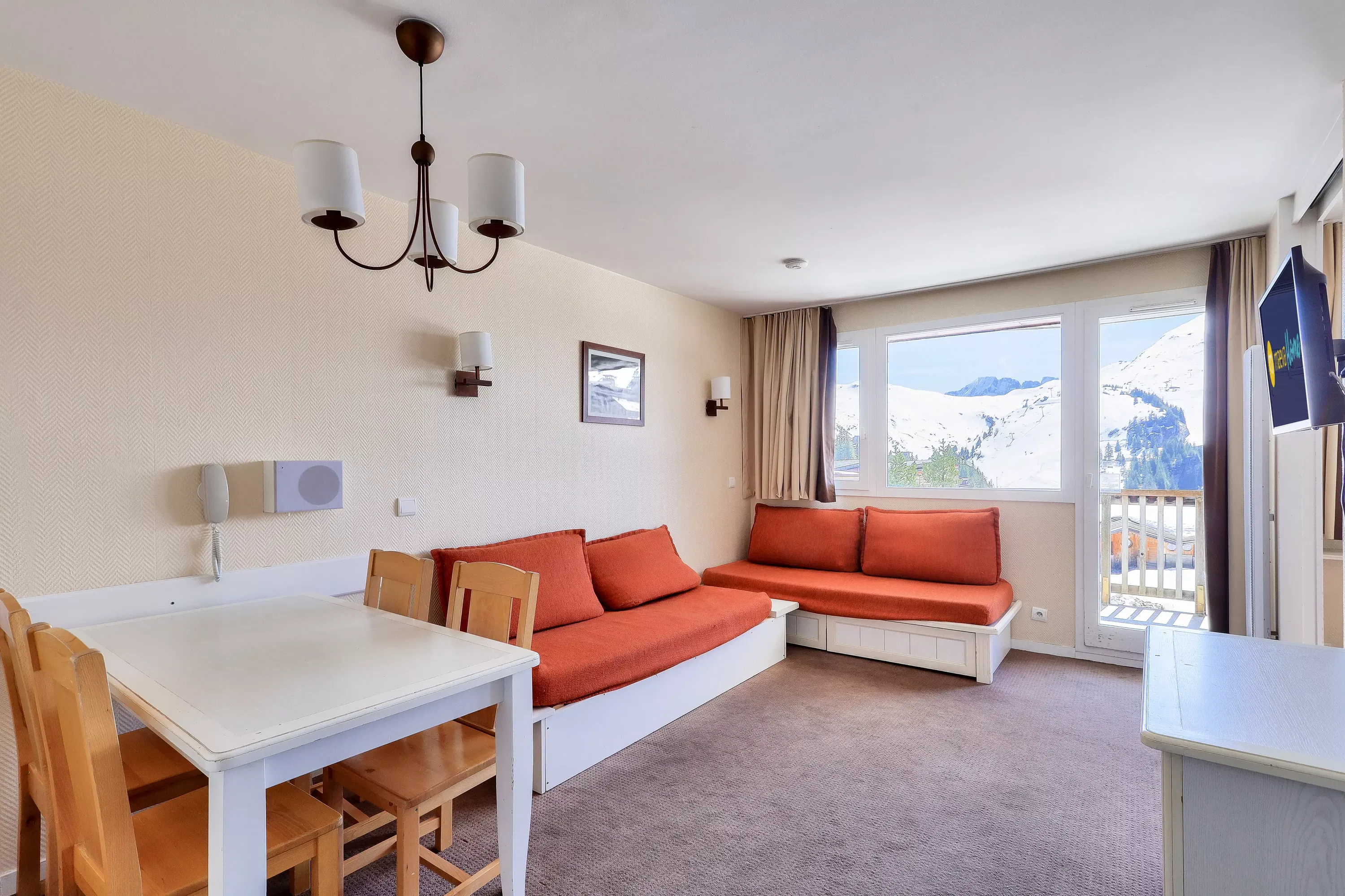 The advantages of your rental: Enjoy an apartment with direct access to the slopes for your ski holiday, located close to shops and with a balcony with mountain view.