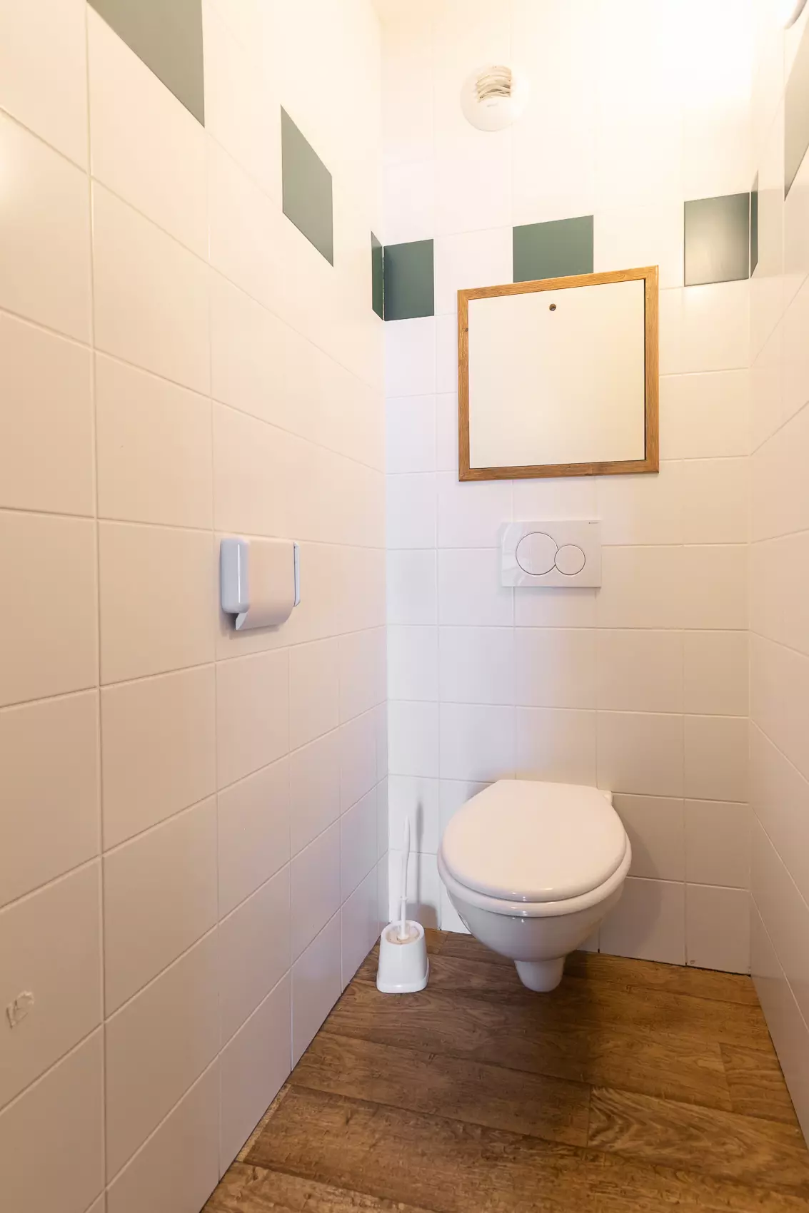 Sanitary facilities: Bathroom with bathtub (bath screen), sink. 2 WCs.