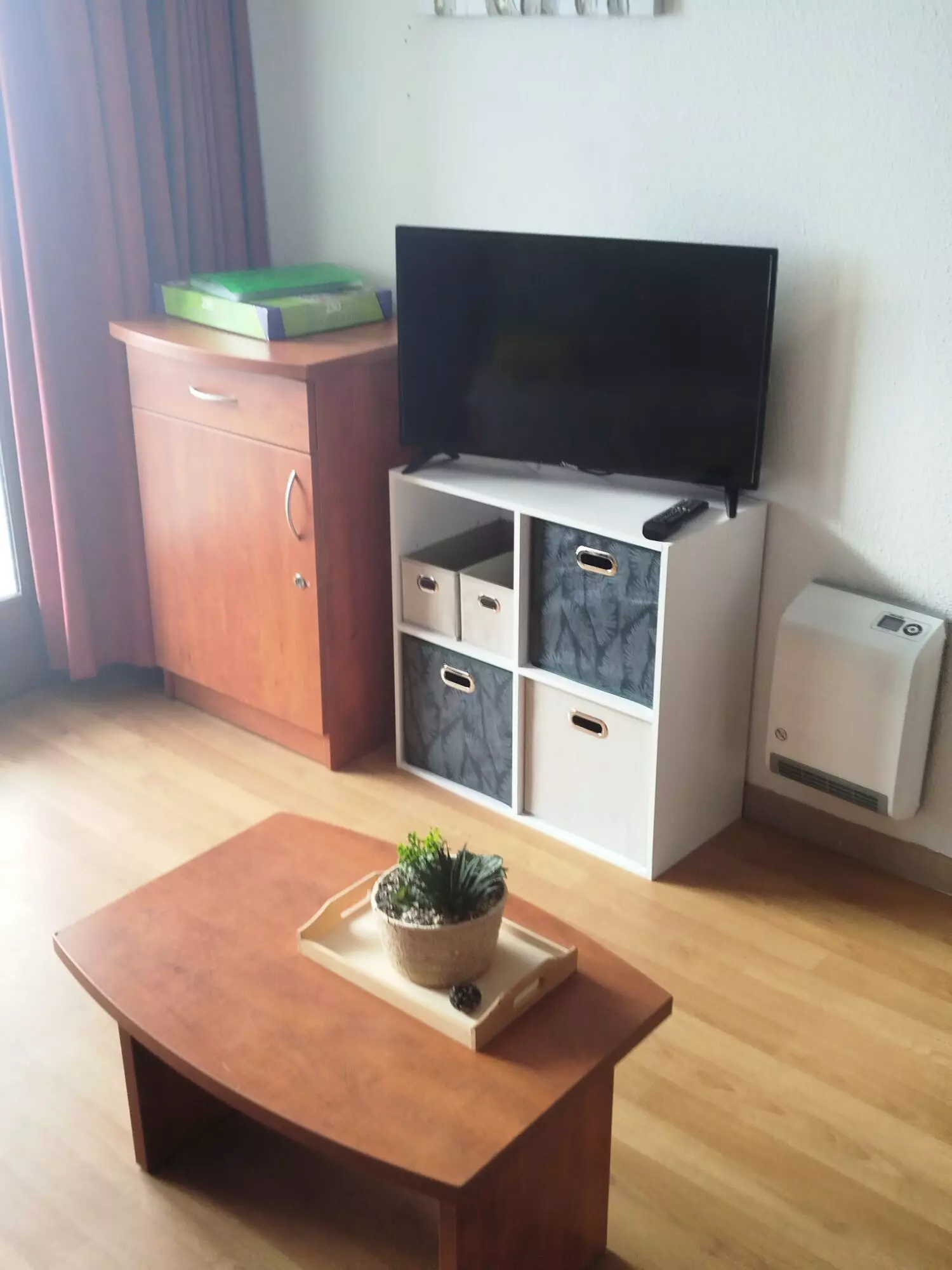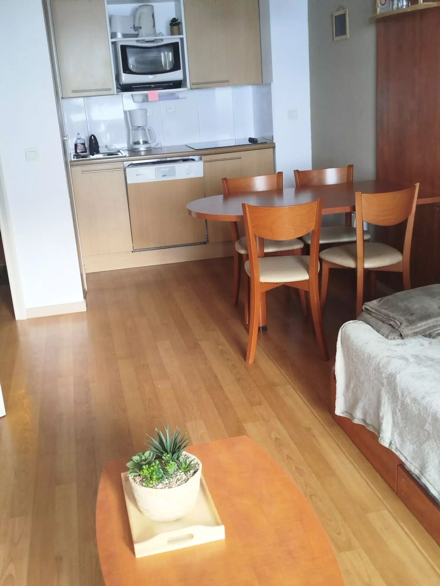 Dining area: 1 table with 4 chairs. 4 seats at the table in the living room